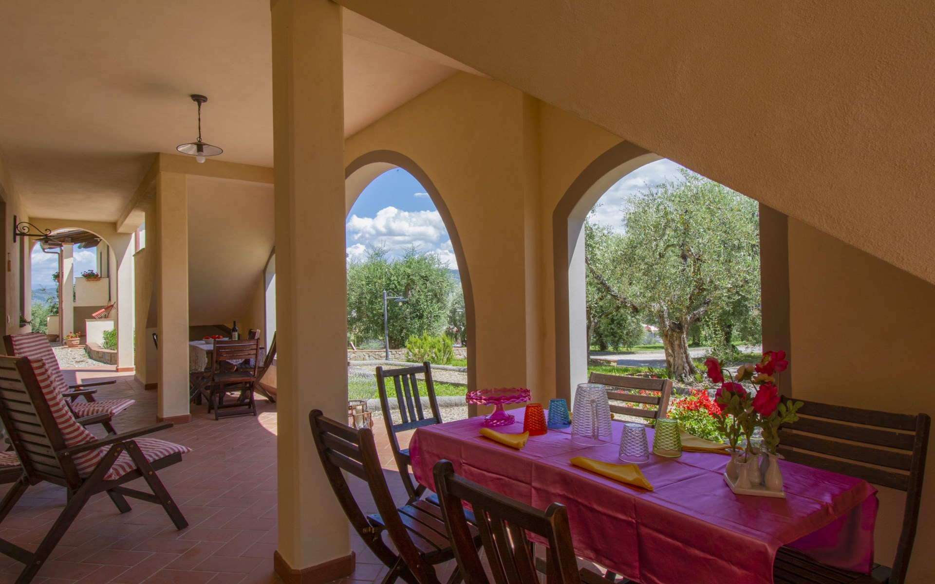 Beautiful country house "Borgo Fontana", from the 18th century, renovated, surrounded by meadows, fields and vineyards. 7 apartments in the residence. 4 km from the centre of Vinci, in a quiet, sunny position on top of a hill, in the countryside. For shared use: property 20 ha, large garden lawn and trees, lawn for sunbathing, natural pond, swimming pool (6 x 12 m, depth 150 cm, seasonal availability: 01.Apr. - 29.Oct.). Outdoor shower, table tennis, patio, terrace, garden furniture, barbecue. In the complex: reception, lounge with TV, internet access, washing machine (for shared use), heating available only from 01.Nov. - 29.Mar., bicycles available (extra). Linen change weekly. Parking on the premises. E-charging station. Shop 2 km, supermarket 4 km, restaurant 2 km, bus stop 400 m, railway station "Empoli" 9 km, sandy beach "Versilia" 60 km. Golf course 5 km. Nearby attractions: San Miniato 10 km, Empoli 10 km, Montecatini Terme 22 km, Firenze, Lucca 40 m. Hiking paths: Montalbano 15 km. Please note: fishing [permit required]. Local sale of farm products. Residence with electric gates.
