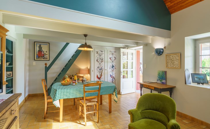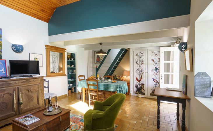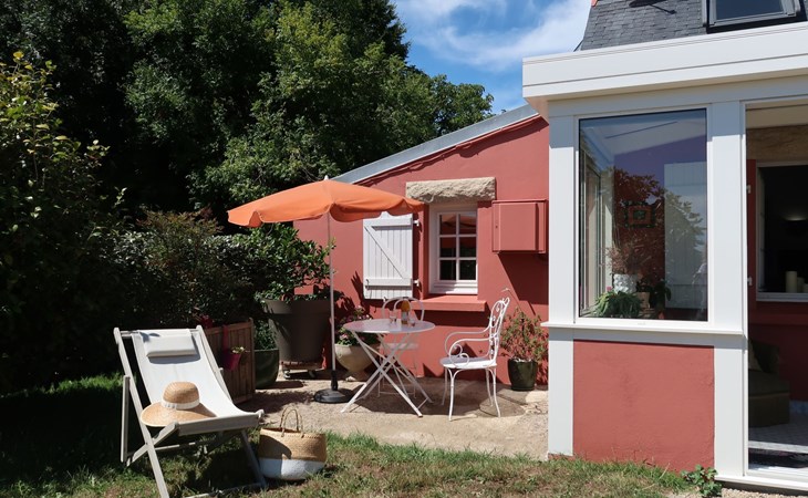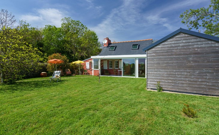 Small single-family house "Entre terre et mer". In the hamlet Kervriec, 4 km from the sea. Private: property 2'000 m2, garden with lawn and wildlife garden. In the house: storage room for bicycles, washing machine (for shared use). Parking (for 2 cars) at the house. Grocery 1.5 km, supermarket 1.3 km, restaurant 1.5 km, bus stop 2 km, sandy beach "Penhors" 4 km. Surf school 4 km. Nearby attractions: Musée la maison Henaff 1.5 km, Site archéologique de Menez Dregan 10 km, Audierne 16 km, Notre-Dame de Tronoën 18 km, Pont l'Abbé 16 km. Hiking paths: Baie d'Audierne 4 km.