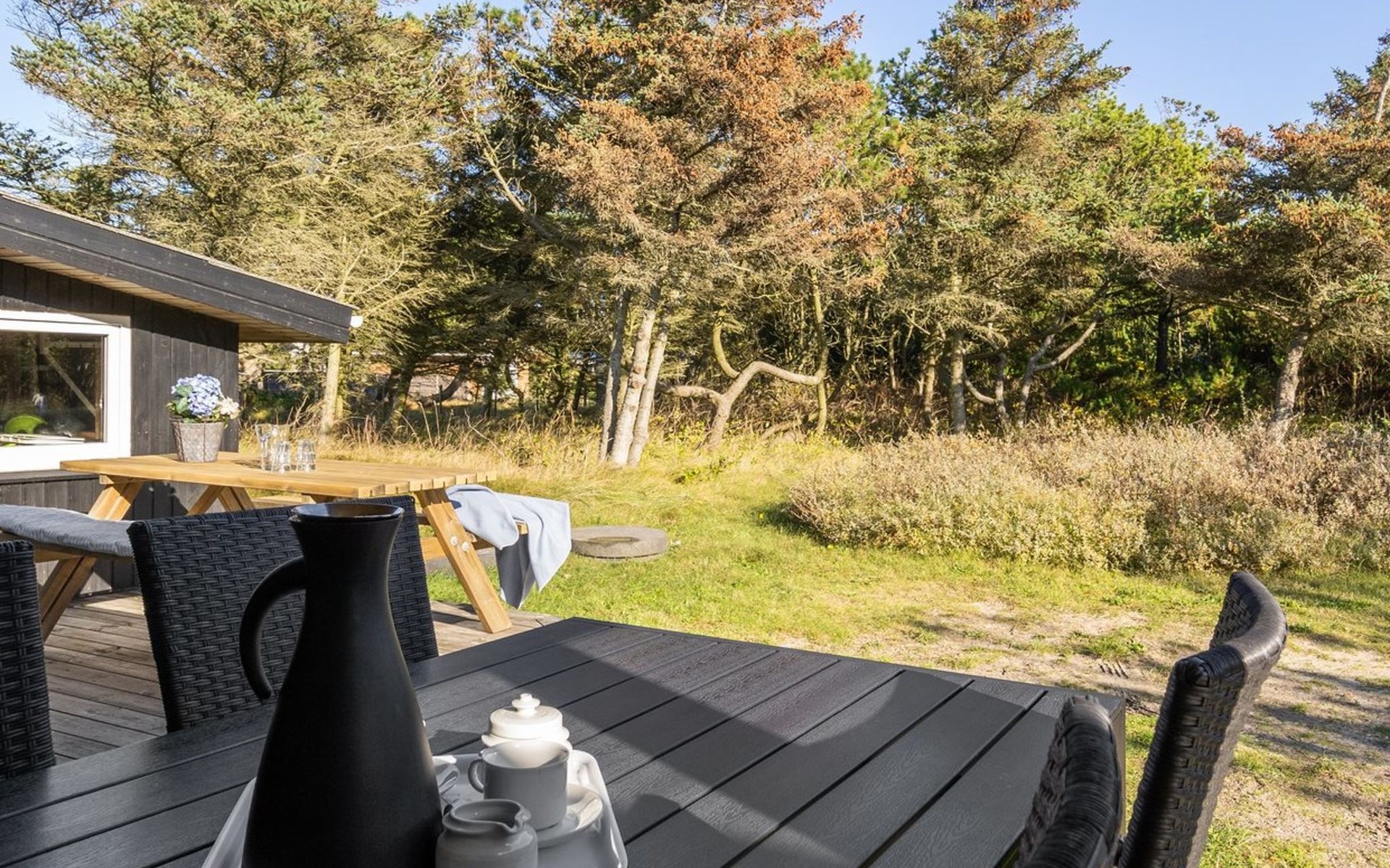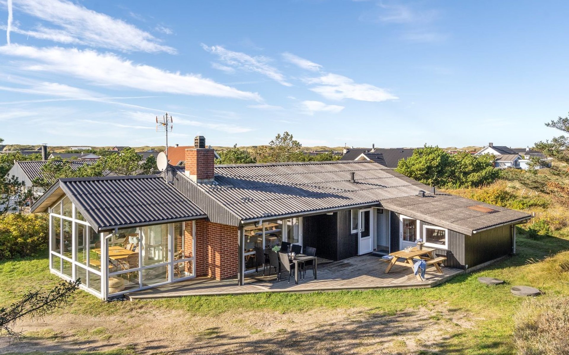 Single-family house, built in 1975. 500 m from the sea. Private: natural state property 1'207 m2. Terrace (10 m2). In the house: sauna, washing machine, tumble dryer. Parking at the house. Grocery 550 m. The owner does not accept any youth groups.