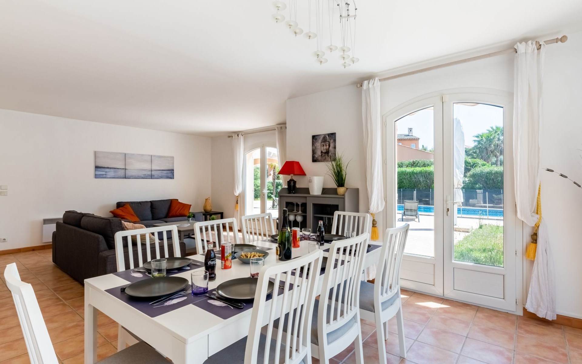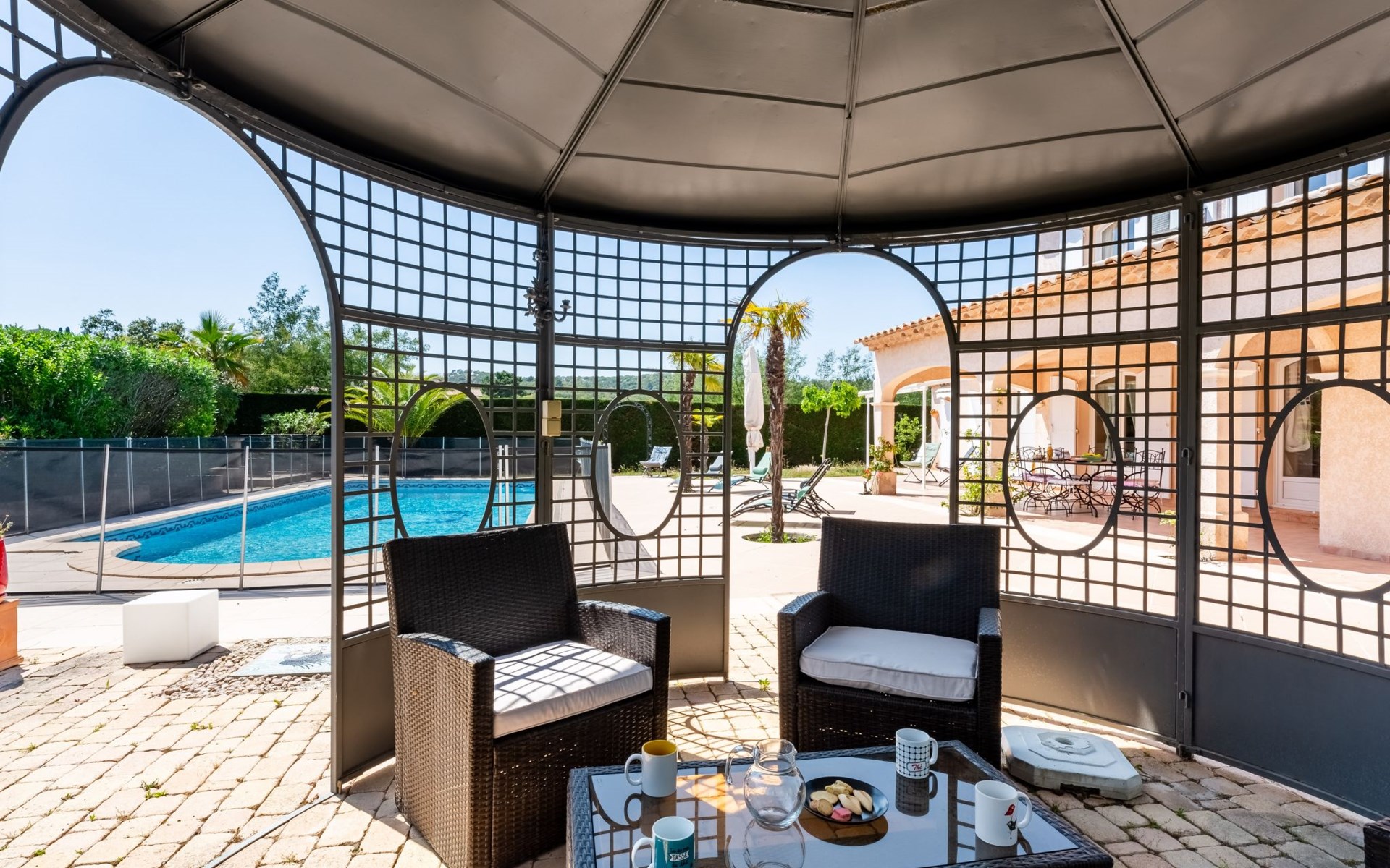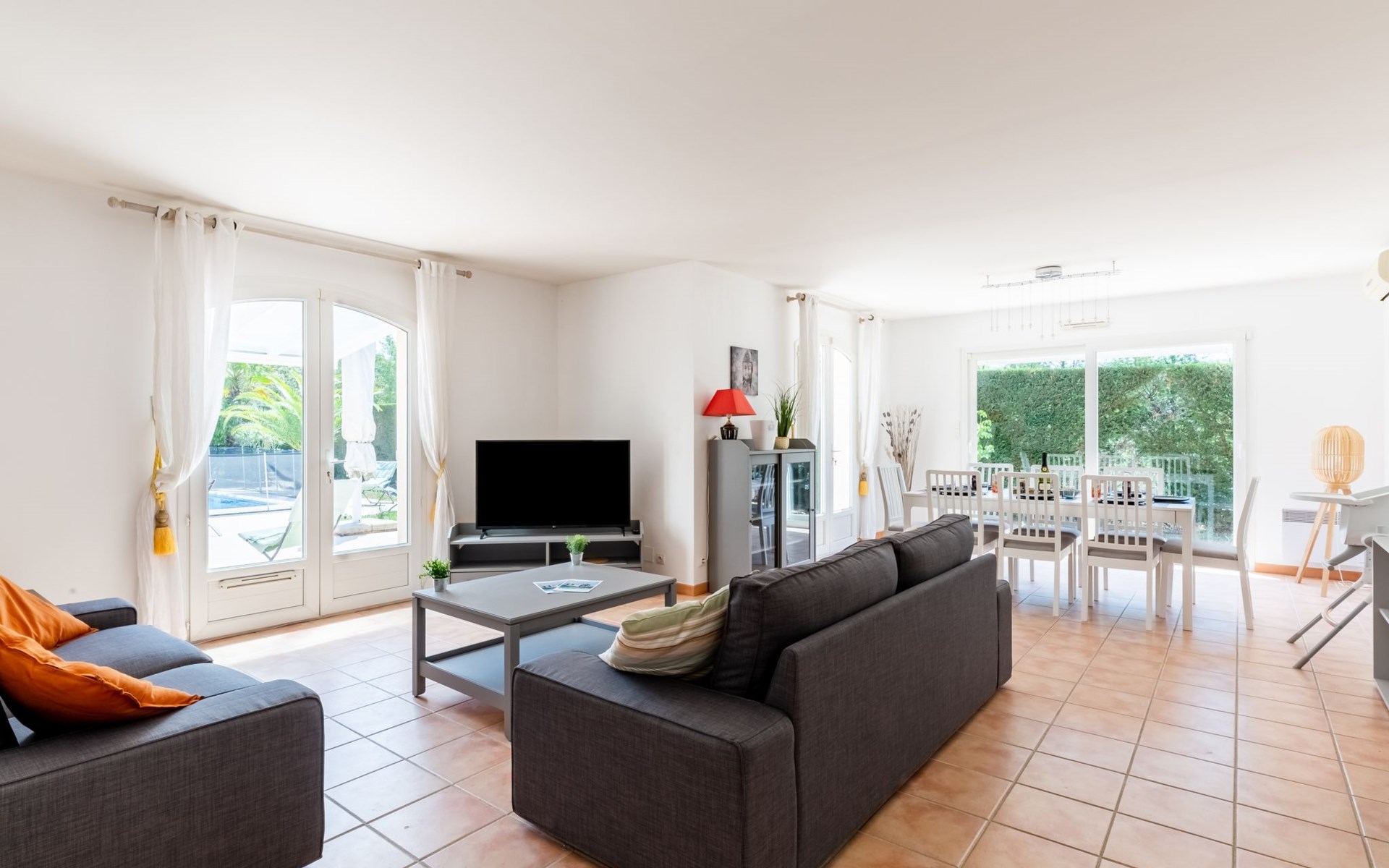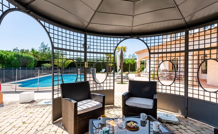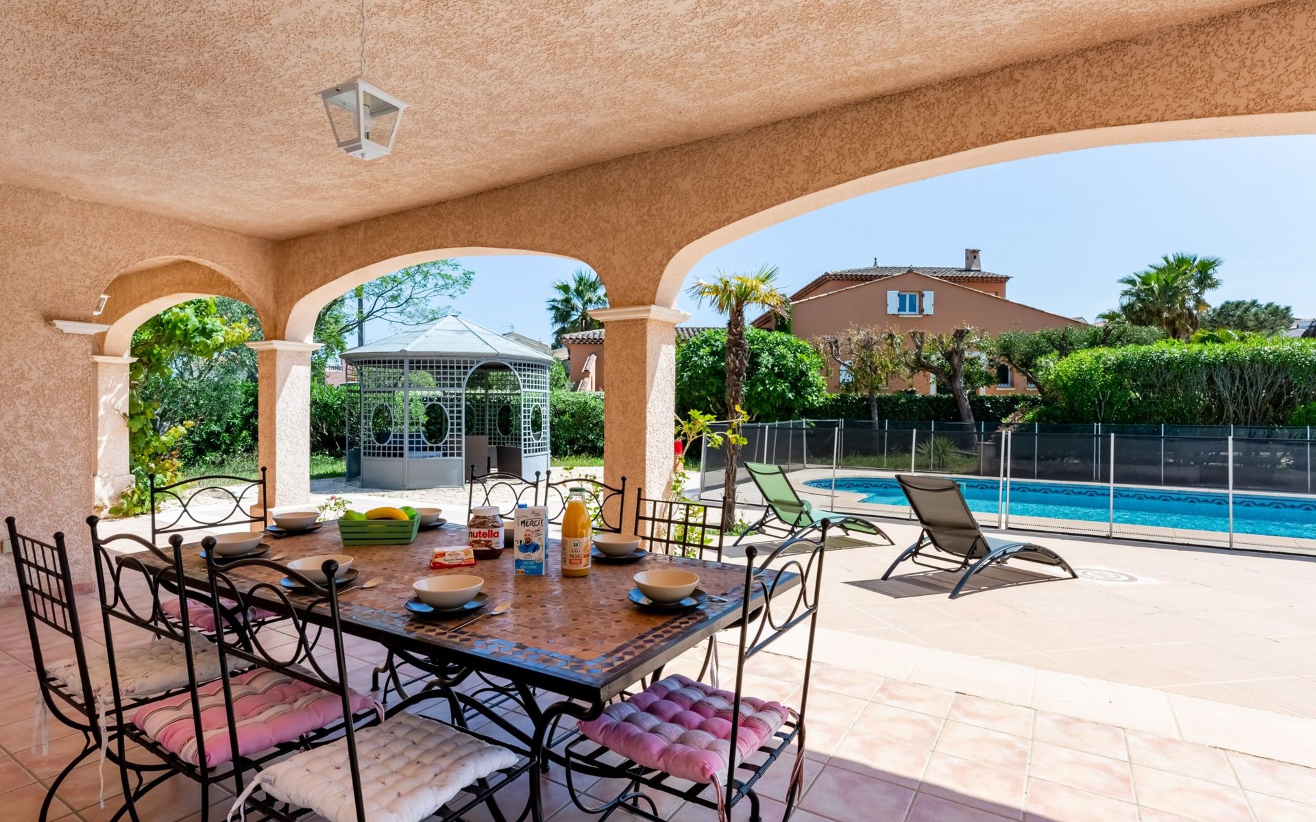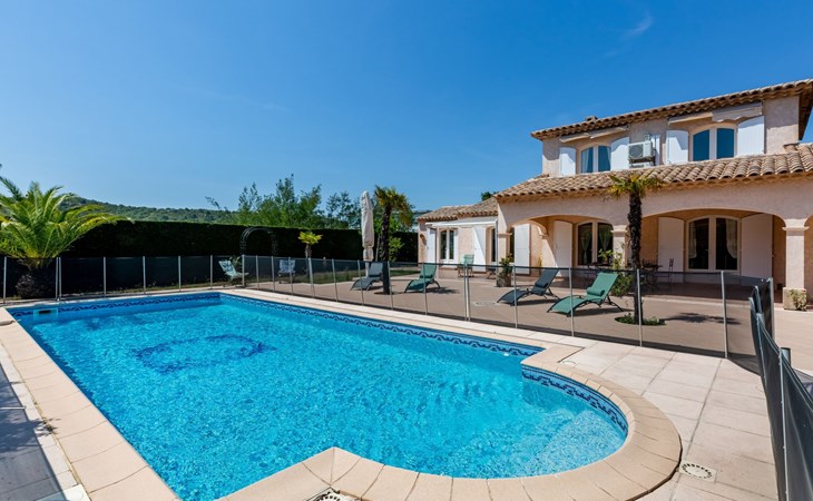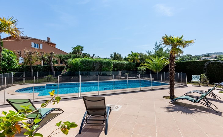 Villa "Massenet", built in 2002. In the resort 1.5 km from the centre of de Saint Aygulf, in the residential district, excellent location: right in the centre but still quiet, traffic calmed area, 2 km from the sea, 2.7 km from the beach. Private: property 1'100 m2 (fenced), swimming pool angular (10 x 5 m, depth 120 - 200 cm, seasonal availability: 01.May. - 31.Oct.) with salt water and internal staircase. Outdoor shower, table tennis, boules. Shop 1.5 km, shopping centre 6.5 km, 20 minute walk to the centre, bus stop "Grand Parc" 1.6 km, railway station "Fréjus" 7.5 km, sandy beach "Saint Aygulf" 2.5 km, park "ARECA" 2 km, diving center 8.5 km, thermal baths "Thalasso de Port Fréjus" 8.5 km. Sports harbour 2 km, golf course (18 hole) 10 km, sailing school 9.5 km, riding stable 3 km, sports centre 2 km. Nearby attractions: Lunapark, Aqualand 6.5 km, Frejus 7.5 km, Saint Raphael 10 km, Saint Tropez 30 km, Cannes 47 km, Nice 73 km. Well-known ski regions can easily be reached: Auron, Isola 2000 150 km. Well-known lakes can easily be reached: Lac de St Cassien 45 km, Lac du Du Verdon 90 km. Hiking paths: Estérel 18 km, Sentier du Littoral 2 km. Please note: baby equipment (included). The owner does not accept any youth groups.