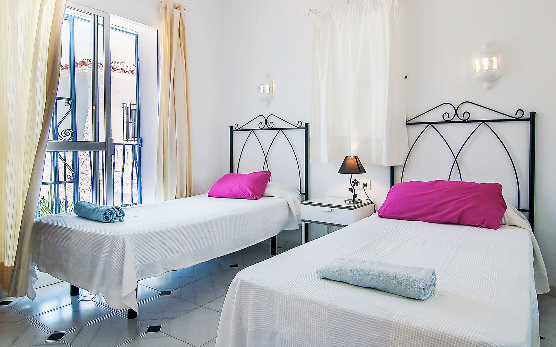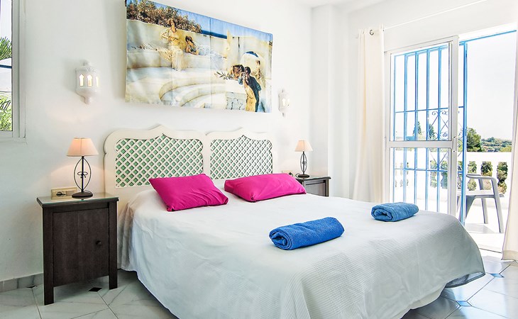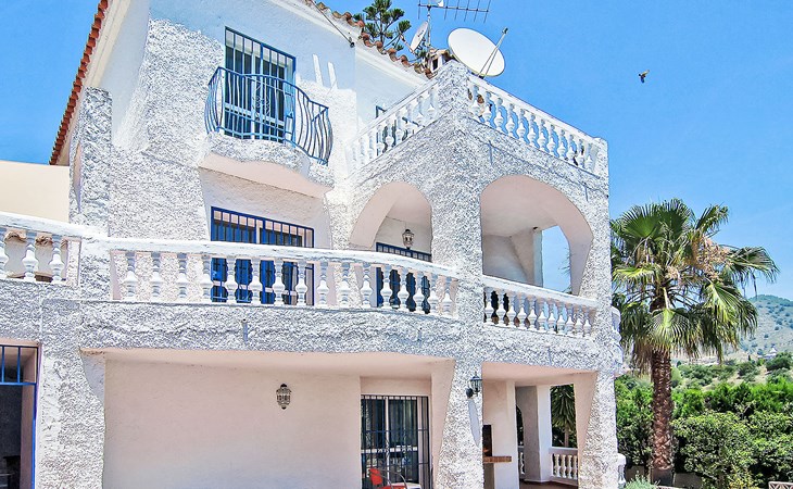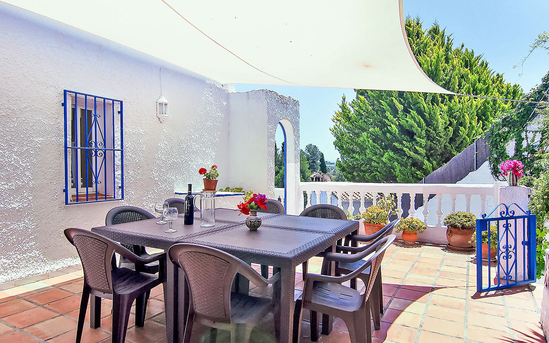 Burriana 1 km from Nerja: Large, cosy villa "Villa Pueblo Jara". In the resort 1.9 km from the centre of Nerja, in a quiet position residential area (villas), 600 m from the sea, from the beach, south facing position. Private: small, beautiful terraced garden, swimming pool kidney shaped (4 x 8 m, depth 100 - 200 cm, seasonal availability: 01.Jan. - 31.Dec.). Patio (150 m2), barbecue. Shop, grocery, supermarket, shopping centre 20 km, restaurant, bar 400 m, bakery, café, internet café, pedestrian zone 700 m, bicycle rental 400 m, pub garden 400 m, bus stop "Bus local" 20 m, railway station "Málaga" 20 km, ferry "Málaga" 20 km, sandy beach "Burriana" 600 m, diving center 300 m, thermal baths 500 m. Sports harbour 20 km, marina 20 km, golf course (18 hole) 20 km, surf school 20 km, sailing school 20 km, tennis 500 m, riding stable 1 km, walking paths from the house 1 km, cycle lane 300 m, slopes 70 km, ski school 70 km. Nearby attractions: Museo de Nerja. 600 m, Centro Cultural variedad de conciertos. 2 km, Cuevas de Nerja. 3 km, Pueblo de Frigiliana. 4 km, Deportes acuaticos en la playa. 600 m, Parques infantiles en la playa. Well-known ski regions can easily be reached: Sierra Nevada en Granada 70 km. Well-known lakes can easily be reached: La Viñuela (pantano) en Velez-Málaga 20 km. Hiking paths: Montañas de Almijara 1 km. Please note: no lift. Suitable for families. The owner does not accept any youth groups. Loading and unloading of baggage is possible at the holiday house.