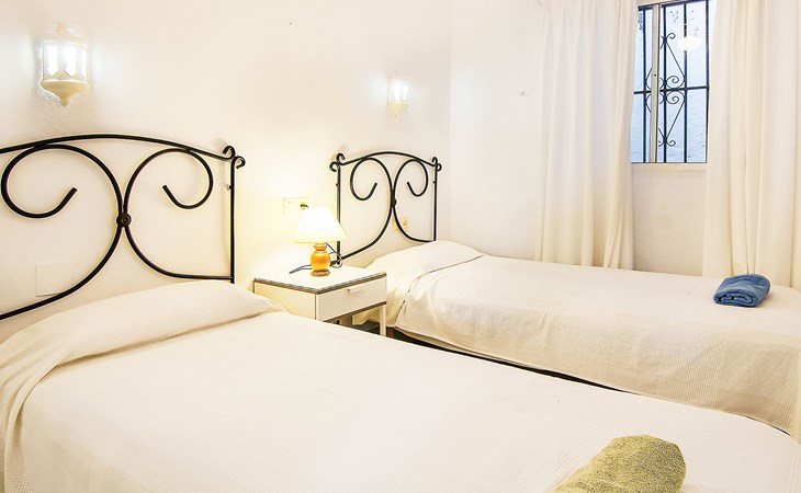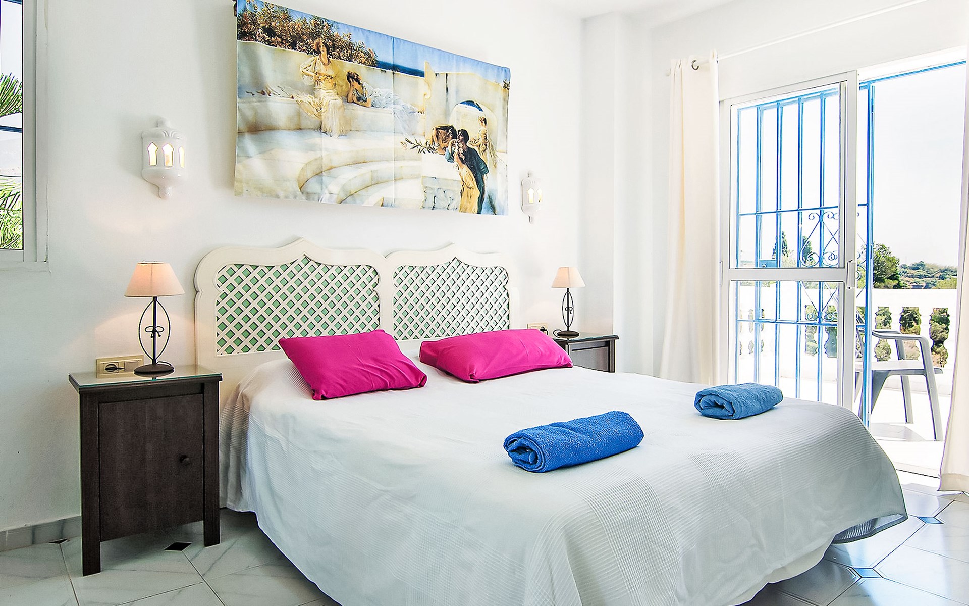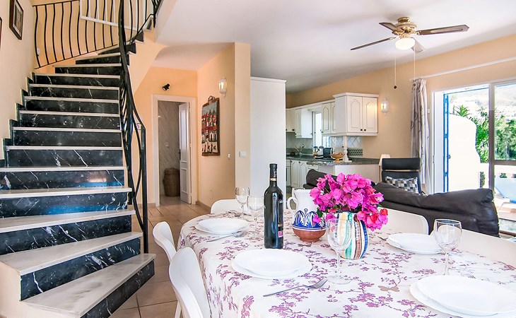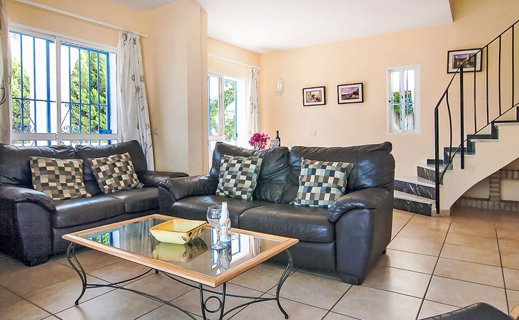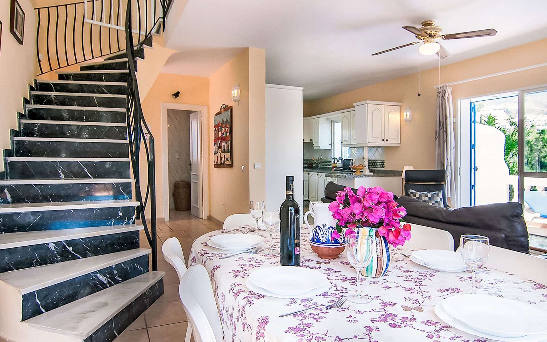 Burriana 1 km from Nerja: Large, cosy villa "Villa Pueblo Jara". In the resort 1.9 km from the centre of Nerja, in a quiet position residential area (villas), 600 m from the sea, from the beach, south facing position. Private: small, beautiful terraced garden, swimming pool kidney shaped (4 x 8 m, depth 100 - 200 cm, seasonal availability: 01.Jan. - 31.Dec.). Patio (150 m2), barbecue. Shop, grocery, supermarket, shopping centre 20 km, restaurant, bar 400 m, bakery, café, internet café, pedestrian zone 700 m, bicycle rental 400 m, pub garden 400 m, bus stop "Bus local" 20 m, railway station "Málaga" 20 km, ferry "Málaga" 20 km, sandy beach "Burriana" 600 m, diving center 300 m, thermal baths 500 m. Sports harbour 20 km, marina 20 km, golf course (18 hole) 20 km, surf school 20 km, sailing school 20 km, tennis 500 m, riding stable 1 km, walking paths from the house 1 km, cycle lane 300 m, slopes 70 km, ski school 70 km. Nearby attractions: Museo de Nerja. 600 m, Centro Cultural variedad de conciertos. 2 km, Cuevas de Nerja. 3 km, Pueblo de Frigiliana. 4 km, Deportes acuaticos en la playa. 600 m, Parques infantiles en la playa. Well-known ski regions can easily be reached: Sierra Nevada en Granada 70 km. Well-known lakes can easily be reached: La Viñuela (pantano) en Velez-Málaga 20 km. Hiking paths: Montañas de Almijara 1 km. Please note: no lift. Suitable for families. The owner does not accept any youth groups. Loading and unloading of baggage is possible at the holiday house.