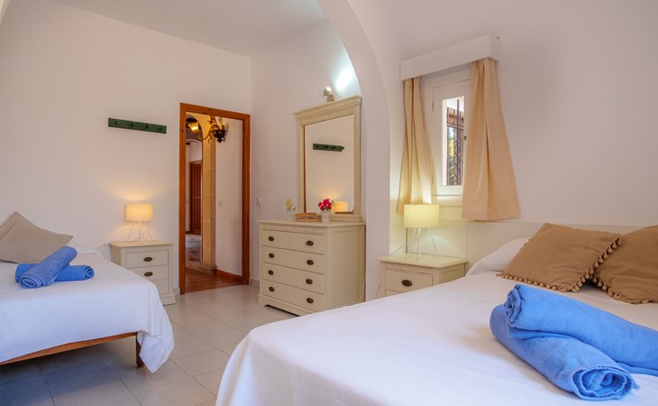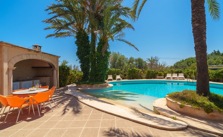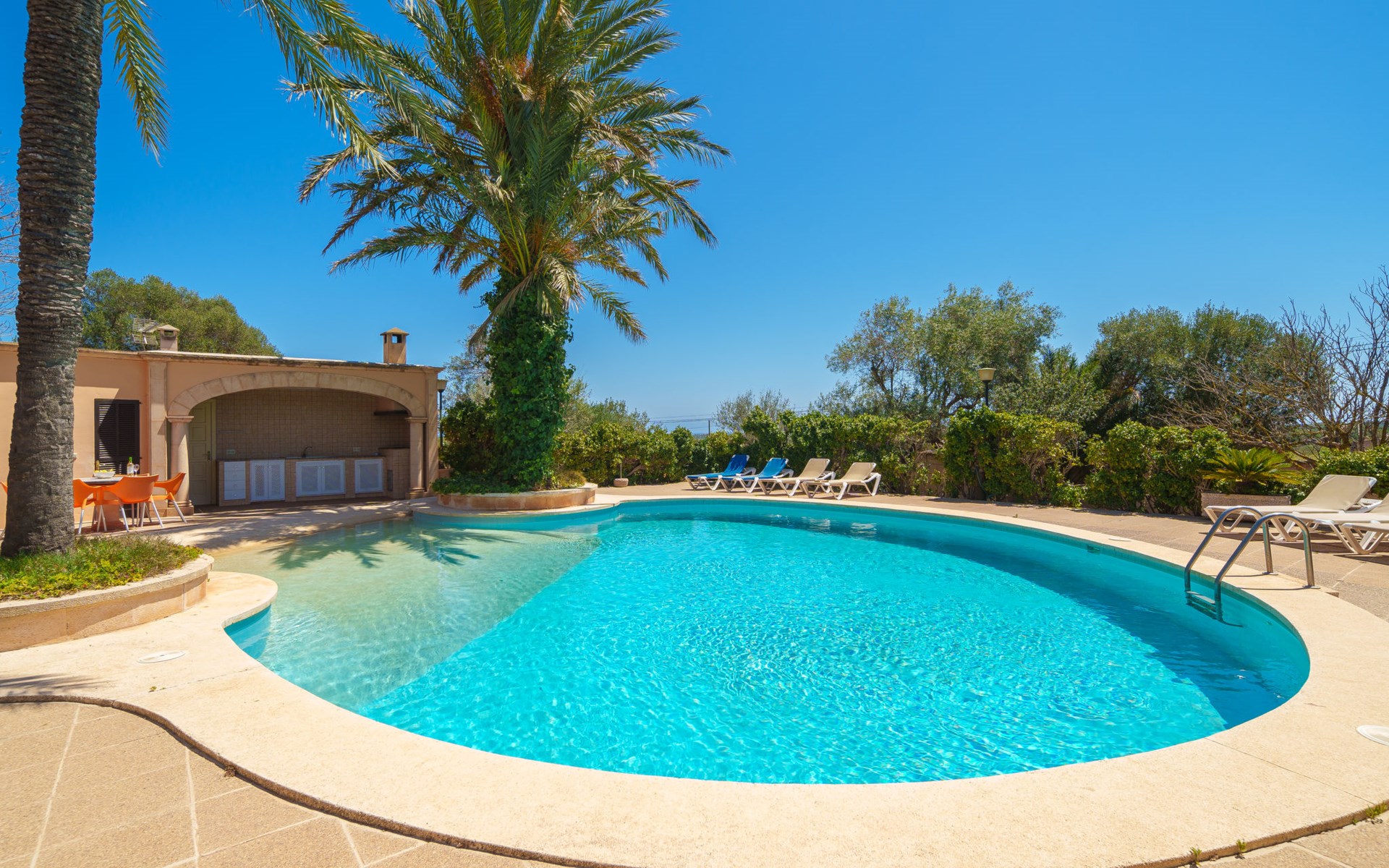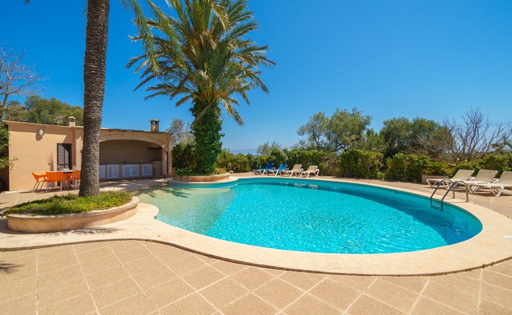 Large, cosy villa "Sa Marina Portocristo". Outside the resort, 2.9 km from the centre of Portocristo, 3.2 km from the sea, 3.2 km from the beach. Private: beautiful garden with wildlife garden, swimming pool (8 x 8 m, depth 15 - 200 cm, seasonal availability: 01.Jan. - 31.Dec.). Unconventional pool shape. Shower/WC in the pool area, patio, arbour, pergola, garden furniture, barbecue, pool maintenance by the owner/gardener. In the house: storage room for bicycles, air conditioning. Shop 3 km, supermarket 2.2 km, restaurant 2.9 km, bar 3 km, bakery 2.6 km, bicycle rental 3 km, 35 minute walk to the centre, bus stop "Dinosaurland-Coves Hams (33046)" 1.3 km, railway station "Manacor" 11 km, sandy beach "Portocristo" 3.2 km. Sports harbour 3.2 km, golf course (18 hole) 15 km, cycle lane 200 m. Nearby attractions: Cuevas del Drach 3.5 km, Manacor City 10 km, Cuevas dels Hams 1.4 km, Palma City 60 km, Rafa Nadal Museum Experience 9.7 km, https://visitmanacor.com/en/nucleos/port. Hiking paths: Serra de Tramuntana, chrome-extension://oemmndcbldboiebfnladd. Please note: car recommended. Suitable for seniors. Object suitable for 8 adults. The owner does not accept any youth groups. Main road close by 50 m from the property. Airfield 56 km from the property. The tap water has no drinking water quality.