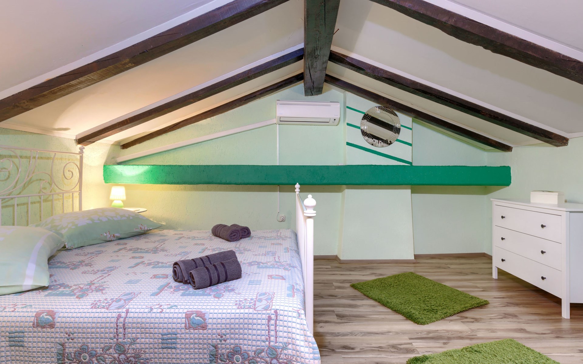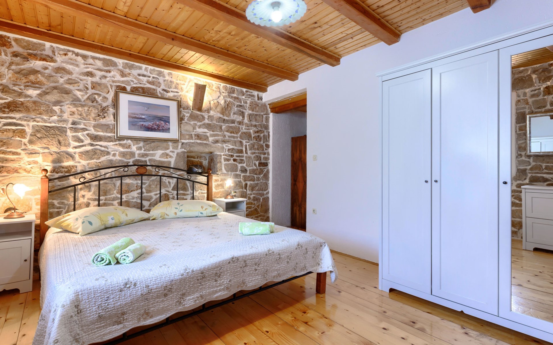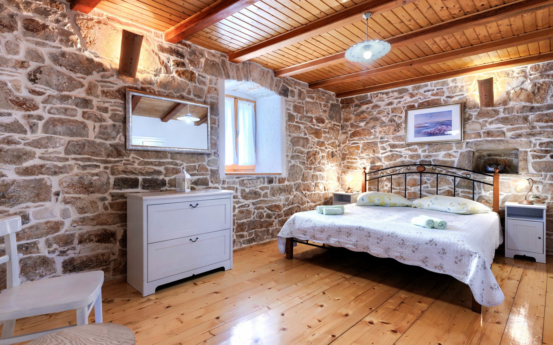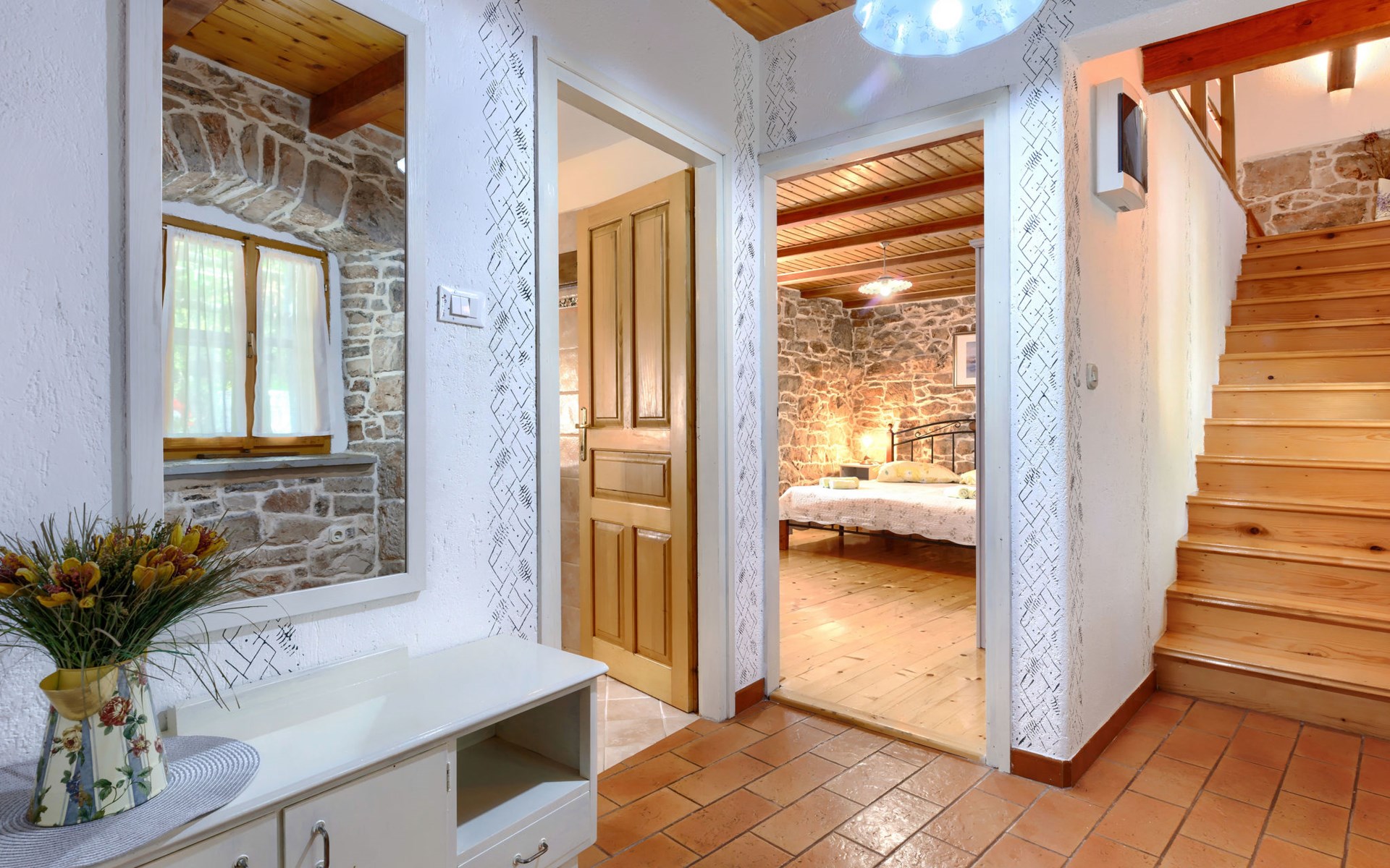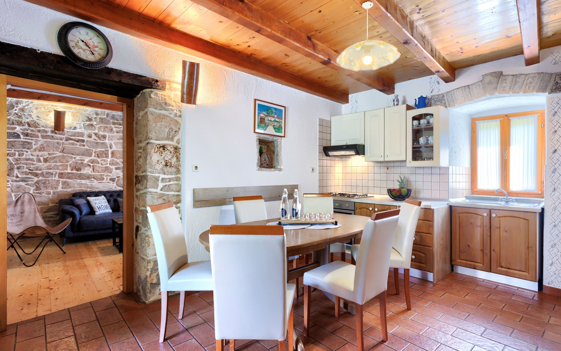Single-family house "Donada", 2 storeys. In the hamlet Ružići 8 km from the centre of Labin, 12 km from the centre of Rabac, 12 km from the sea, in the countryside. Private: property 2'000 m2 (fenced) with lawn and trees, swimming pool angular (8 x 4 m, depth 140 cm, seasonal availability: 01.May. - 02.Oct.). Outdoor shower, table tennis, volleyball court patio, terrace, barbecue (slide, swing), pool maintenance by the owner/gardener. In the house: internet access, trampoline, washing machine. Motor access to the house (100 m via unmade road). Parking (for 3 cars) at the house on the premises. Shop 2 km, restaurant 2 km, bus stop 7.9 km, pebble beach 12 km, rocky beach 12 km. Marina 12 km.