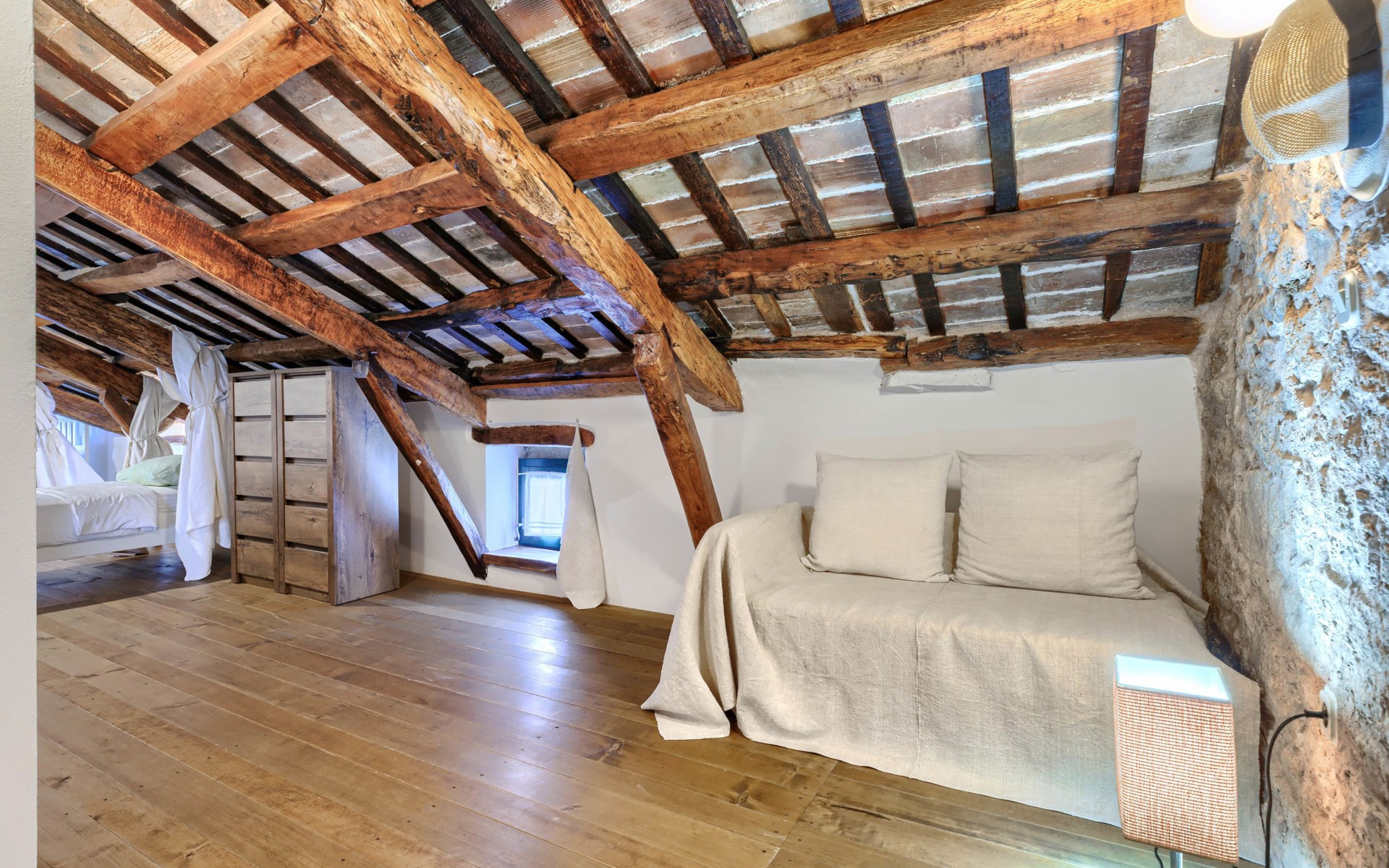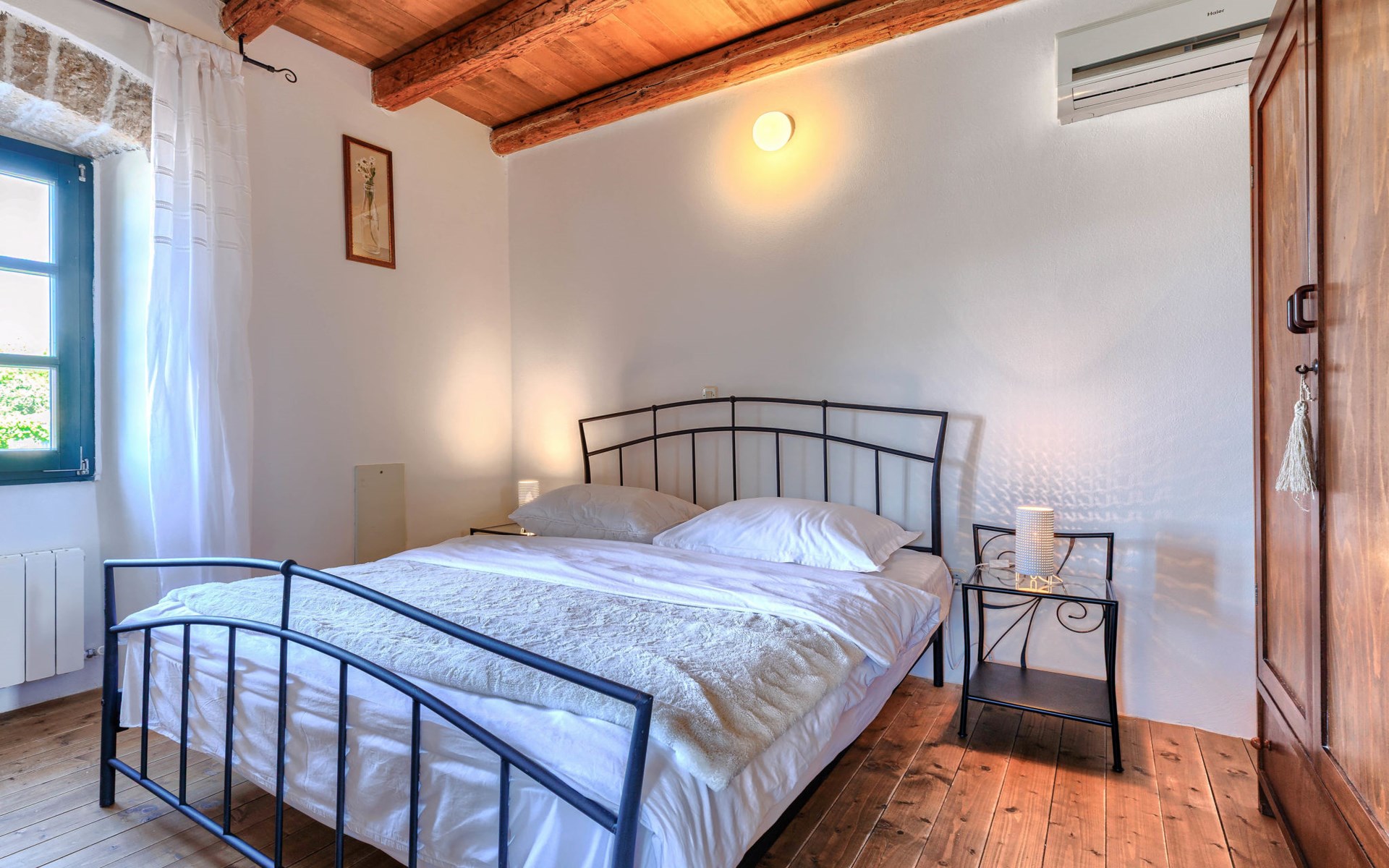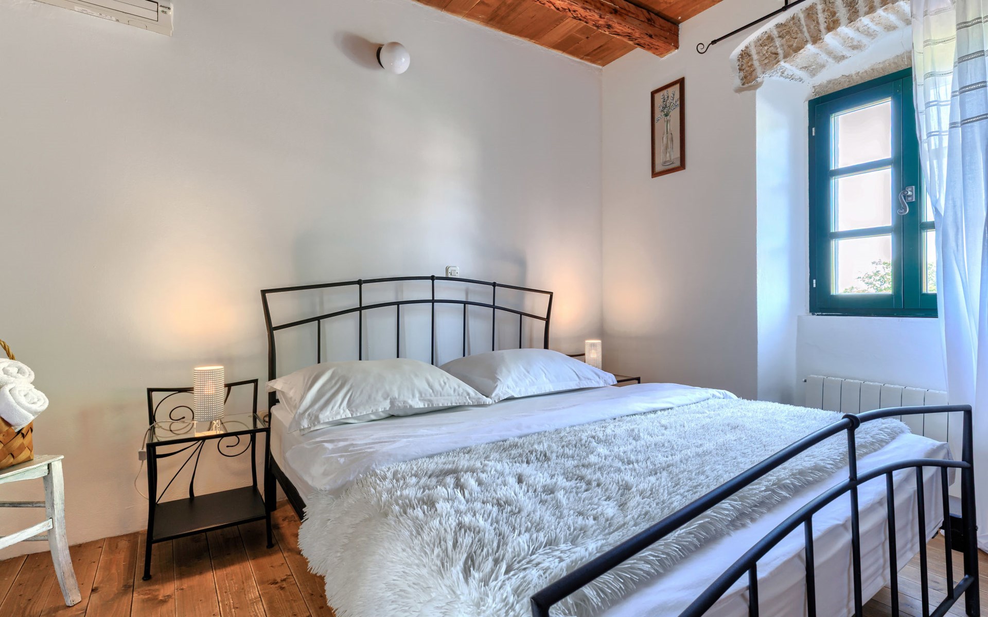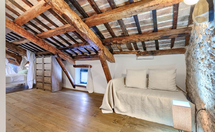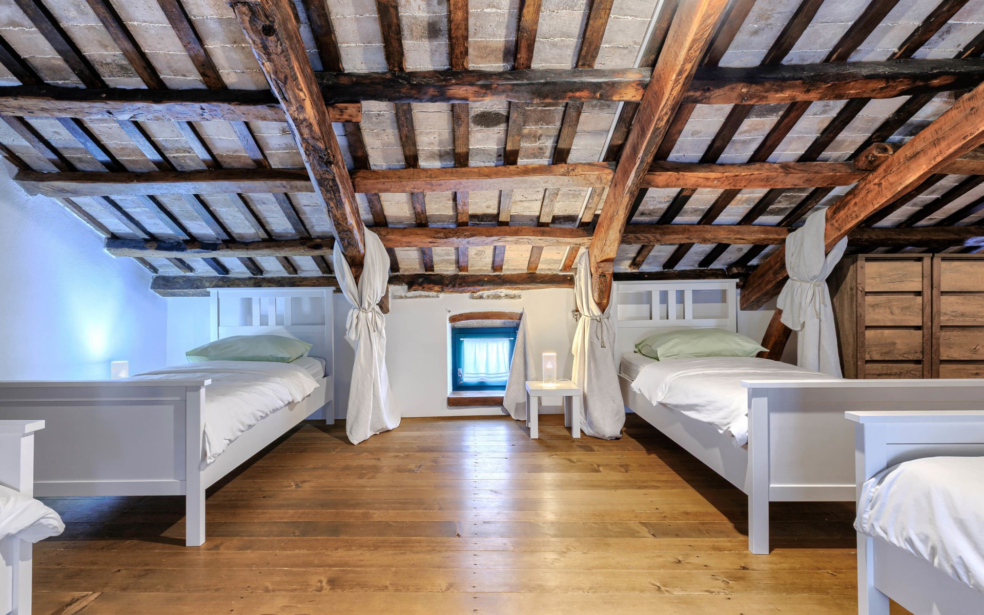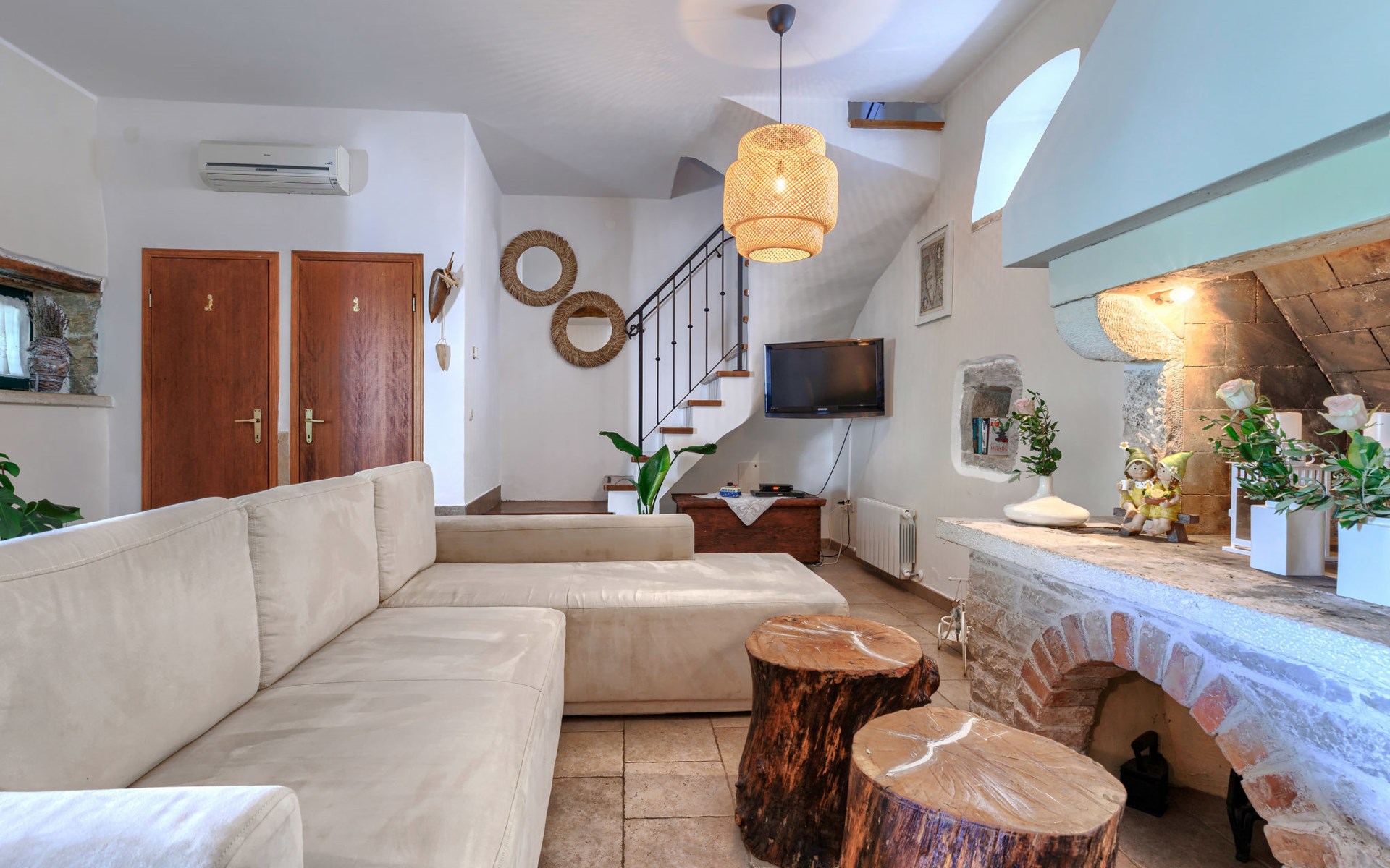 Single-family house "Marija", 3 storeys. In the hamlet Domijanići 5 km from the centre of Žminj, 25 km from the centre of Rovinj, 25 km from the sea. Private: property 5'000 m2, trees, meadow, swimming pool angular (8 x 4 m, depth 140 cm, seasonal availability: 30.Apr. - 01.Oct.) with internal staircase. Outdoor shower, table tennis, garden furniture, barbecue (swing). In the house: internet access, washing machine. Parking (for 5 cars) on the premises. Shop 5 km, restaurant 5 km, bus stop 3.1 km, rocky beach 25 km.