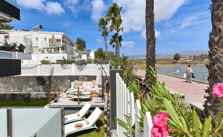 Very beautiful, comfortable 2-family house "Charca III". In the resort Maspalomas, in a sunny position, direct access to the beach. Private: lawn for sunbathing, beautiful garden to relax. In the house: internet access, WiFi, air conditioning, washing machine, tumble dryer. Bus stop "Estación Faro de Maspalomas" 350 m. Please note: baby equipment on request. Object suitable for 2 adults. The owner does not accept any youth groups. Neighbourhood highly sensitive to noise. Quietness and good behaviour expected. Late arrivals will have an extra cost to be paid in cash: 20:30-22:00: 30€, 22:00-00:00: 50€, 00:00-01:30: 80€.