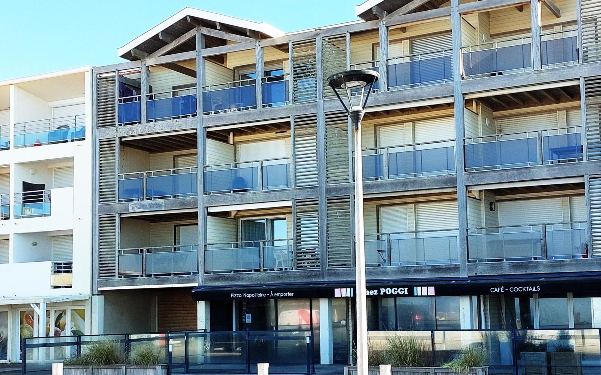 Residence "Horizon". In the resort 100 m from the centre of Mimizan Plage, in a central, busy position, in the heart of the city, 600 m from the edge of the forest, 50 m from the sea, 10 km from the lake, 50 m from the beach. Shop 100 m, grocery 50 m, supermarket 500 m, restaurant 10 m, bakery 100 m, sandy beach "la garluche". Golf course (9 hole) 8 km, surf school 50 m. Nearby attractions: Arcachon 70 km, Biscarrosse 35 km, eco musée marquèze 40 km, Disc golf 900 m. Hiking paths: skate parc 900 m.