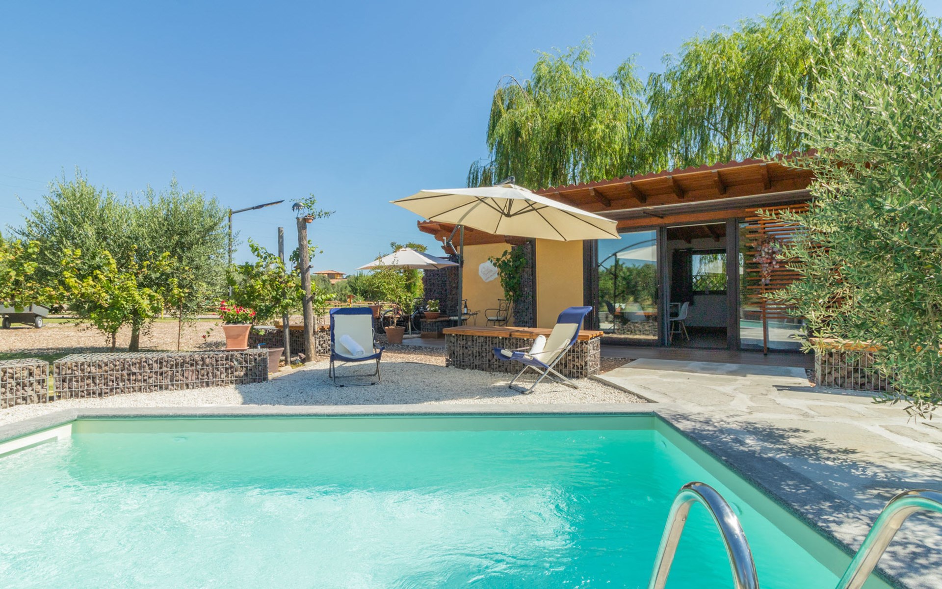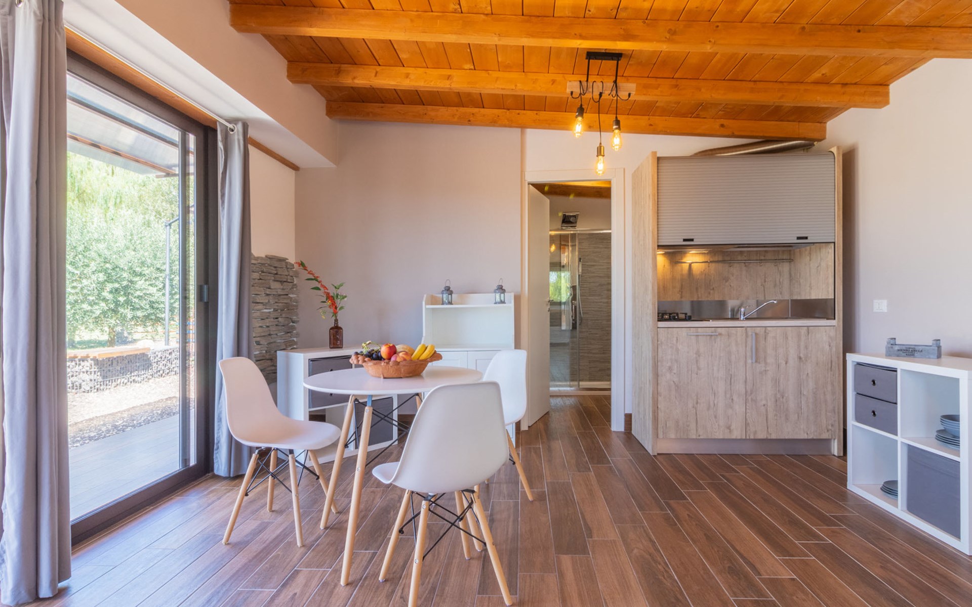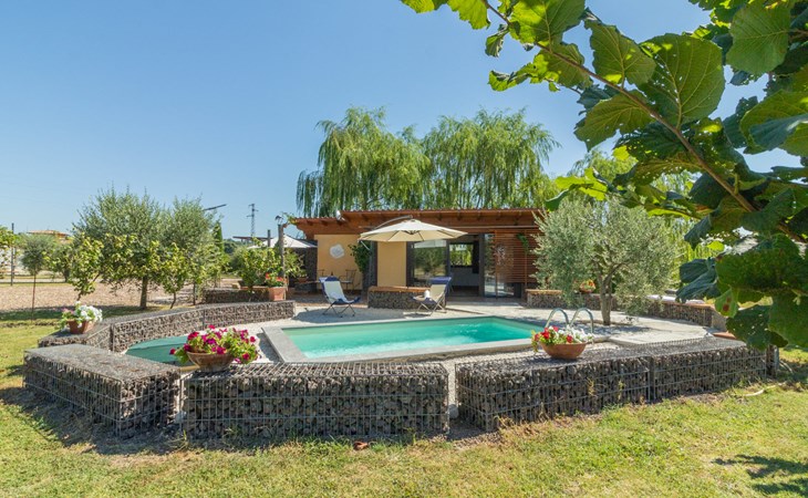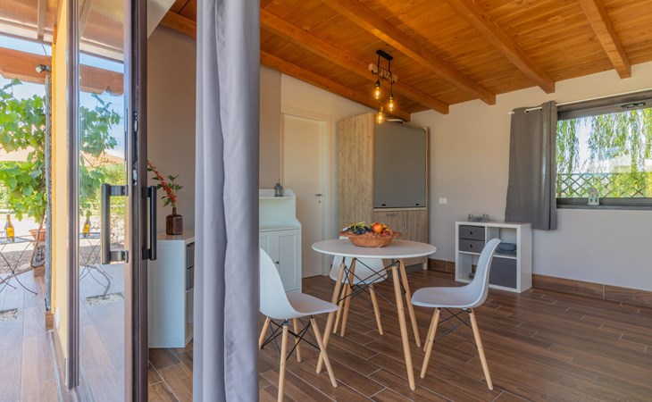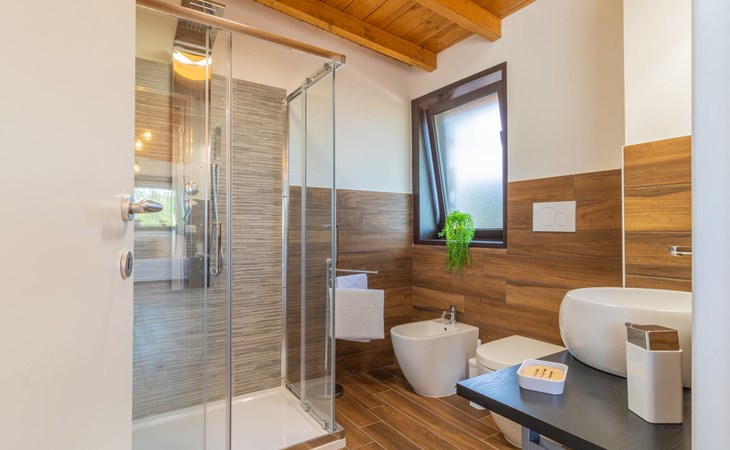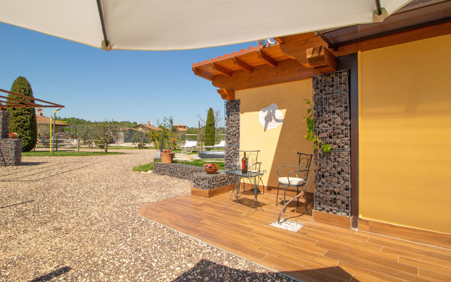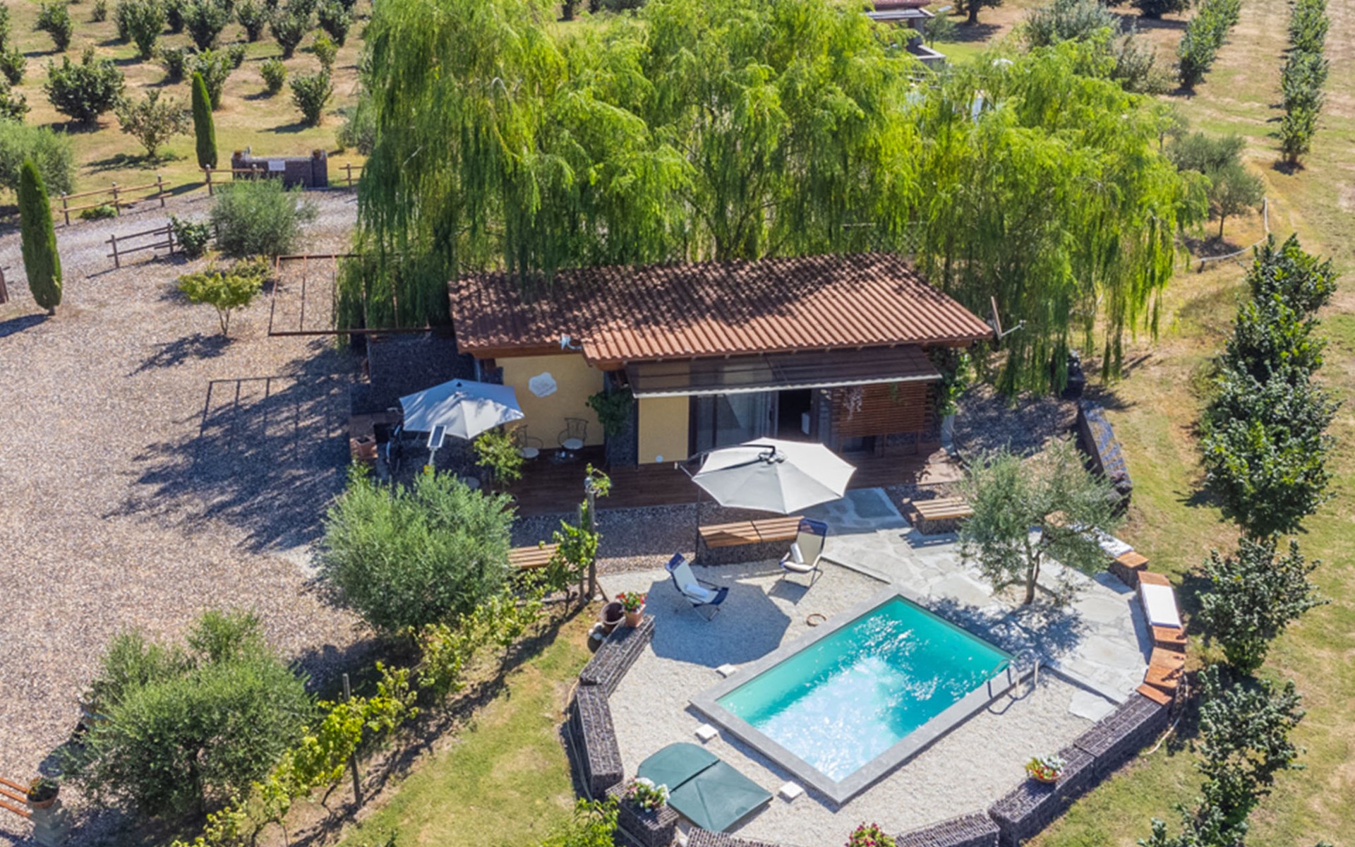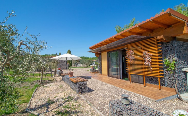 Modern, comfortable chalet "Il Vitigno", detached. 1500 km from the centre of Sutri, 50 km from the centre of Roma, 45 km from the sea, 12 km from the lake. For shared use: park 3 ha (fenced). Private: garden 500 m2, swimming pool (5 x 3 m, depth 120 cm, seasonal availability: 01.Jun. - 30.Sep.) with salt-electrolysis pool-cleaning system. Garden furniture, barbecue. In the house: reception. Roofed, parking on the premises. E-charging station. Supermarket 2 km, bar 2 km, bus stop 1.2 km, sandy beach "Santa Severa" 45 km, bathing lake "Lago Di Vico" 12 km. Golf course (18 hole) 7 km. Nearby attractions: Viterbo 30 km, Lado Di Bracciano 13 km. Local sale of farm products. Please note: residence with electric gates. Property ref. it5607.649/652 is situated on the same property.