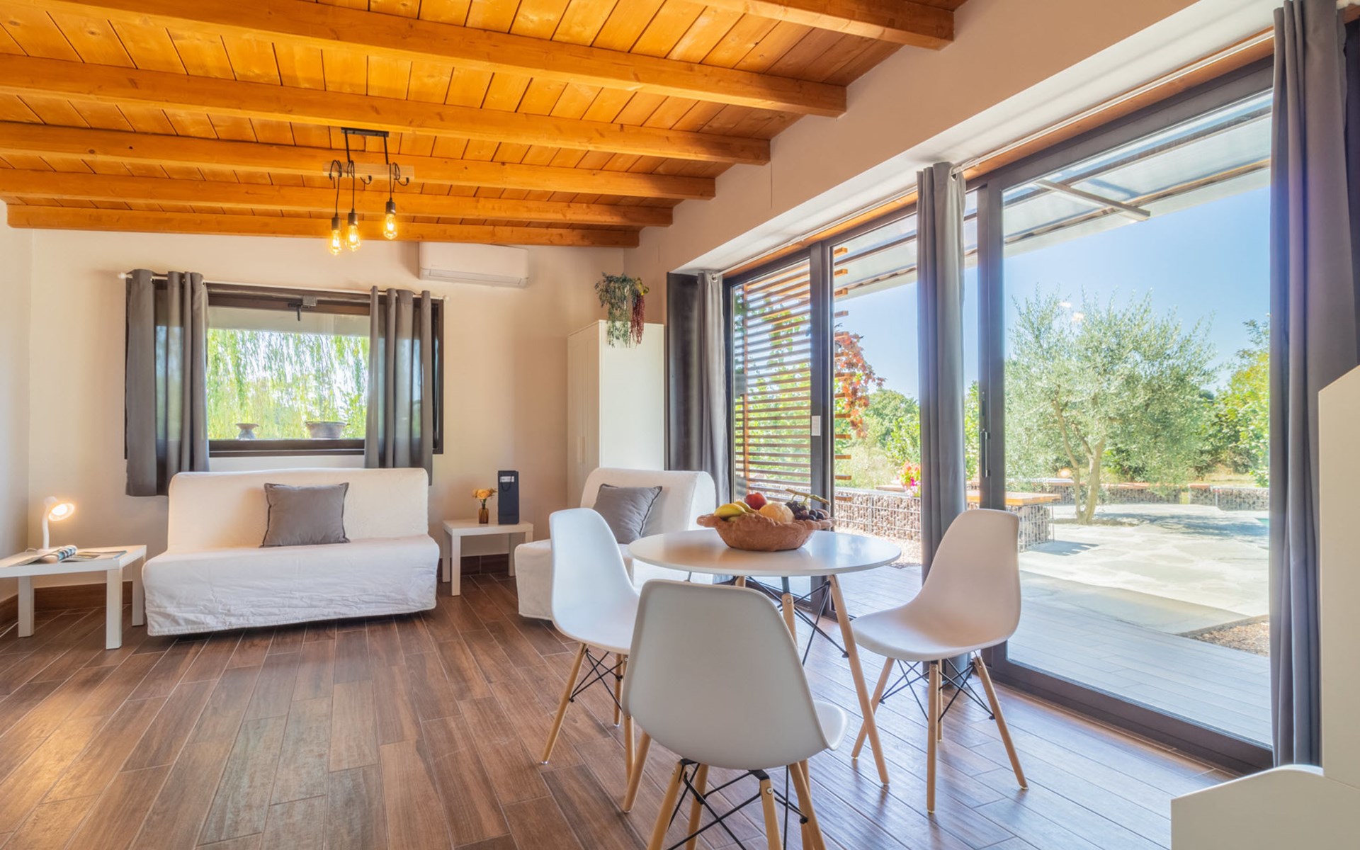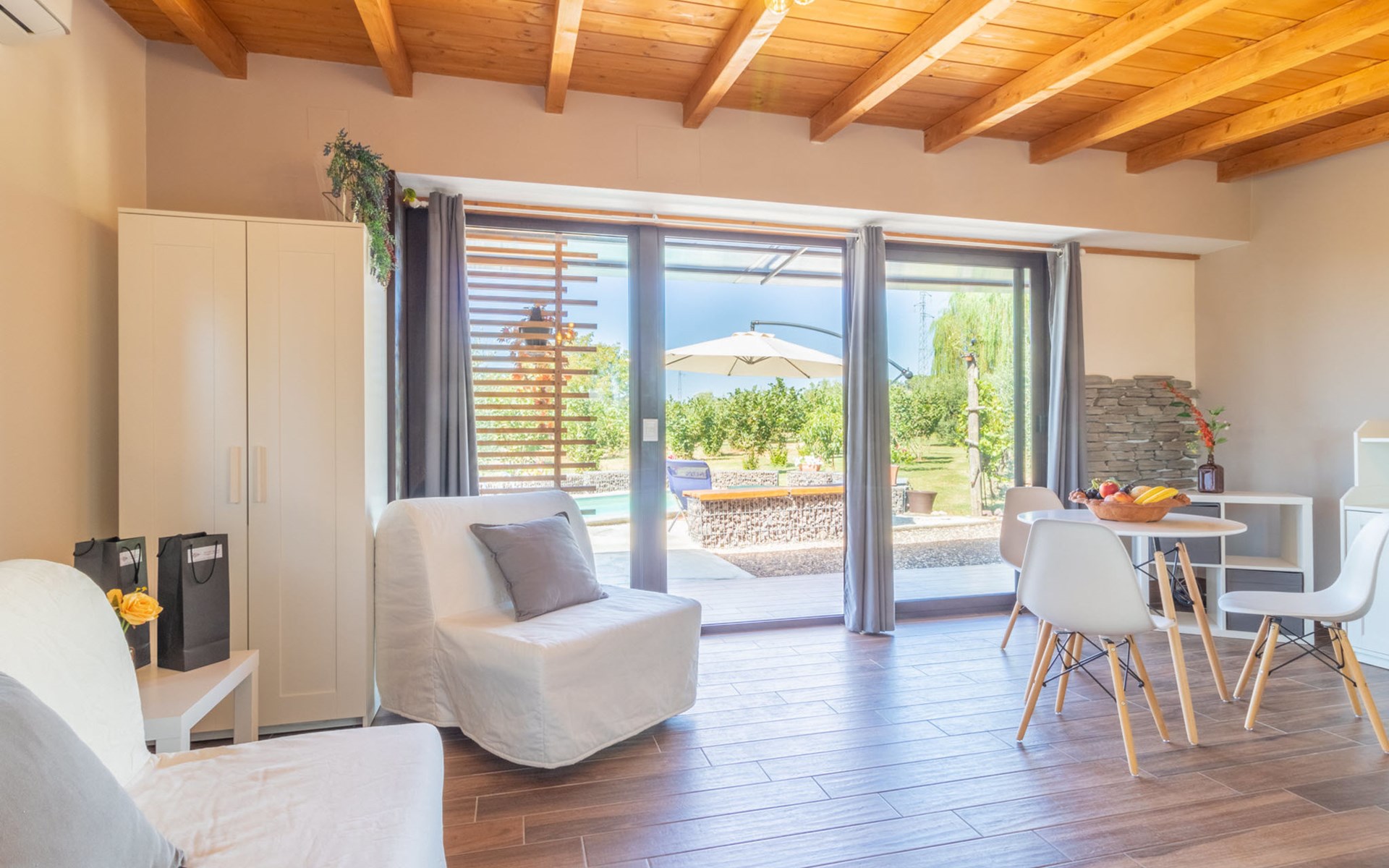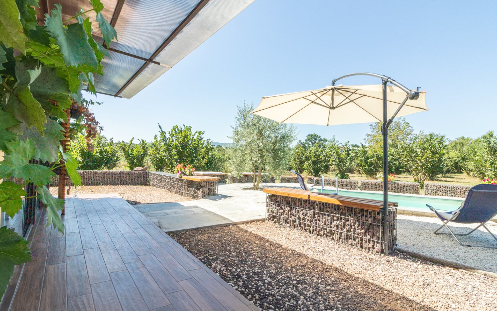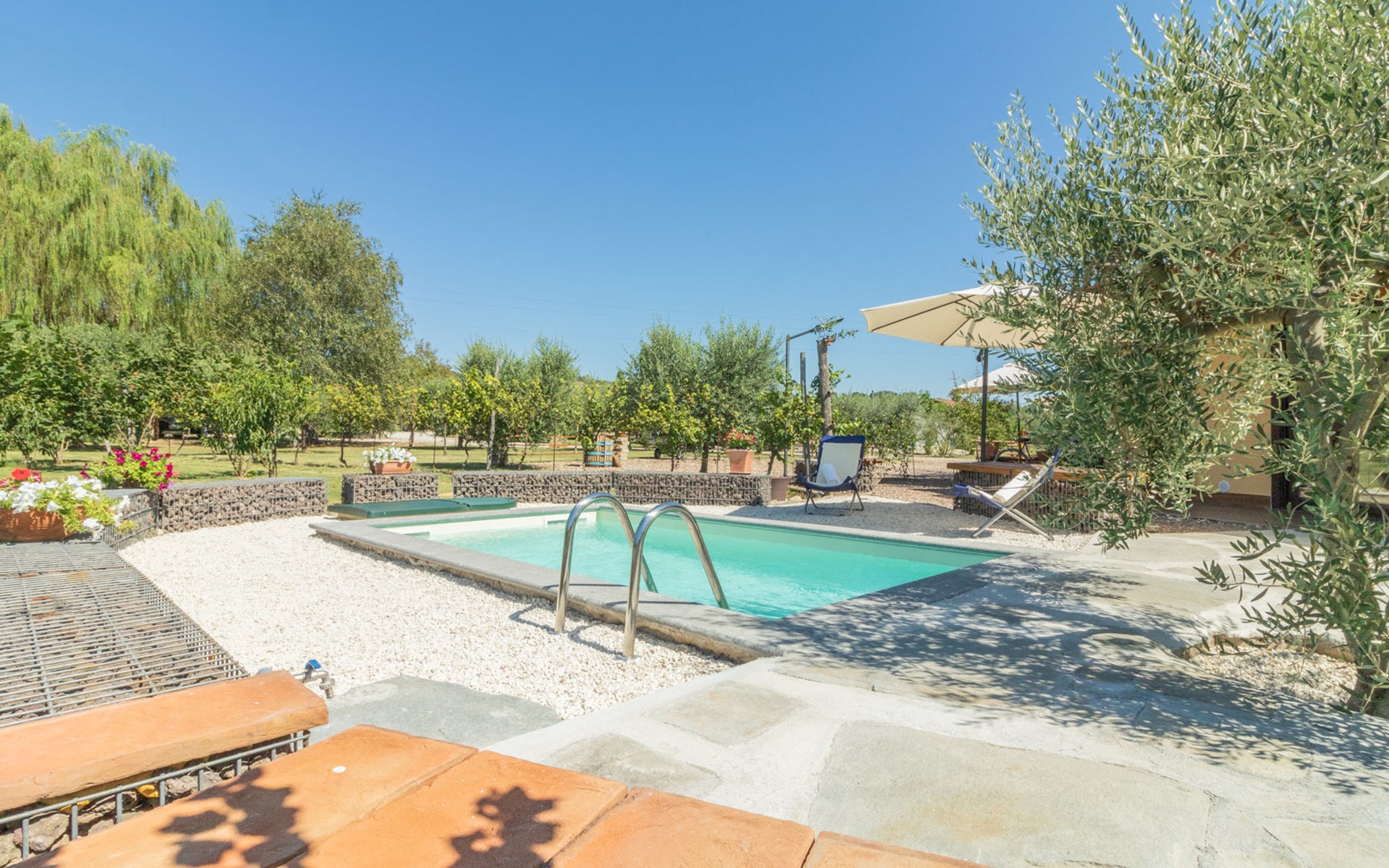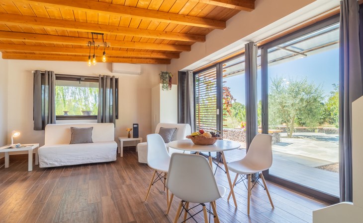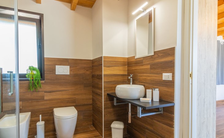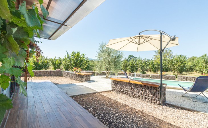 Modern, comfortable chalet "Il Vitigno", detached. 1500 km from the centre of Sutri, 50 km from the centre of Roma, 45 km from the sea, 12 km from the lake. For shared use: park 3 ha (fenced). Private: garden 500 m2, swimming pool (5 x 3 m, depth 120 cm, seasonal availability: 01.Jun. - 30.Sep.) with salt-electrolysis pool-cleaning system. Garden furniture, barbecue. In the house: reception. Roofed, parking on the premises. E-charging station. Supermarket 2 km, bar 2 km, bus stop 1.2 km, sandy beach "Santa Severa" 45 km, bathing lake "Lago Di Vico" 12 km. Golf course (18 hole) 7 km. Nearby attractions: Viterbo 30 km, Lado Di Bracciano 13 km. Local sale of farm products. Please note: residence with electric gates. Property ref. it5607.649/652 is situated on the same property.