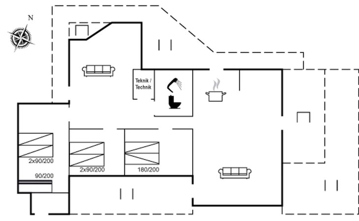 Single-family house, built in 1962. 20 m from the sea. Private: property 2'283 m2, well-kept garden. Barbecue. In the house: washing machine. Parking at the house. Grocery 5 km. Golf course 8 km. The owner does not accept any youth groups.