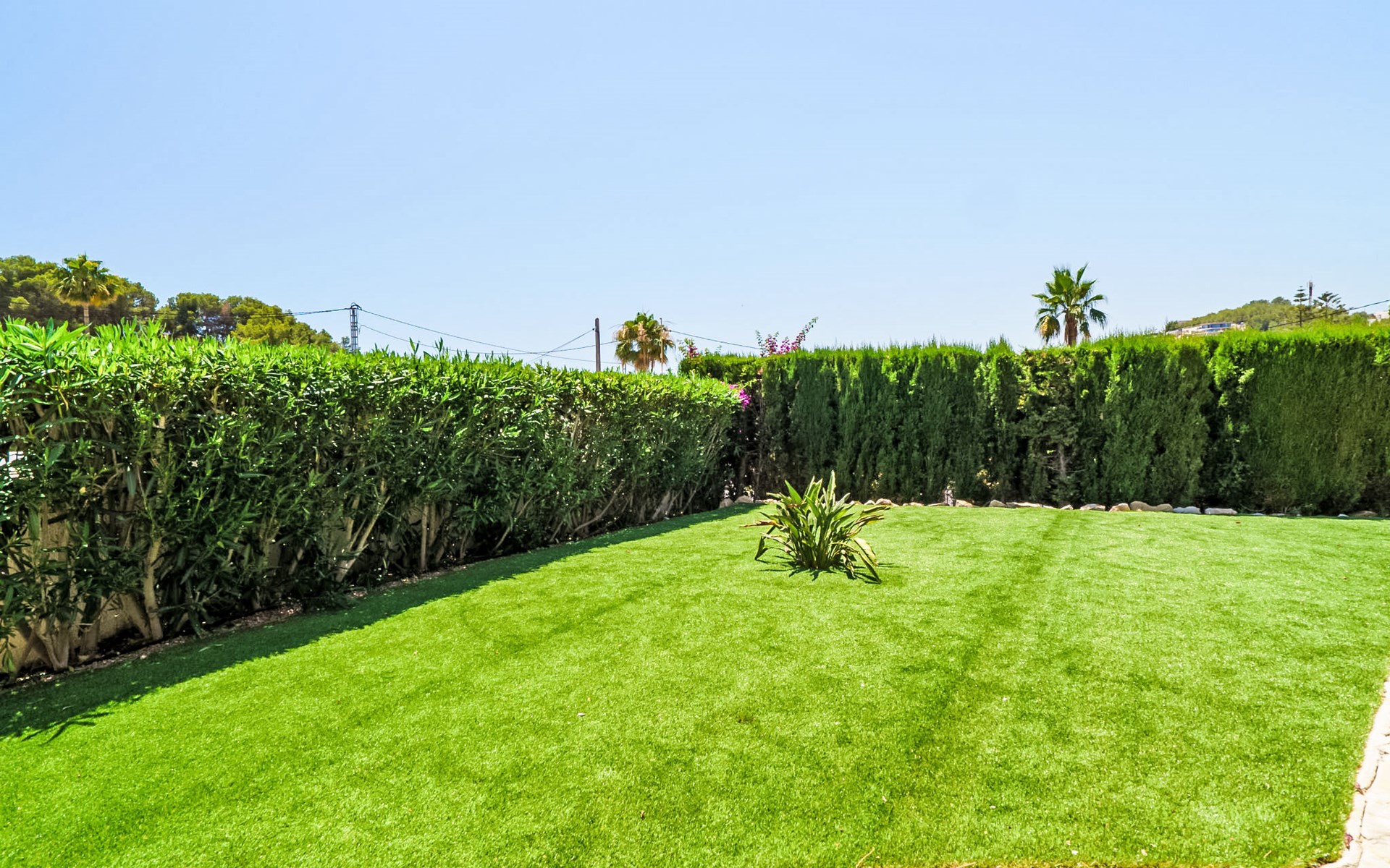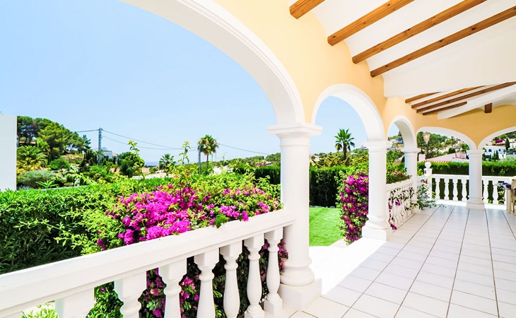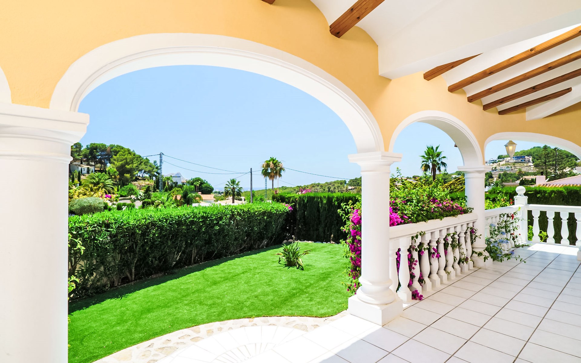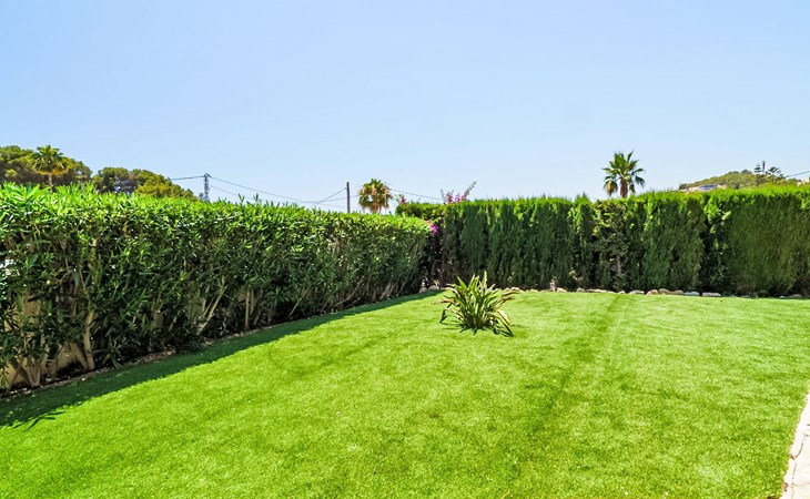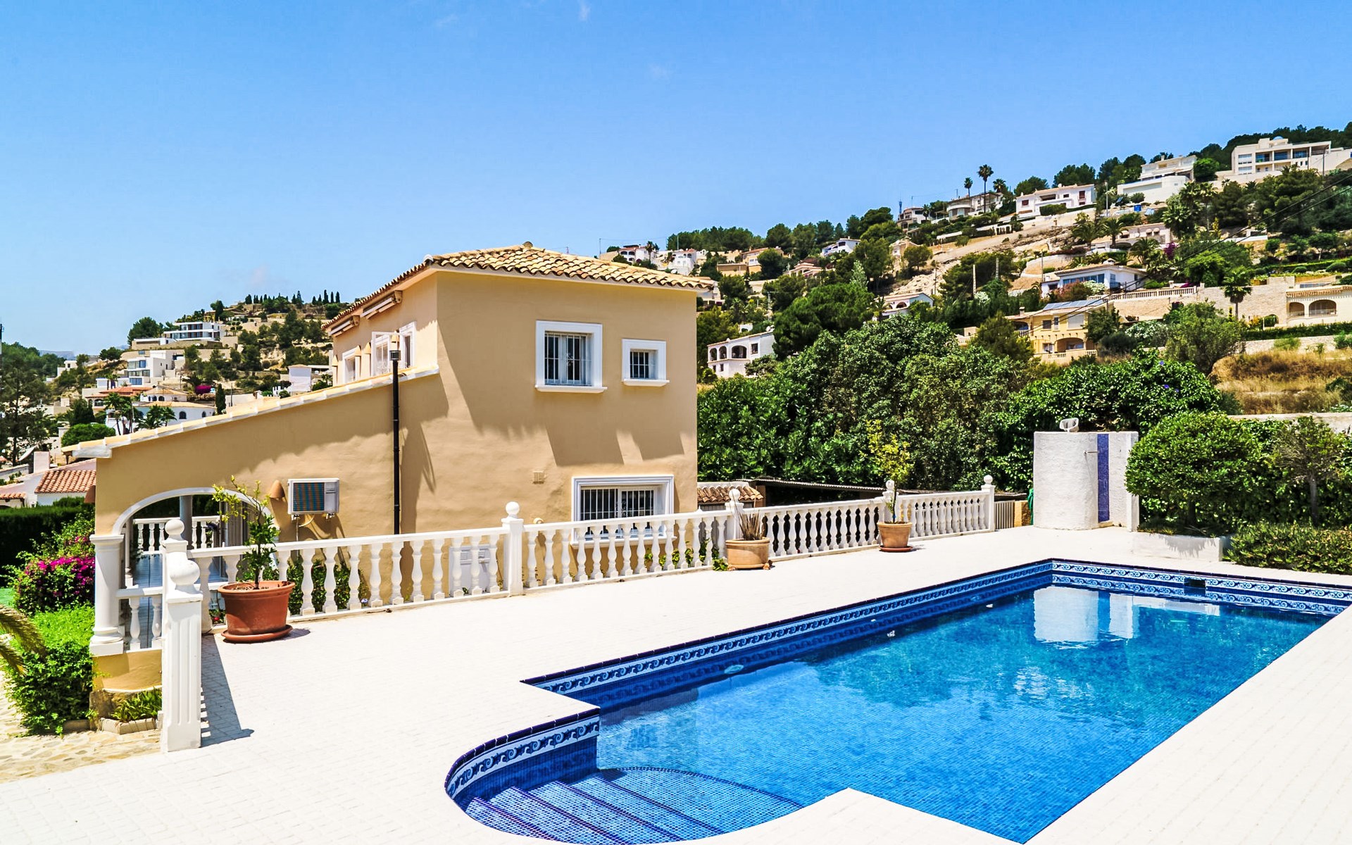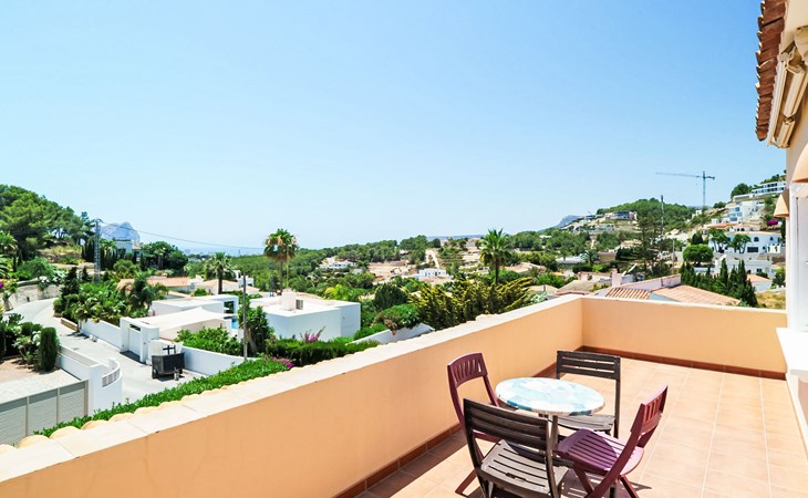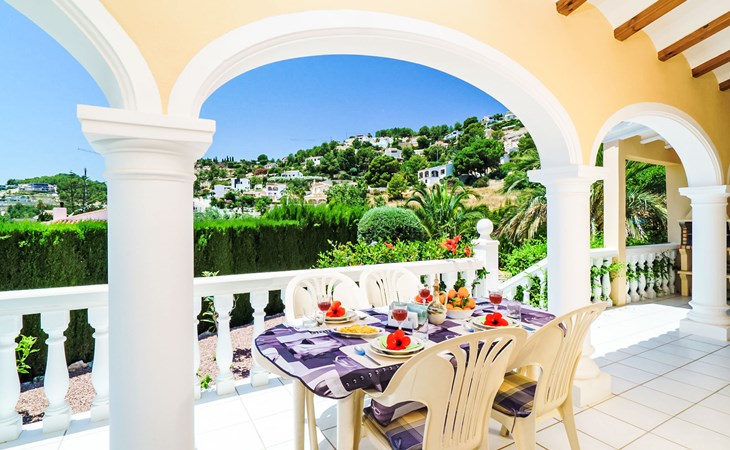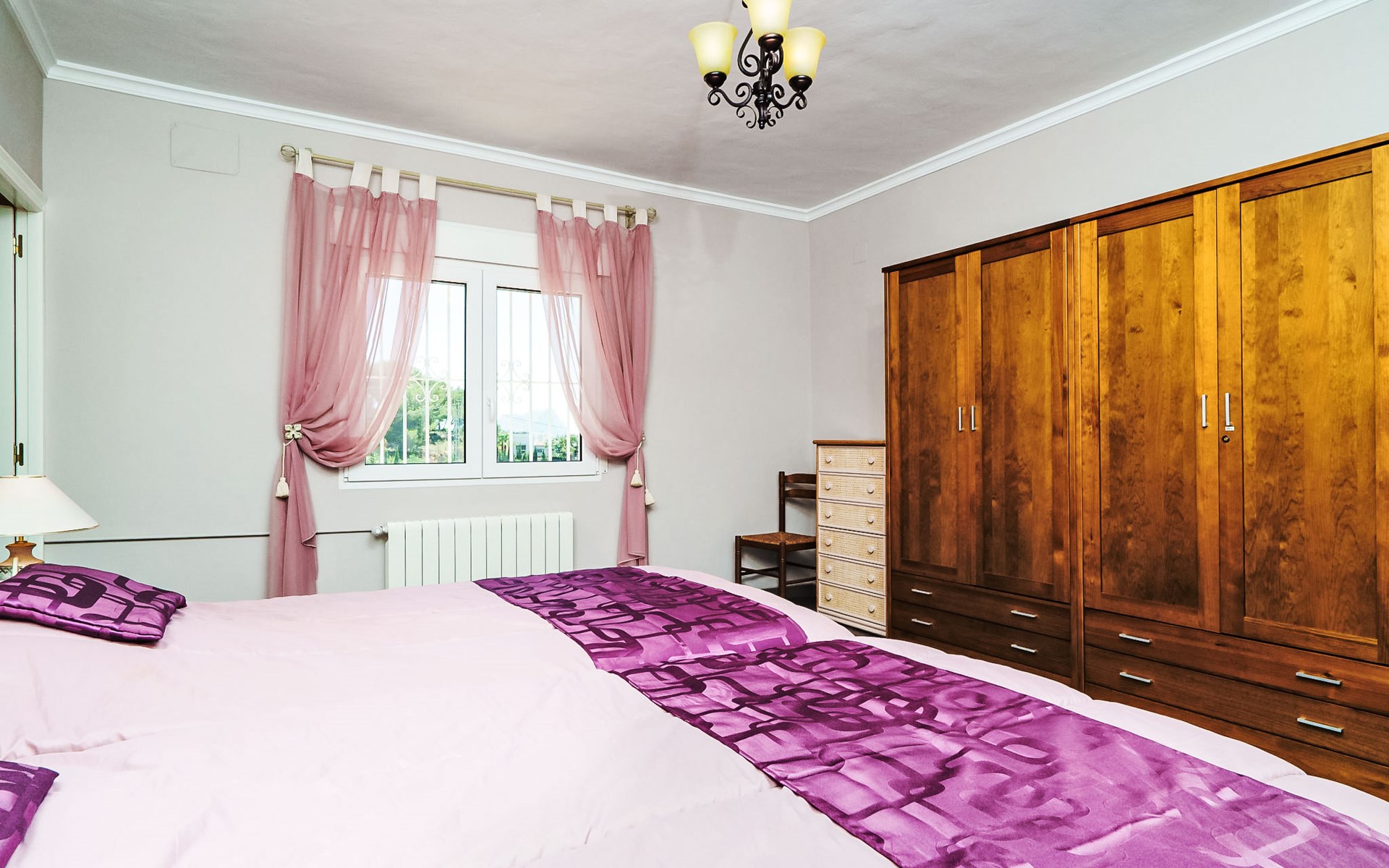 Los Bancales Benissa: Very beautiful, cosy, comfortable house "Alina", 2 storeys. In the district of Benissa 8 km from the centre of Moraira, 8 km from the centre of Calpe, in a secluded, quiet, sunny position, 1.5 km from the sea, 1.5 km from the beach, in a cul-de-sac. Private: large, beautiful, well-kept garden 910 m2 (fenced) with lawn and trees, swimming pool angular (4 x 10 m, depth 140 - 220 cm, seasonal availability: 01.Jan. - 31.Dec.) with internal staircase. Outdoor shower, terrace, garden furniture. In the house: internet access, WiFi, washing machine. Roofed, parking (for 3 cars) on the premises. Carport. Supermarket 1.5 km, restaurant 1.5 km, bus stop 7 km, sandy beach 5 km, swimming bay 1.5 km. Golf course (9 hole) 8 km. Please note: car recommended. Suitable for families, suitable for seniors. The owner does not accept any youth groups.