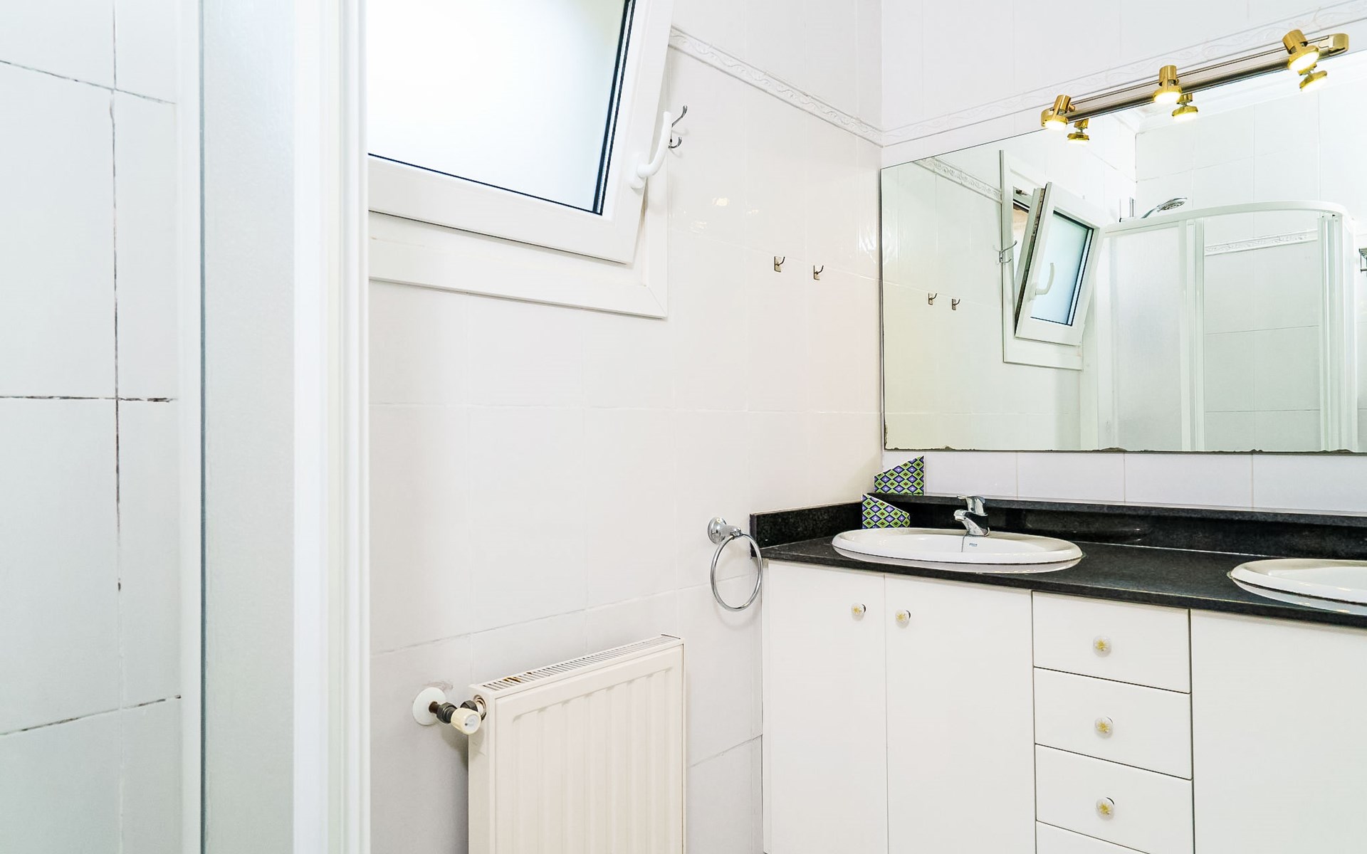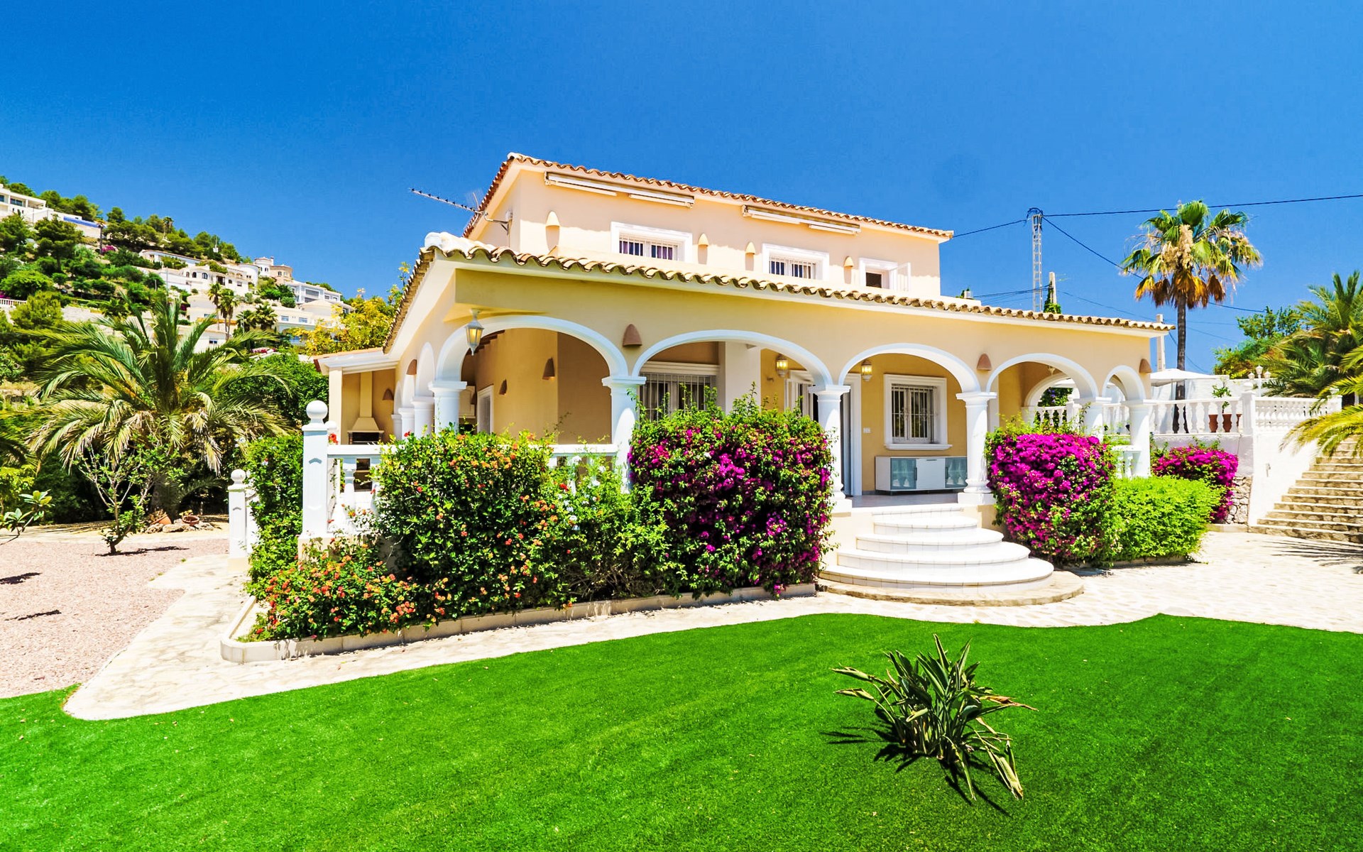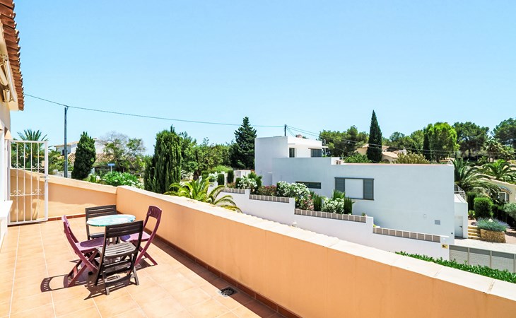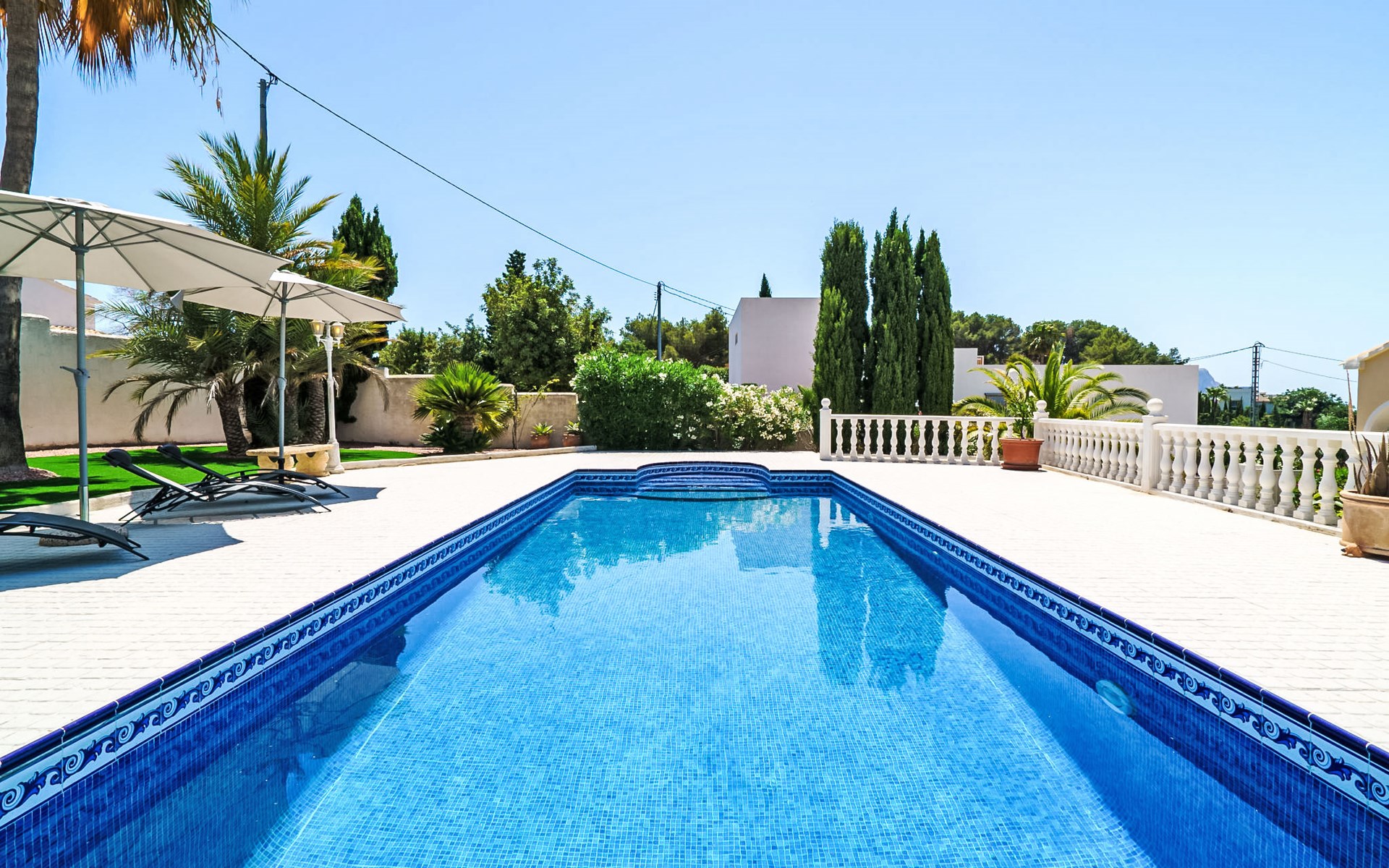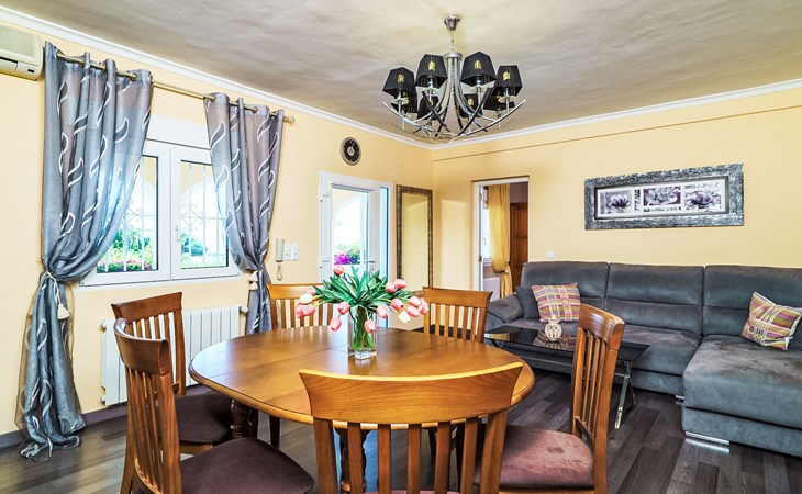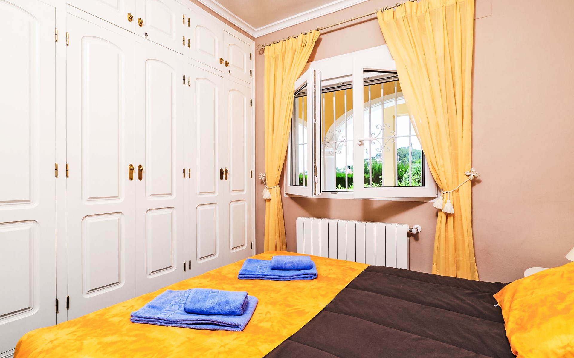 Los Bancales Benissa: Very beautiful, cosy, comfortable house "Alina", 2 storeys. In the district of Benissa 8 km from the centre of Moraira, 8 km from the centre of Calpe, in a secluded, quiet, sunny position, 1.5 km from the sea, 1.5 km from the beach, in a cul-de-sac. Private: large, beautiful, well-kept garden 910 m2 (fenced) with lawn and trees, swimming pool angular (4 x 10 m, depth 140 - 220 cm, seasonal availability: 01.Jan. - 31.Dec.) with internal staircase. Outdoor shower, terrace, garden furniture. In the house: internet access, WiFi, washing machine. Roofed, parking (for 3 cars) on the premises. Carport. Supermarket 1.5 km, restaurant 1.5 km, bus stop 7 km, sandy beach 5 km, swimming bay 1.5 km. Golf course (9 hole) 8 km. Please note: car recommended. Suitable for families, suitable for seniors. The owner does not accept any youth groups.