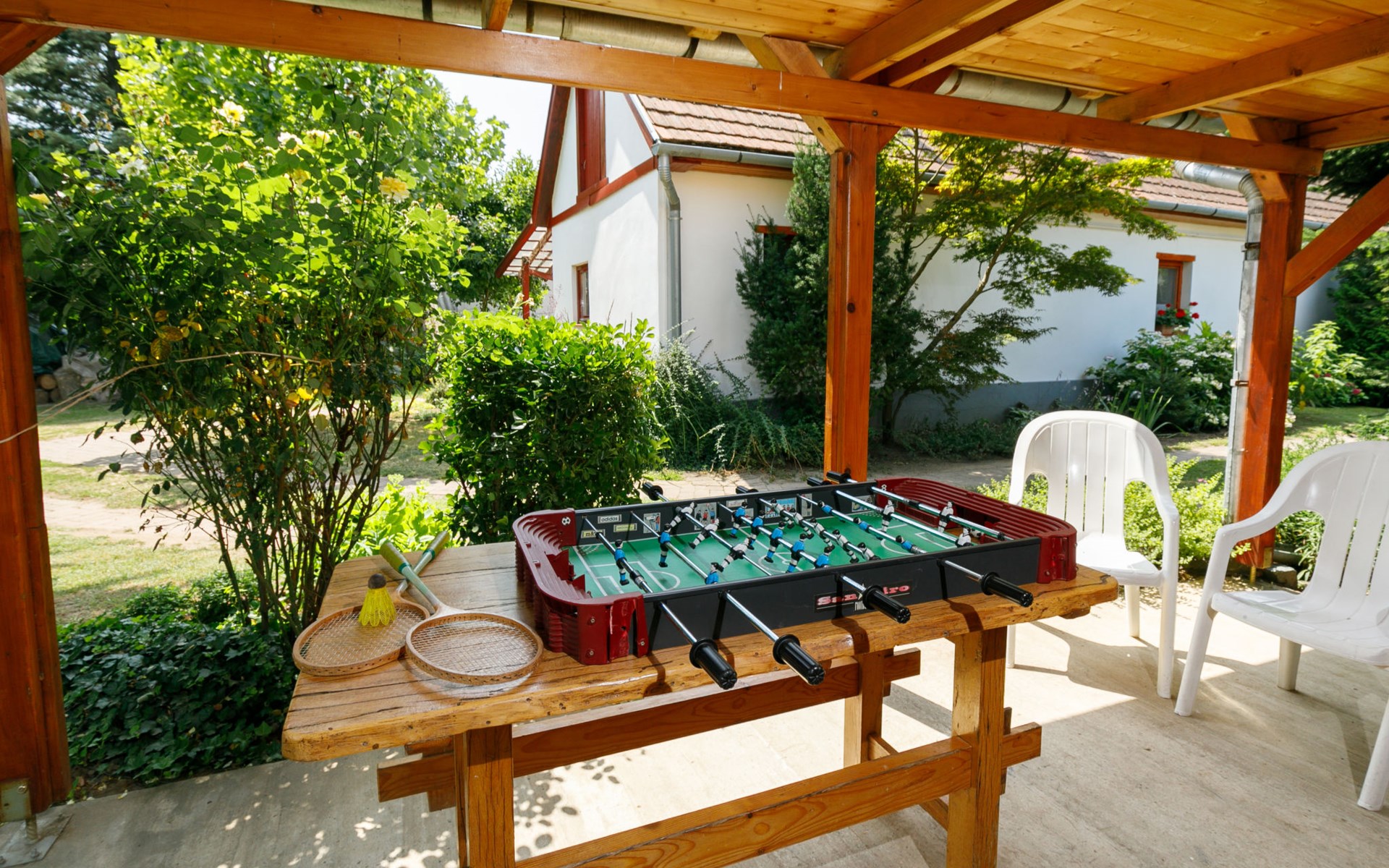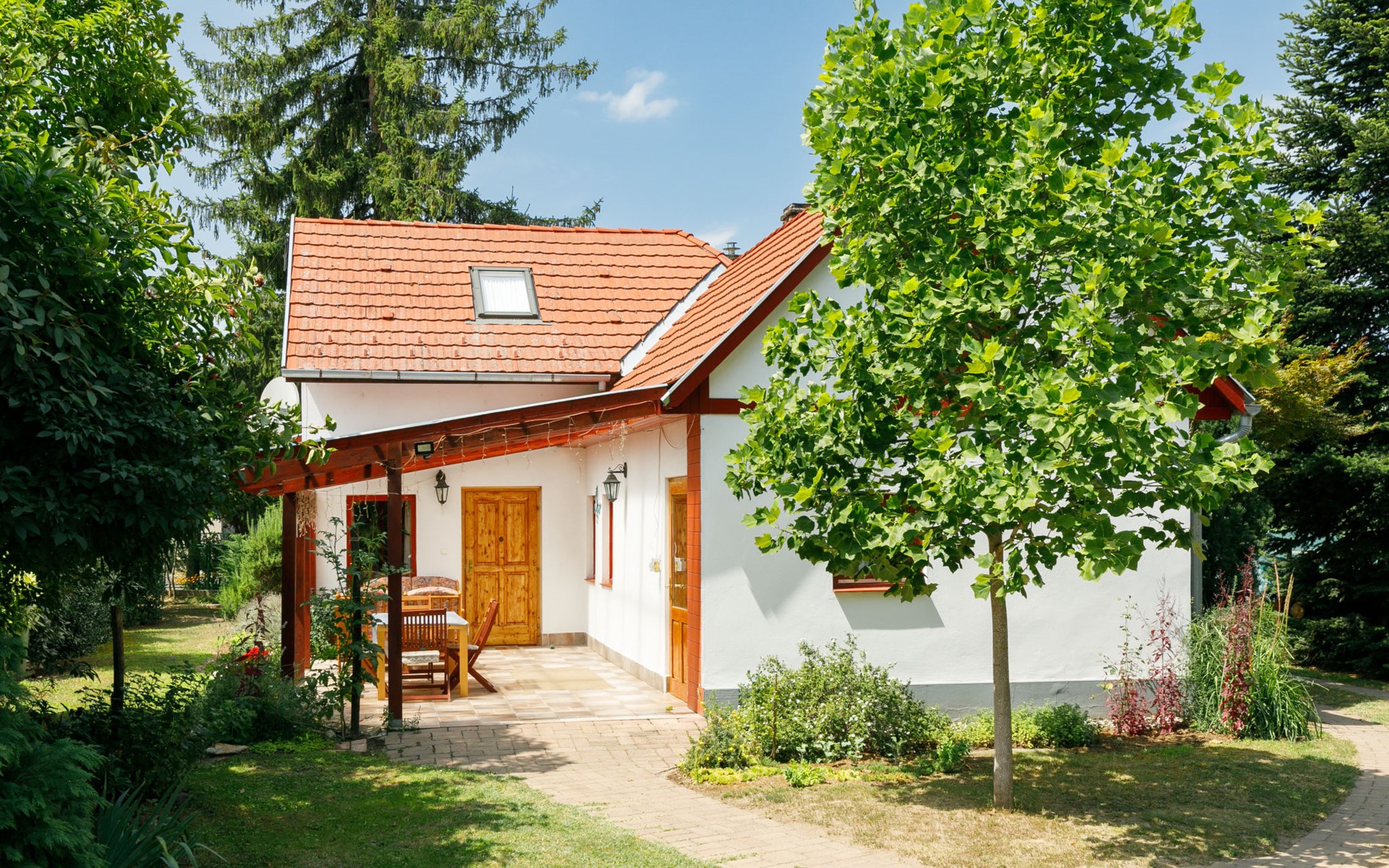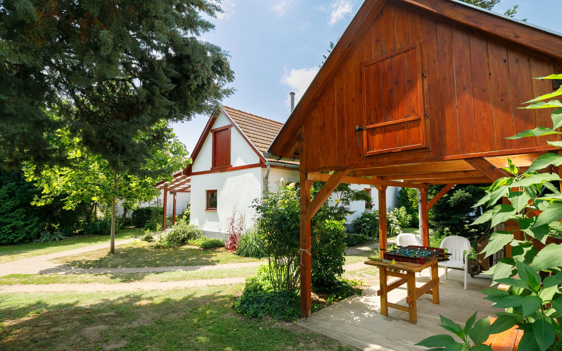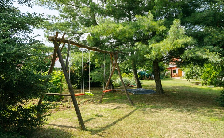 Látrány 3 km from Balatonlelle: Cosy house "Magnolia". 5 km from the lake, 6 km from the beach. Private: property (fenced), large garden with flowers and trees. Terrace, garden furniture, barbecue (swing). In the house: WiFi. Parking (for 2 cars) on the premises. Grocery 900 m, supermarket 7 km, restaurant 140 m, bicycle rental 6 km, bus stop 110 m, railway station 6 km, thermal baths "Igal" 34 km. Marina 7 km, tennis 9 km, riding stable 3 km, children's playground 500 m, fishing possibilities 600 m. Nearby attractions: Siófok Giant Wheels 41 km, Kereki Dinosaur Park 28 km, Adventure Park Zamárdi 35 km, Festetics Csstle 55 km, Hévíz Thermal Bath 60 km, Bella Zoo Siófok 48 km. Please note: suitable for families, baby equipment on request.
