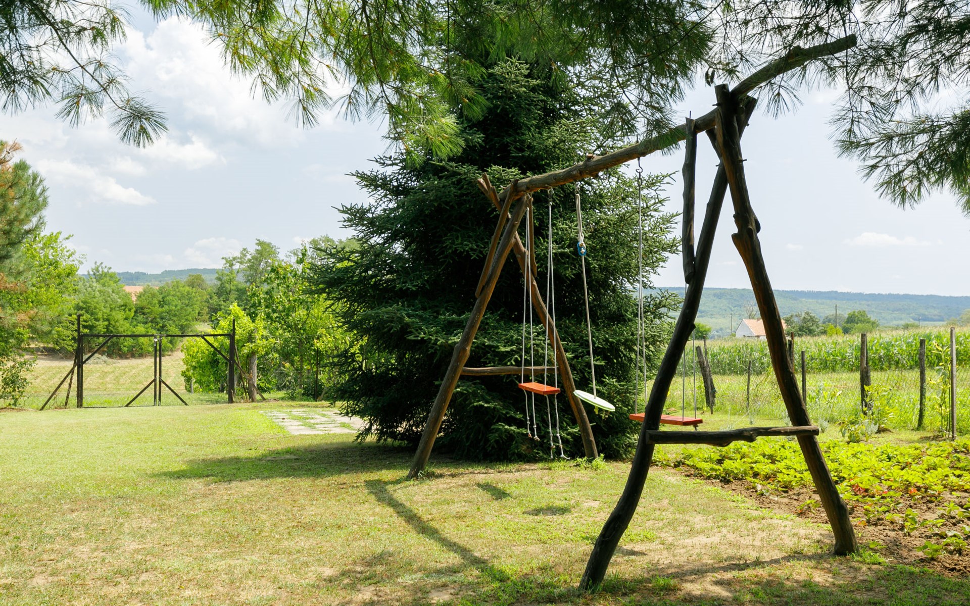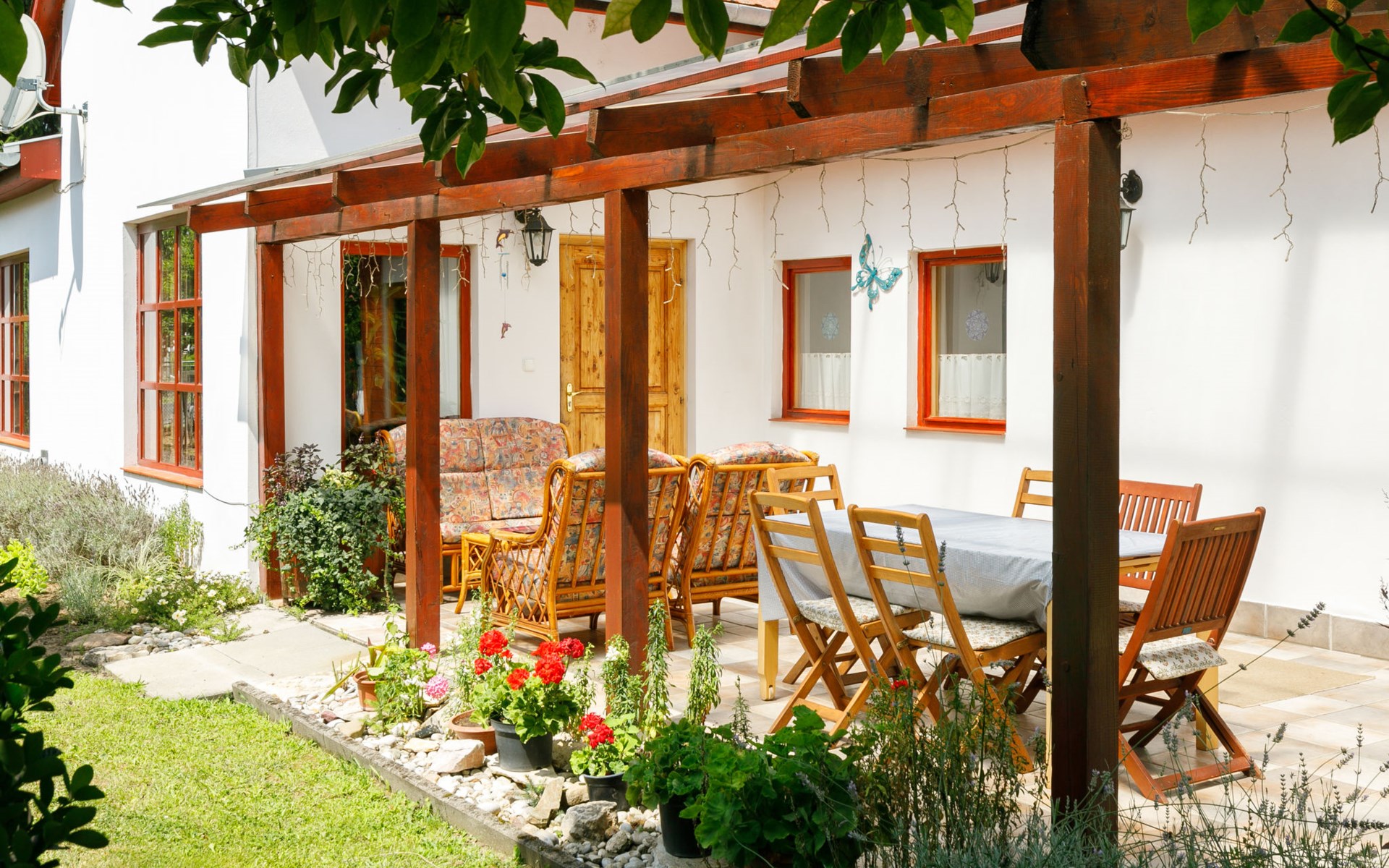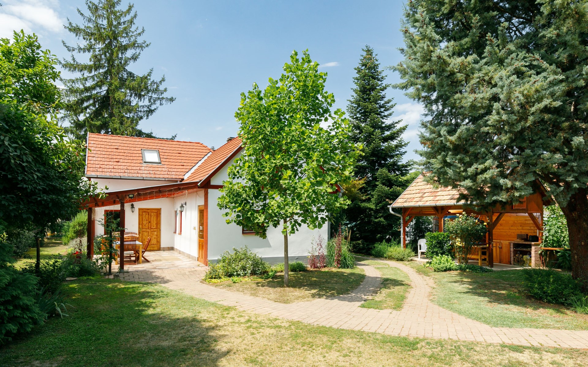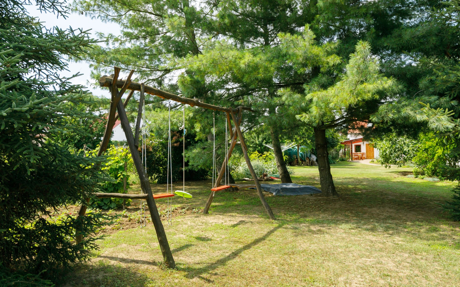 Látrány 3 km from Balatonlelle: Cosy house "Magnolia". 5 km from the lake, 6 km from the beach. Private: property (fenced), large garden with flowers and trees. Terrace, garden furniture, barbecue (swing). In the house: WiFi. Parking (for 2 cars) on the premises. Grocery 900 m, supermarket 7 km, restaurant 140 m, bicycle rental 6 km, bus stop 110 m, railway station 6 km, thermal baths "Igal" 34 km. Marina 7 km, tennis 9 km, riding stable 3 km, children's playground 500 m, fishing possibilities 600 m. Nearby attractions: Siófok Giant Wheels 41 km, Kereki Dinosaur Park 28 km, Adventure Park Zamárdi 35 km, Festetics Csstle 55 km, Hévíz Thermal Bath 60 km, Bella Zoo Siófok 48 km. Please note: suitable for families, baby equipment on request.