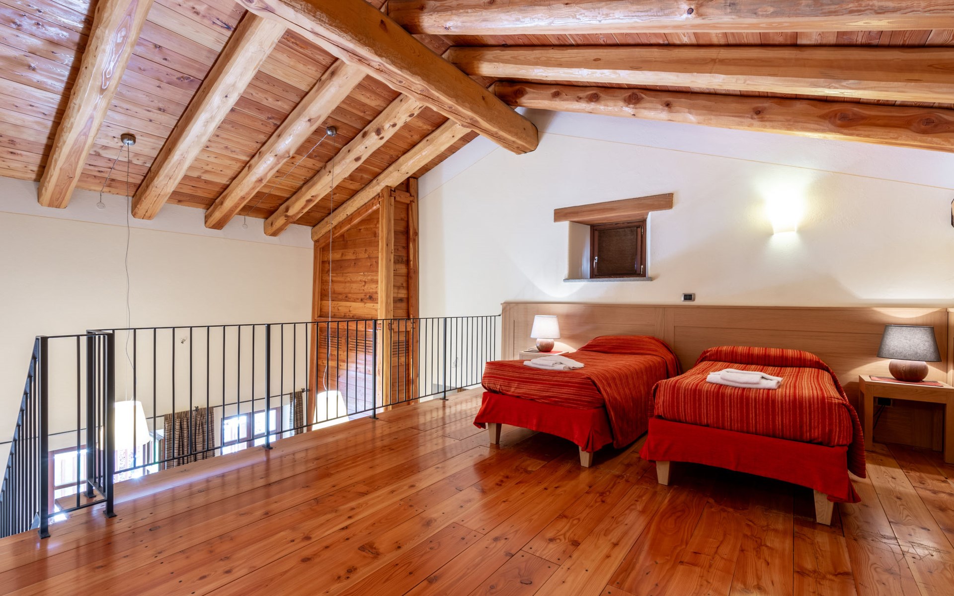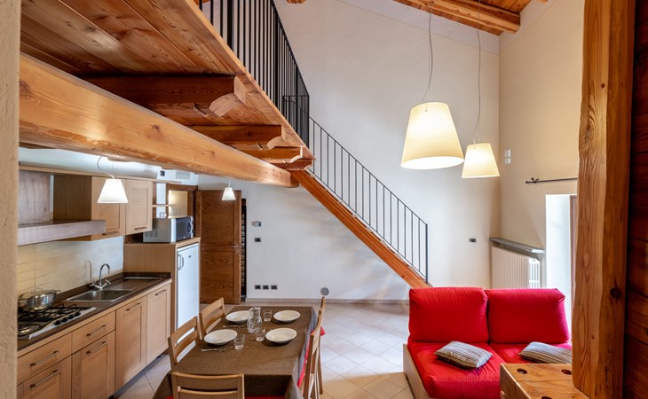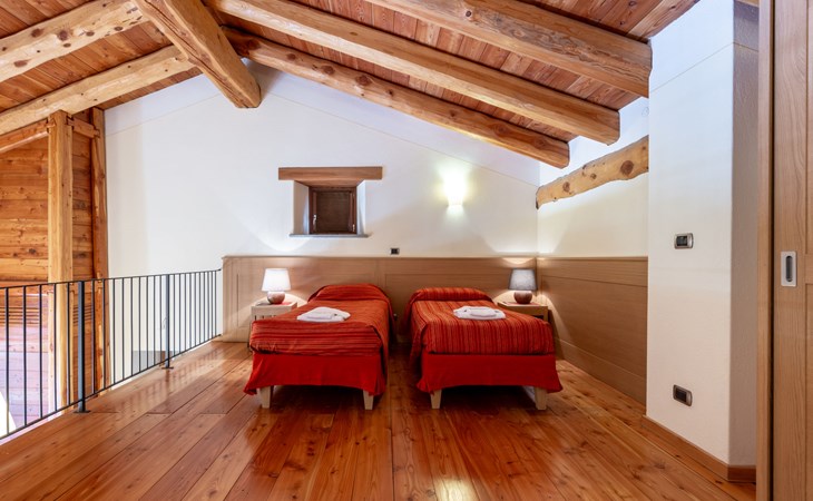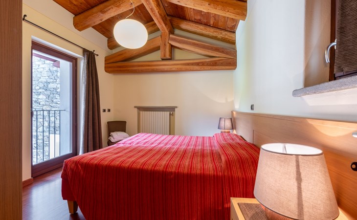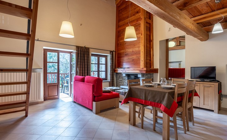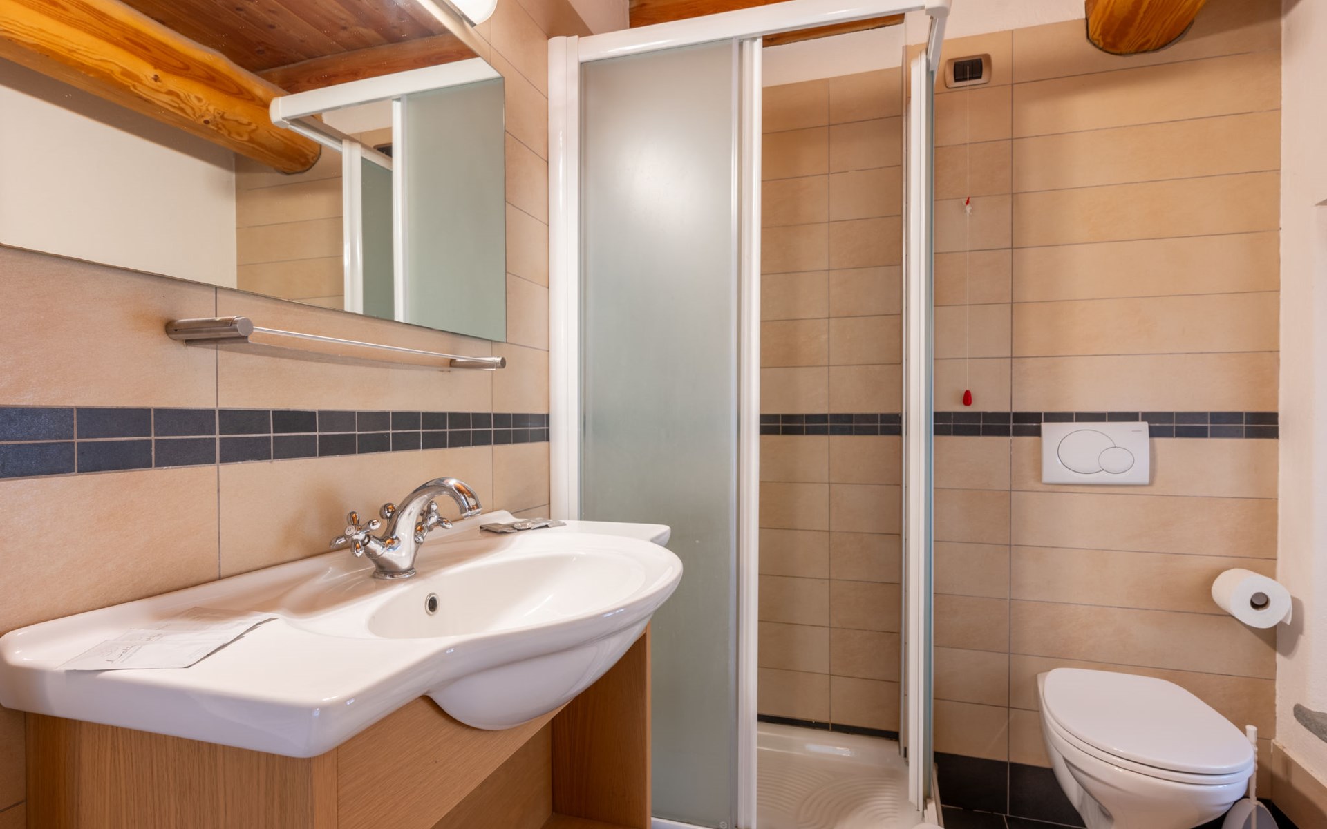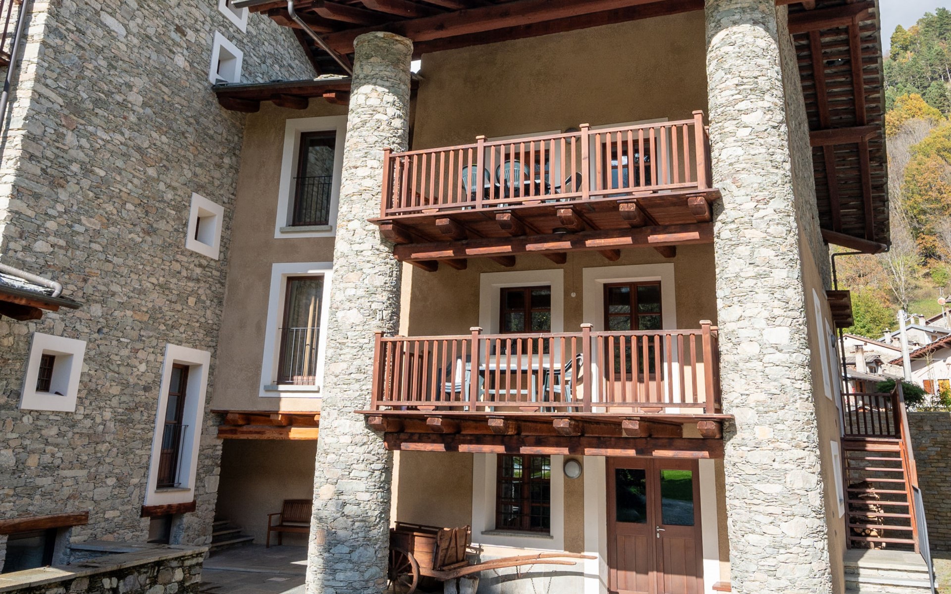 Residence "Torinetto", 1'000 m a.s.l., 4 storeys. 18 apartments in the residence. In the district of Calchesio 1 km from the centre of Sampeyre, on the outskirts, 12 km from the centre of Casteldelfino, 35 km from the centre of Saluzzo, 50 m from the river. For shared use: park 5'000 m2, large, beautiful, well-kept garden (not fenced) with plants and trees, swimming pool fenced (12 x 5 m, depth 100 - 170 cm, seasonal availability: 01.Jun. - 30.Sep., extra). Shower/WC in the pool area, outdoor shower, boccia, terrace, garden furniture, barbecue, children's playground. In the complex: reception, restaurant, bar, lounge, WiFi, fitness room, storage room for bicycles, washing machine (for shared use, extra), heating available only from 15.Oct. - 15.Apr.. Breakfast and half board possible (extra). Parking. Supermarket 1.5 km, bus stop 2 km, railway station "Costigliole di Saluzzo" 35 km. The facilities for shared use are in the main building with another 40 hotel rooms. The pool is in approx. 50 m distance to «La Borgata» and approx. 150m from «Casa del Ponte». Wi-fi only at the reception.