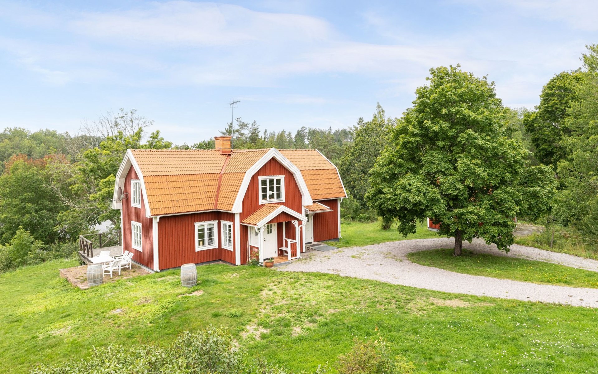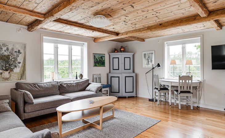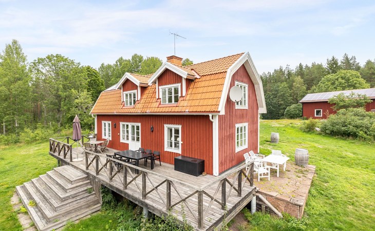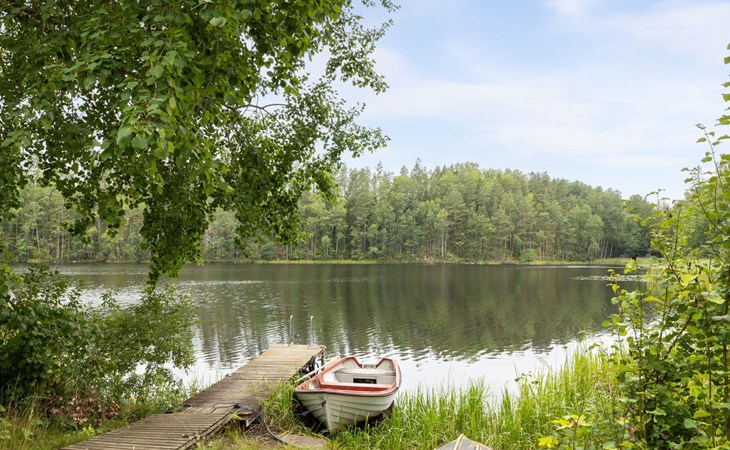 Totebo 9 km from Hjorted: Rustic house "Klinten Totebo", 2 storeys, surrounded by trees and meadows. Property composed of main house and outbuilding 10 km from the centre of Hjorted, 25 km from the centre of Vimmerby, 45 km from the centre of Västervik, 45 km from the sea, 50 m from the lake. Private: natural state property 3'000 m2 with trees, meadow. Bathing jetty. Rowing boat, parking (for 4 cars) on the premises. Shop 2 km, supermarket 25 km, railway station "Vimmerby" 25 km, ferry "Helsingborg" 325 km, sandy beach 2 km, grass beach 100 m, indoor swimming pool 45 km, lake Ytlången 100 m. Fishing possibilities 50 m. Please note: The owner does not accept any groups. The owner does not accept any youth groups. Private mooring. Animals in the neighbourhood.