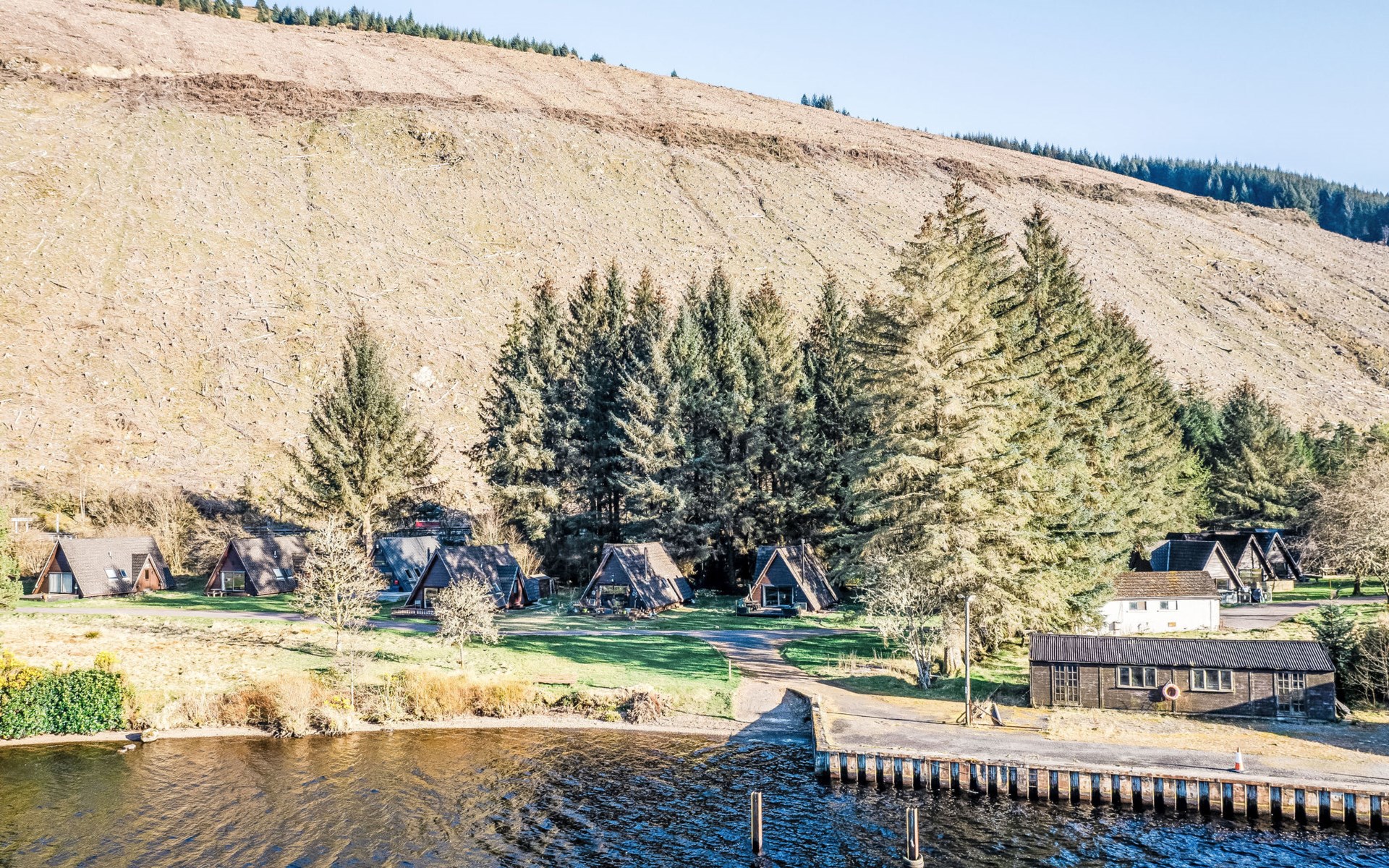36 km from Fort William: Cosy, comfortable chalet "Pine Needle Lodge", detached, surrounded by trees. On the outskirts, 22 km from the centre of Spean Bridge, in a secluded, quiet position, 5 m from the lake, in the countryside. Private: natural garden. Terrace, garden furniture, public parking 10 m. Shop 16 km, grocery 16 km, supermarket 37 km, bus stop "Great Glen Waterpark" 700 m, railway station "Fort William" 37 km. Golf course (18 hole) 36 km, cable car 36 km, slopes 36 km. Nearby attractions: Fort William 36 km, Inverness 69 km, Harry Potter Steam Train 58 km. Well-known ski regions can easily be reached: Nevis Range 36 km. Well-known lakes can easily be reached: Loch Oich, Loch Ness, Loch Eil. Hiking paths: Great Glen Way 1 km. Please note: car recommended. Suitable for families.