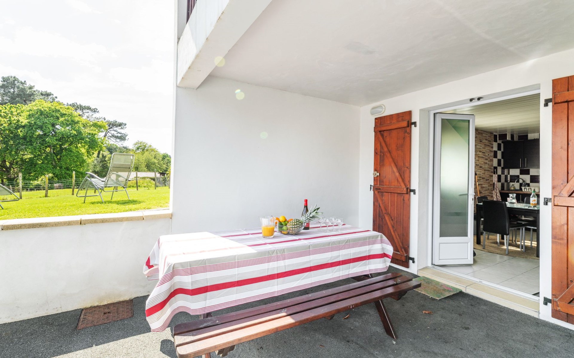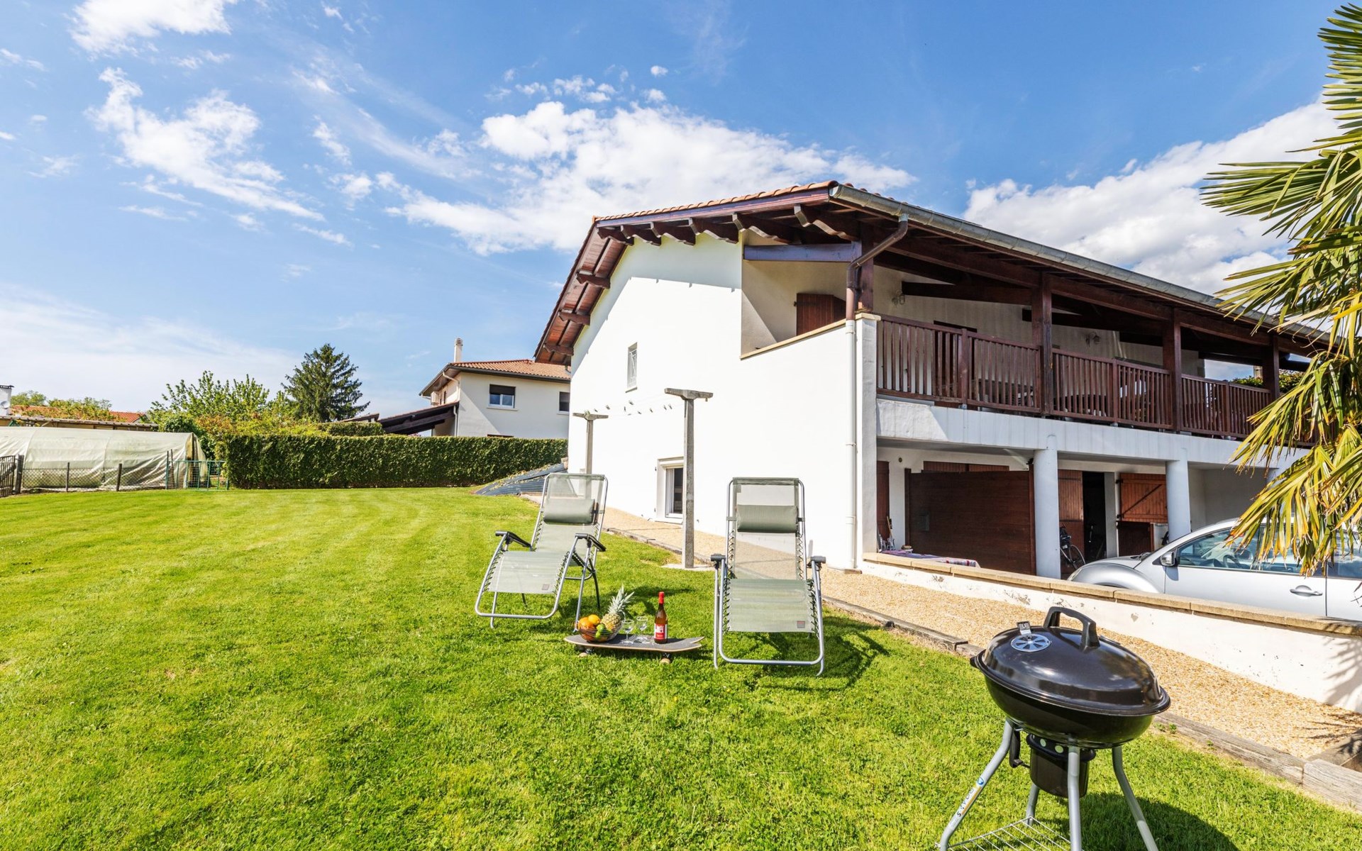 Anglet 6 km from Biarritz: 2-family house "Jardins de Maignon". In the district of Maignon, in the residential district, 5.9 km from the sea, 5.9 km from the beach. Private: large garden (fenced) 400 m2, parking. Bus stop "ligne 34 - Anglet Plage" 200 m, sandy beach "Chambre d'Amour" 5.9 km. Golf course (18 hole) 5.4 km, surf school 5.9 km, riding stable 4.3 km. Nearby attractions: Bayonne 4 km, Marché des Halles 5 Cantons 4.2 km, Phare de Biarritz 6.2 km, Aquarium de Biarritz 6.2 km, Saint-Jean de Luz 17.9 km. Hiking paths: La Rhune 45 km. Please note: the keys‘ handover takes place by the agency Interhome in Biarritz, 6 km. The owner lives on the same property. Airfield 4.3 km from the property.
