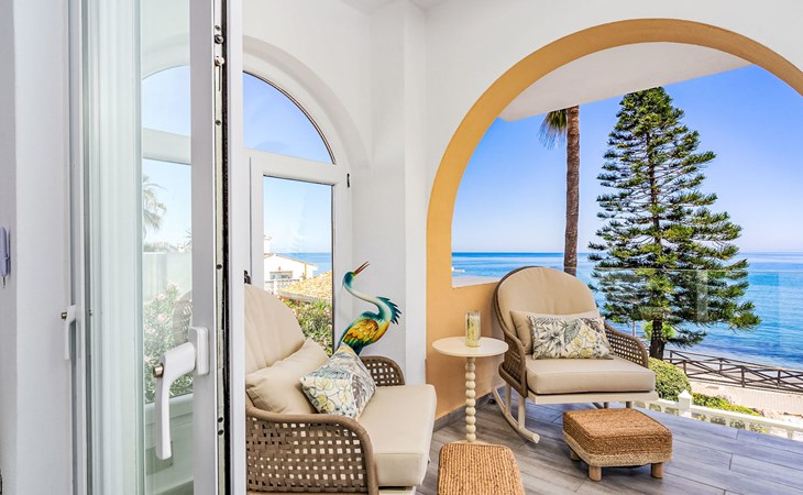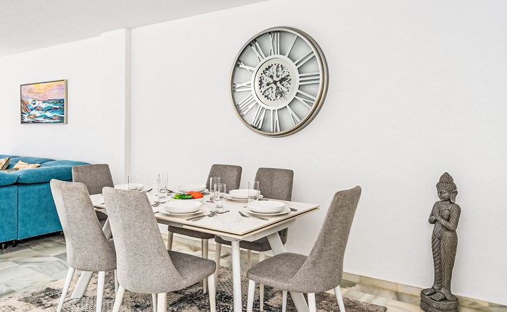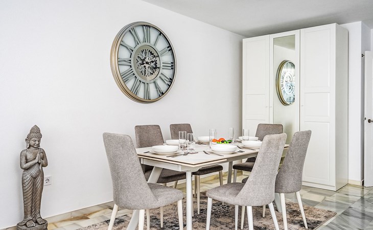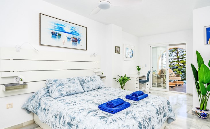 Very modern, beautiful, cosy apartment block "Mirabella". In a sunny position, excellent location: right in the centre but still quiet, 25 m from the sea, 25 m from the beach, direct access to the beach, south facing position. Private: garden. In the complex: restaurant, sauna (extra). Fitness room (extra). Massage (extra). (all extra). Restaurant 200 m, bus stop 400 m. The owner does not accept any youth groups. Part of the house is closed and unoccupied. The communal swimming pool, community pool and sauna are located in the Gran Hotel Elba, which is 200 metres from the flat.