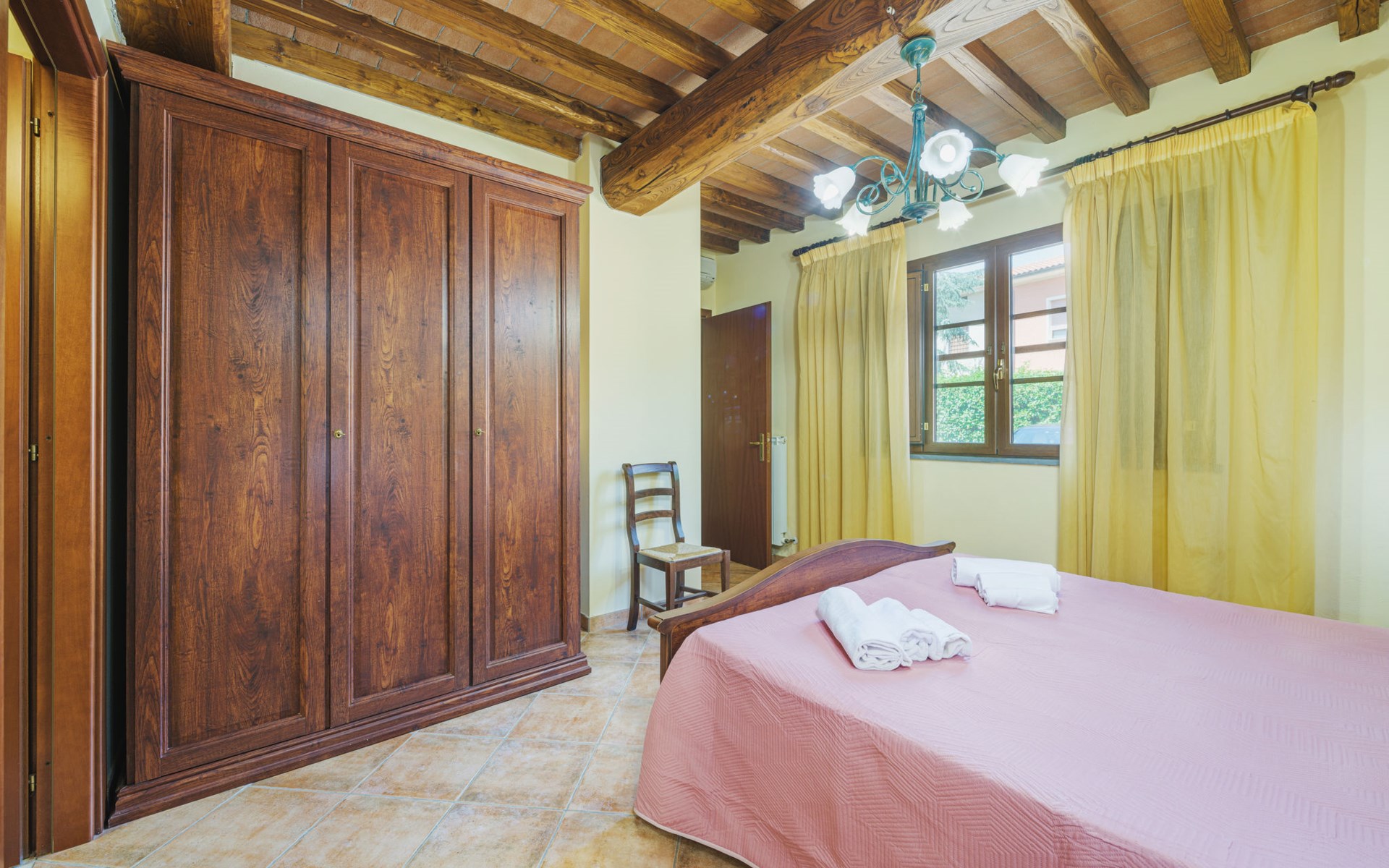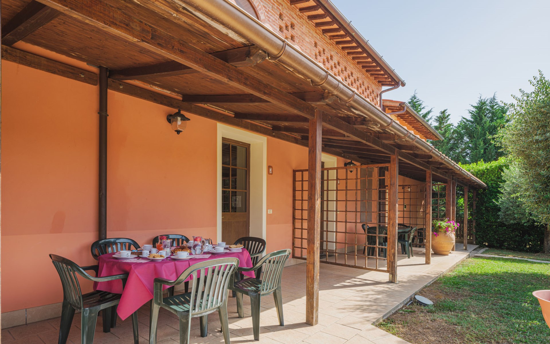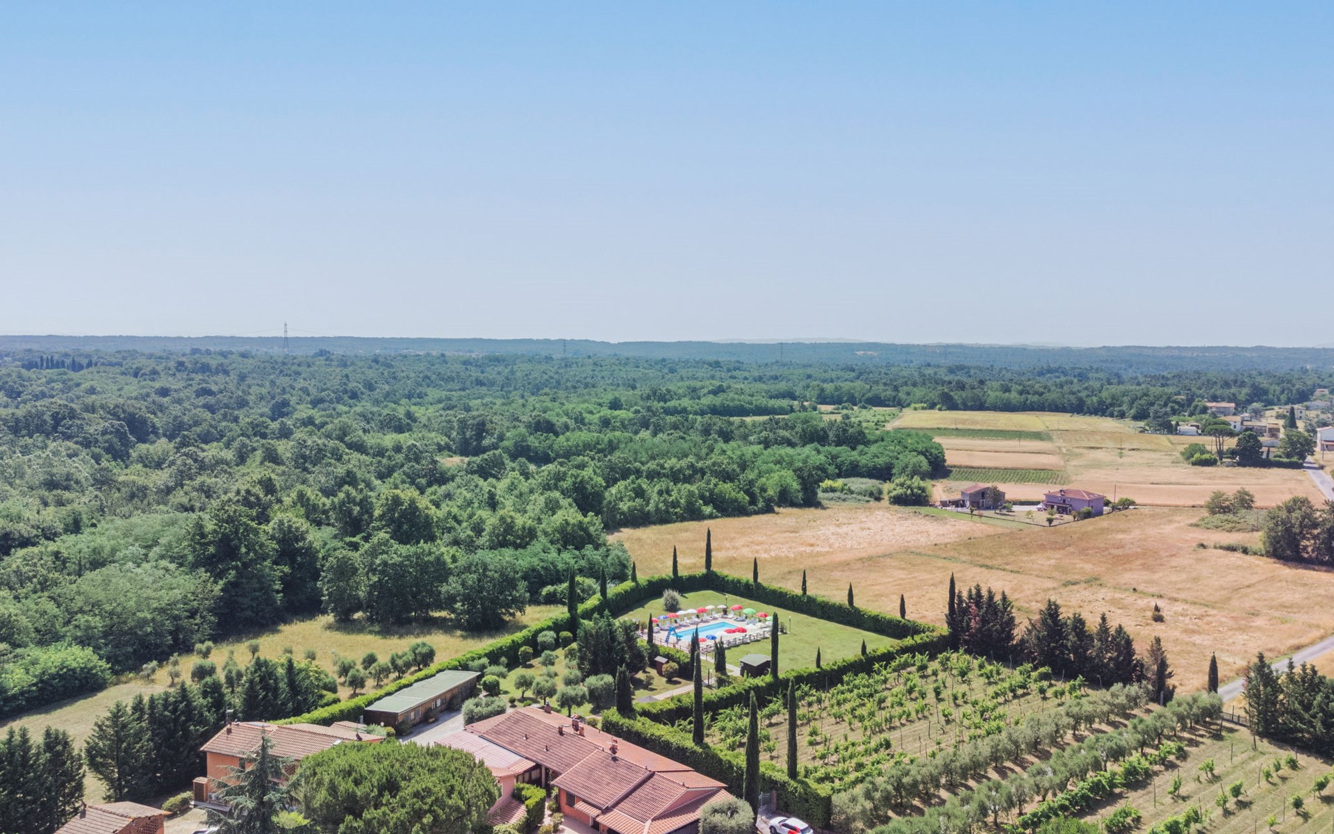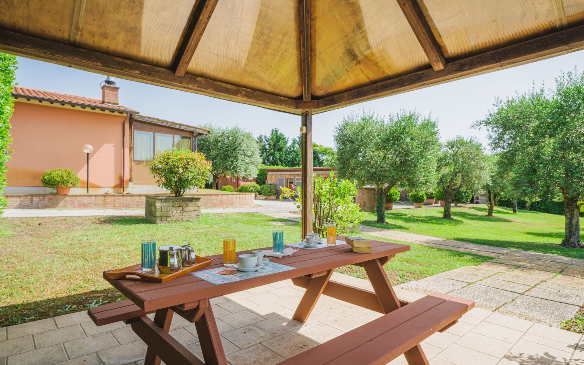 Agriturismo "Ponziani". 10 apartments in the residence. 1.3 km from the centre of Orentano, 25 km from the centre of Lucca, 33 km from the centre of Pisa, 45 km from the sea, 45 km from the beach, in the countryside. For shared use: property 5'000 m2 (fenced) with lawn and trees, swimming pool (12 x 6 m, depth 140 cm, seasonal availability: 15.Apr. - 07.Oct.). WC in the pool area, slide, outdoor shower, arbour, barbecue, children's playground. In the house: washing machine (for shared use). Parking on the premises. Shop 1.3 km, supermarket 5.5 km, bus stop 1 km, sandy beach "Viareggio" 45 km. Nearby attractions: Collodi Pinocchio Park 19 km, Montecatini Terme 21 km, San Giuliano Terme 30 km, Firenze 78 km, Zoo di Pistoia 36 km, Riomaggiore (5 Terre) 114 km. Well-known lakes can easily be reached: Lago Gherardesca 11 km, Torre del Lago 50 km, Lago di Massaciuccoli 49 km. Please note: car recommended. Local sale of farm products. The owner lives on the same property.