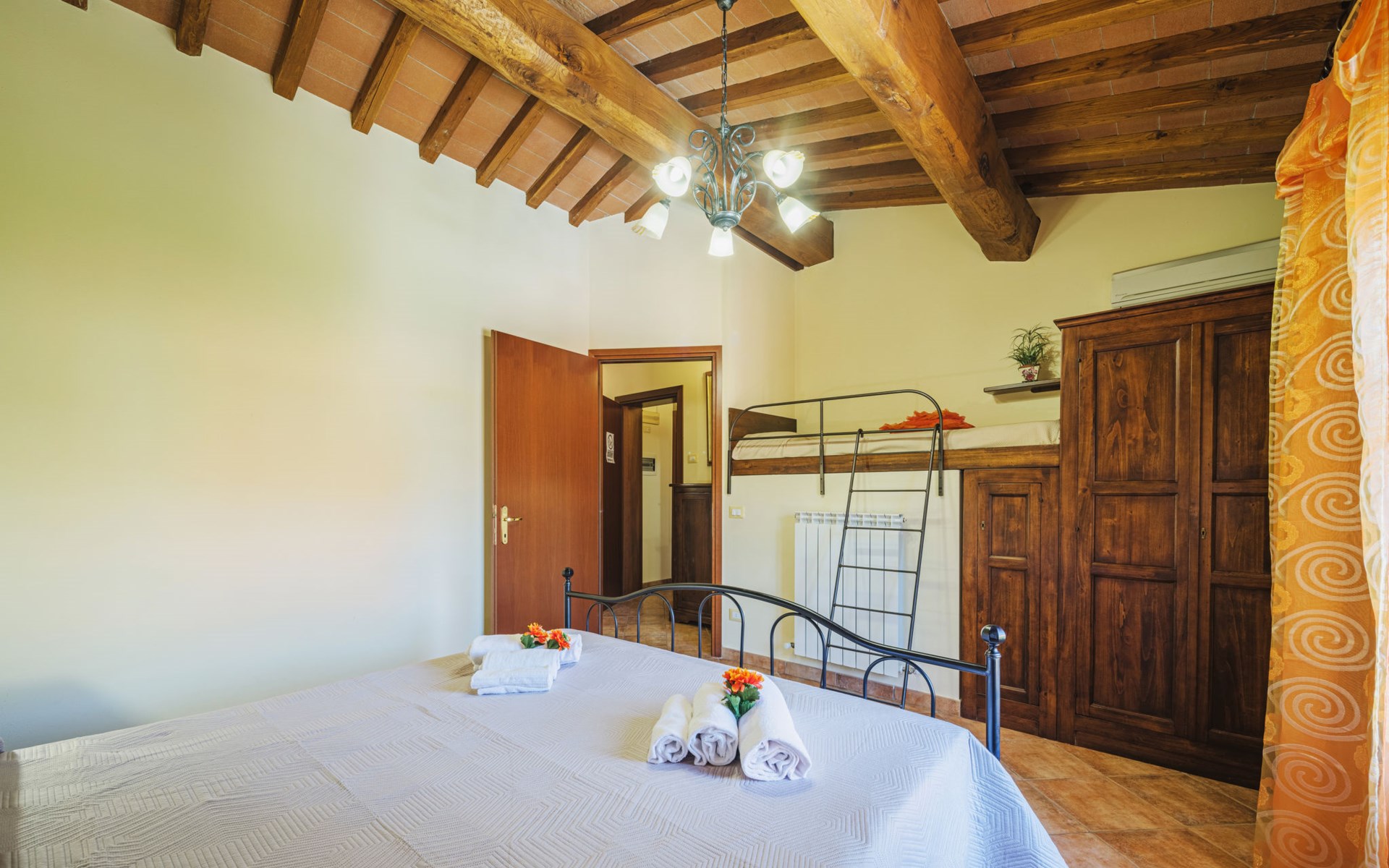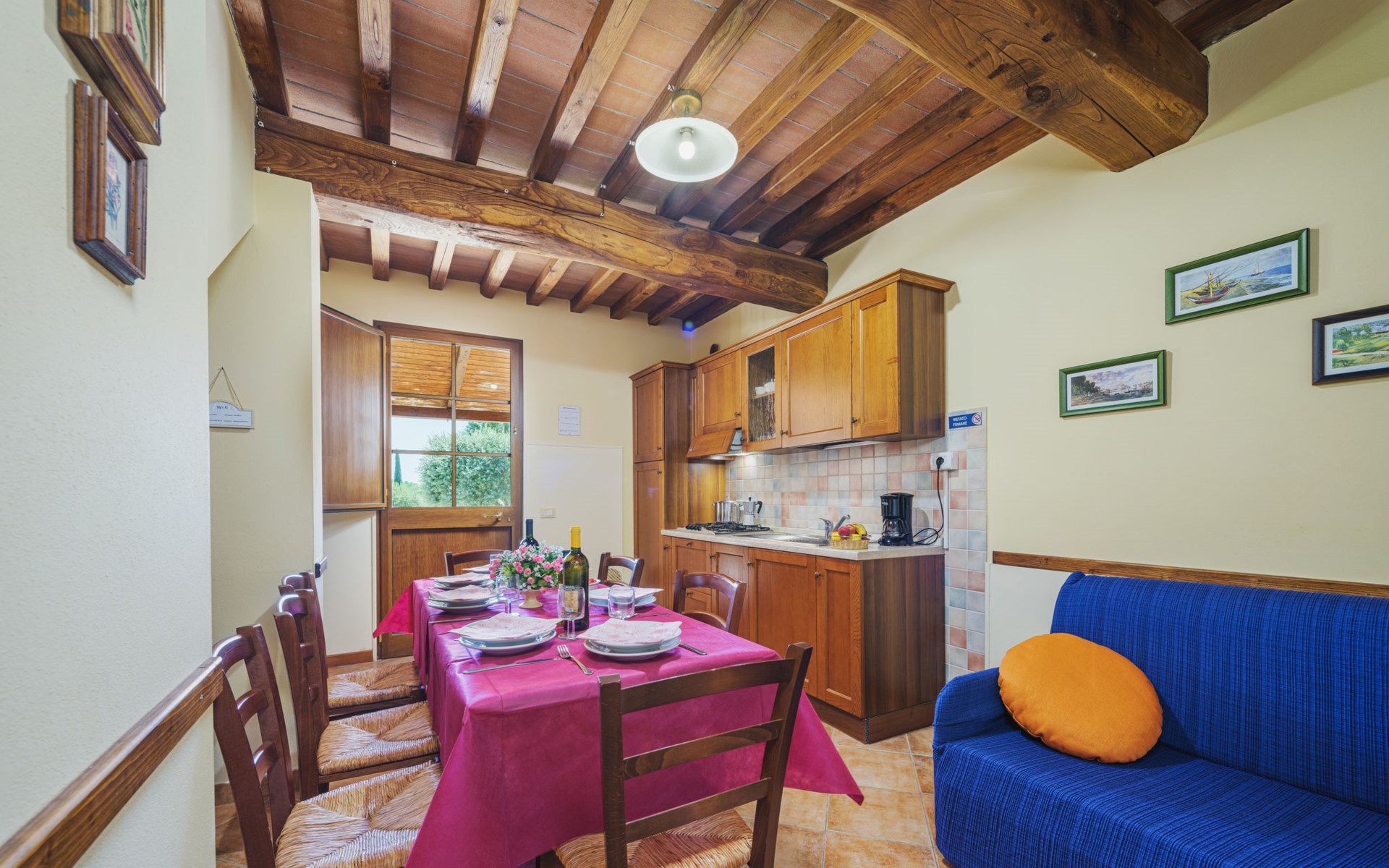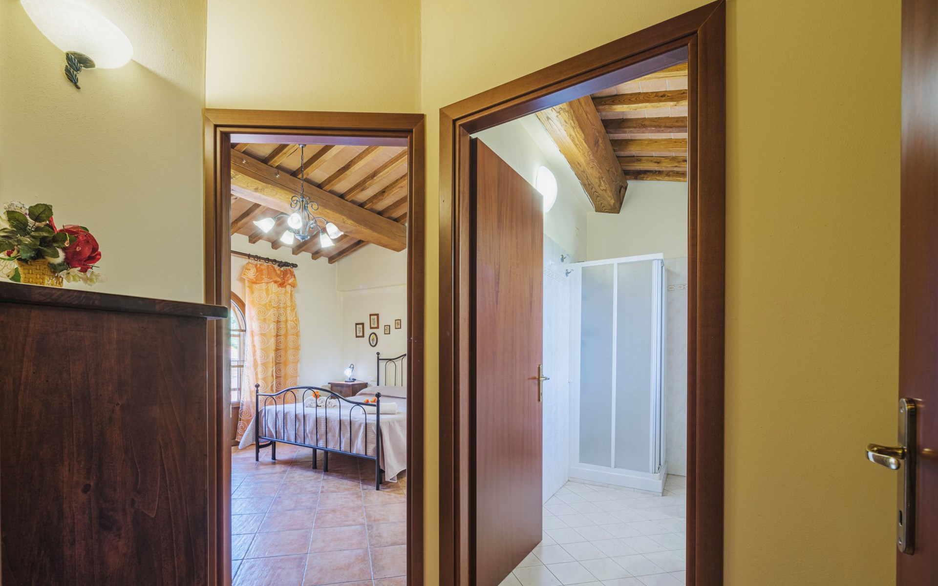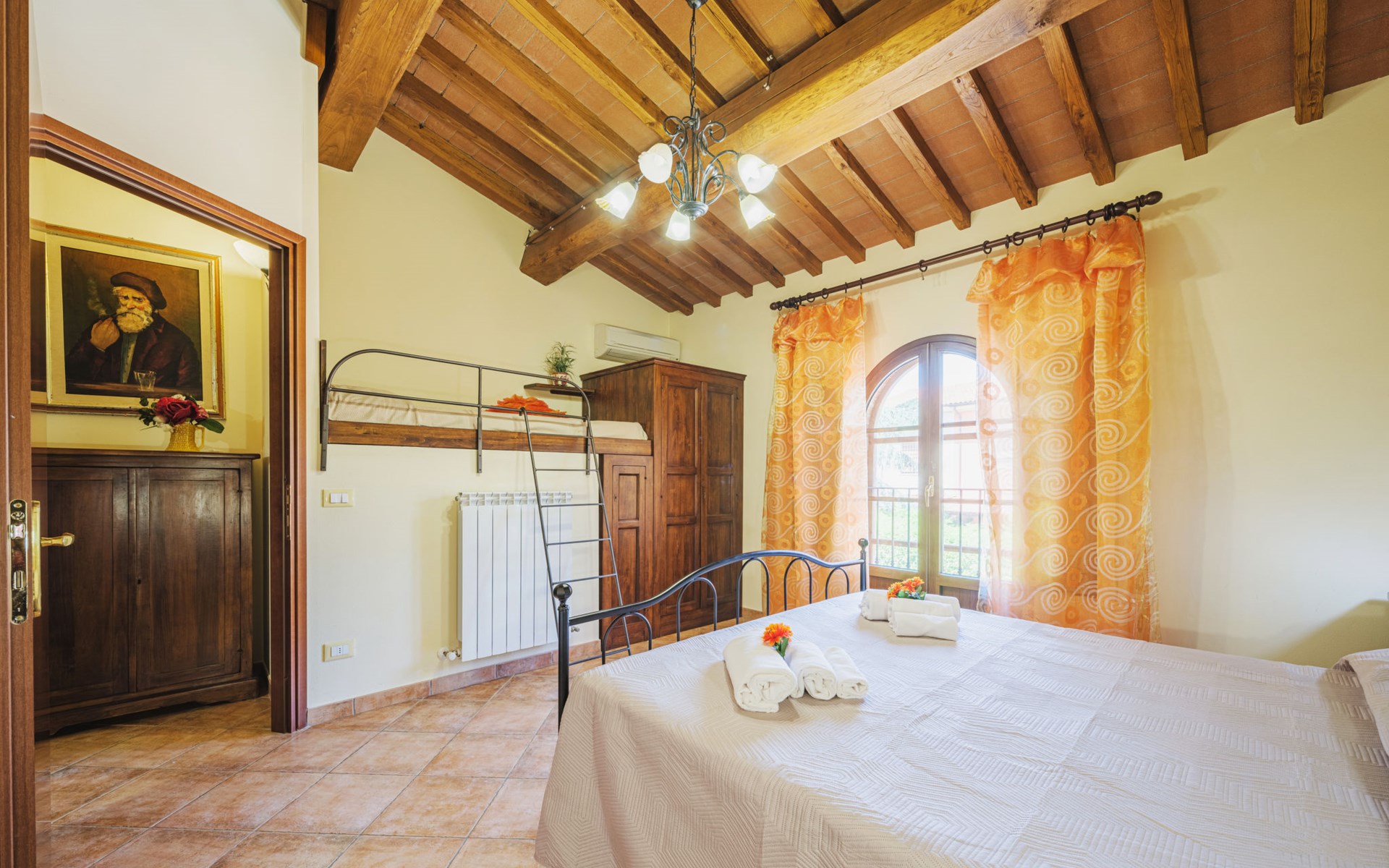 Agriturismo "Ponziani". 10 apartments in the residence. 1.3 km from the centre of Orentano, 25 km from the centre of Lucca, 33 km from the centre of Pisa, 45 km from the sea, 45 km from the beach, in the countryside. For shared use: property 5'000 m2 (fenced) with lawn and trees, swimming pool (12 x 6 m, depth 140 cm, seasonal availability: 15.Apr. - 07.Oct.). WC in the pool area, slide, outdoor shower, arbour, barbecue, children's playground. In the house: washing machine (for shared use). Parking on the premises. Shop 1.3 km, supermarket 5.5 km, bus stop 1 km, sandy beach "Viareggio" 45 km. Nearby attractions: Collodi Pinocchio Park 19 km, Montecatini Terme 21 km, San Giuliano Terme 30 km, Firenze 78 km, Zoo di Pistoia 36 km, Riomaggiore (5 Terre) 114 km. Well-known lakes can easily be reached: Lago Gherardesca 11 km, Torre del Lago 50 km, Lago di Massaciuccoli 49 km. Please note: car recommended. Local sale of farm products. The owner lives on the same property.