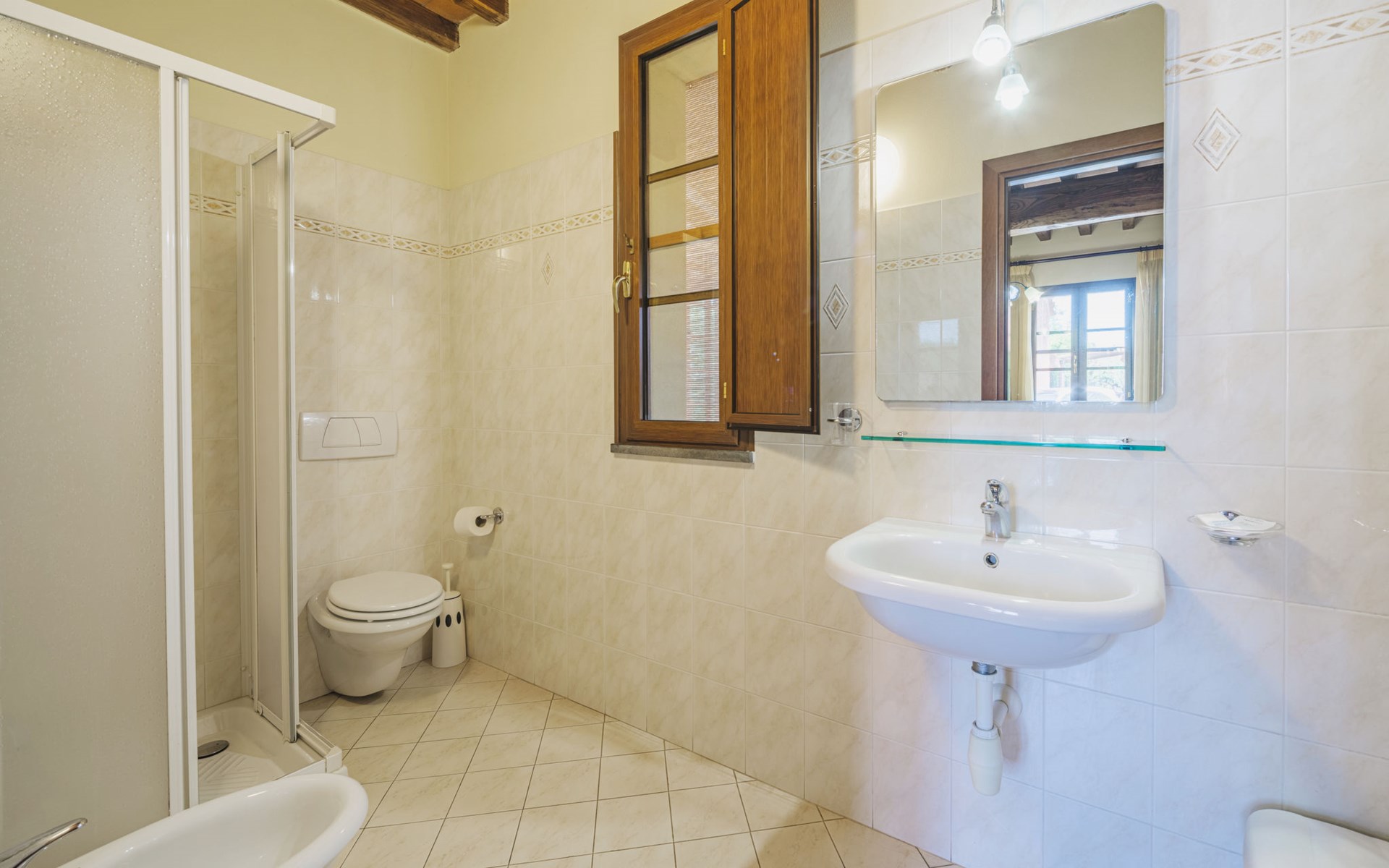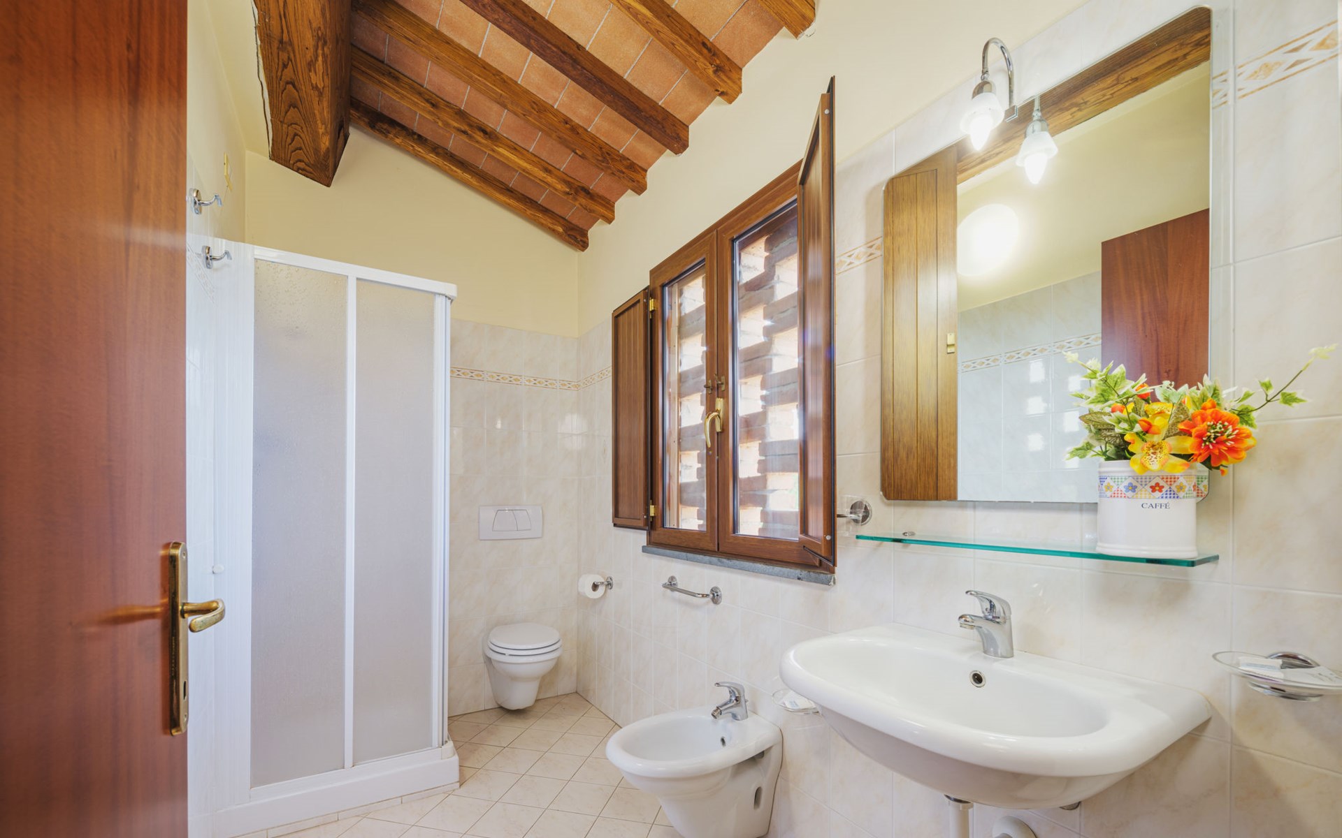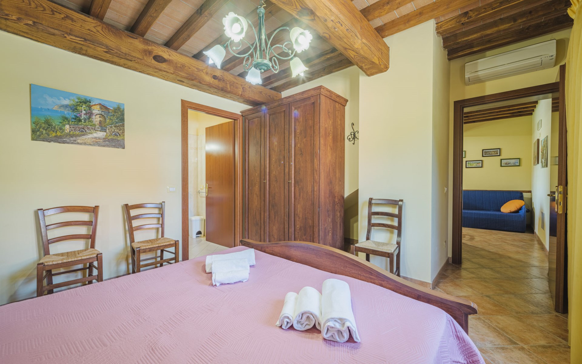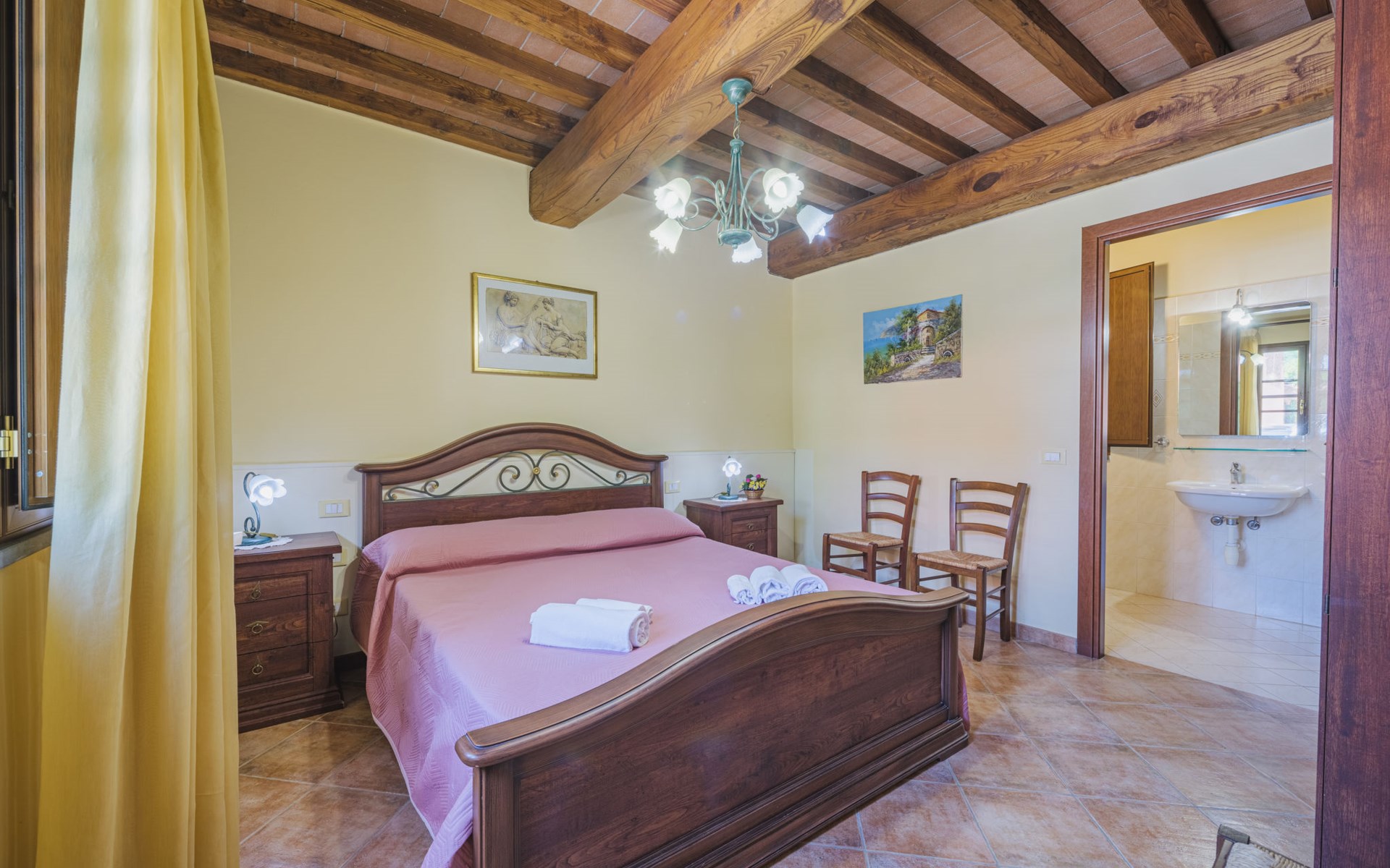 Agriturismo "Ponziani". 10 apartments in the residence. 1.3 km from the centre of Orentano, 25 km from the centre of Lucca, 33 km from the centre of Pisa, 45 km from the sea, 45 km from the beach, in the countryside. For shared use: property 5'000 m2 (fenced) with lawn and trees, swimming pool (12 x 6 m, depth 140 cm, seasonal availability: 15.Apr. - 07.Oct.). WC in the pool area, slide, outdoor shower, arbour, barbecue, children's playground. In the house: washing machine (for shared use). Parking on the premises. Shop 1.3 km, supermarket 5.5 km, bus stop 1 km, sandy beach "Viareggio" 45 km. Nearby attractions: Collodi Pinocchio Park 19 km, Montecatini Terme 21 km, San Giuliano Terme 30 km, Firenze 78 km, Zoo di Pistoia 36 km, Riomaggiore (5 Terre) 114 km. Well-known lakes can easily be reached: Lago Gherardesca 11 km, Torre del Lago 50 km, Lago di Massaciuccoli 49 km. Please note: car recommended. Local sale of farm products. The owner lives on the same property.