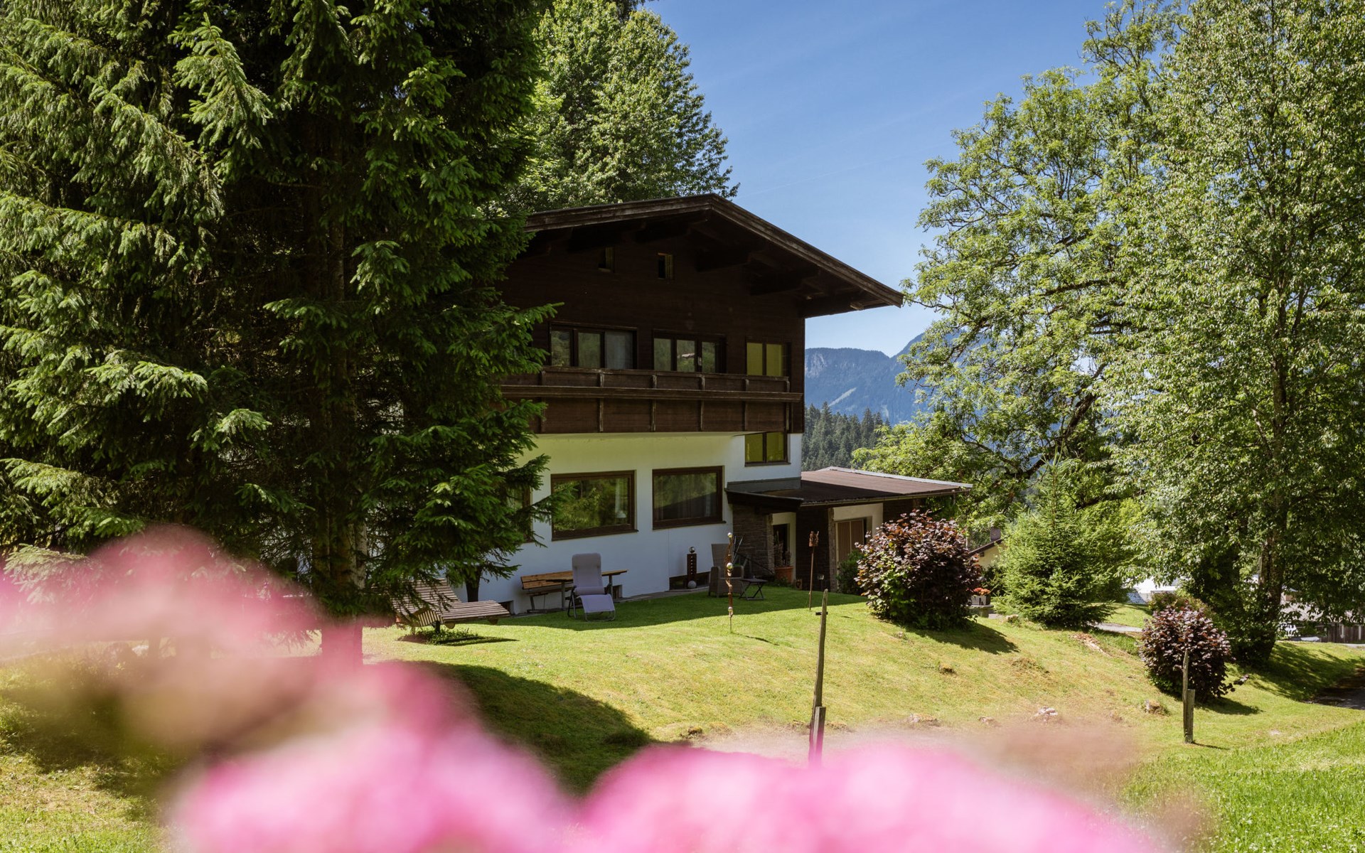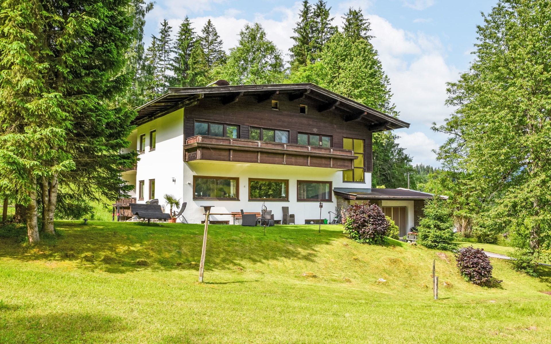 Ellmau: Apartment block "Esche", detached. 5 apartments in the property. 2.5 km from the centre of Ellmau, in a quiet position on a slope, 2.5 km from the skiing area. For shared use: lawn for sunbathing, beautiful garden to relax. Terrace (30 m2), garden furniture, barbecue. In the complex: lounge, central heating system. Parking (for 4 cars) at the house. Supermarket 1.9 km, restaurant 350 m, bakery 1 km, bus stop "Ellmau/Auwald" 550 m, railway station "Kitzbühel" 17 km, outdoor swimming pool 1.9 km, indoor swimming pool 1.9 km. Golf course (18 hole) 2.4 km, skisport facilities 2.5 km, ski rental 2.5 km, ski bus stop 550 m. Nearby attractions: Kitzbühel Zentrum 16 km, Bergdoktorhaus 3.3 km, Schleier Wasserfall 10.7 km, Casino Kitzbühel 16 km. Well-known ski regions can easily be reached: SkiWelt Wilder Kaiser 2.5 km, Kitzbühel 16 km. Well-known lakes can easily be reached: Schwarzsee Kitzbühel 16 km, Hintersteinersee 6.7 km. Hiking paths: wandern und radfahren ab Haus möglich, Radwege in unmittelbarer Nähe, Hexenwasser Söll 12.4 km. Please note: ski bus (free of charge).