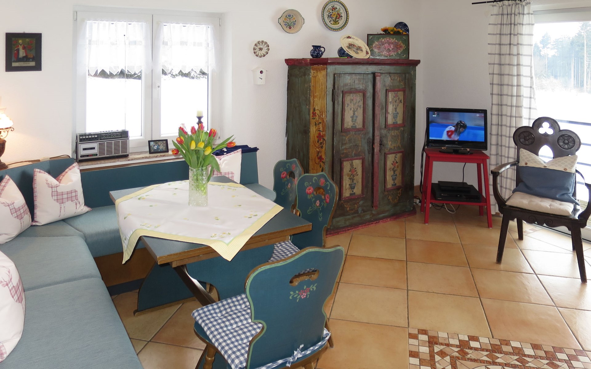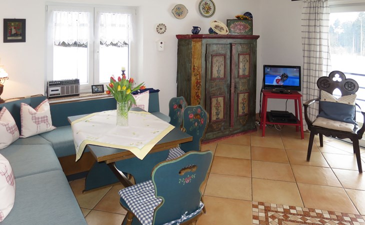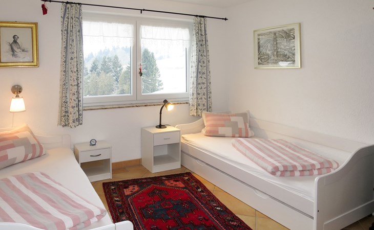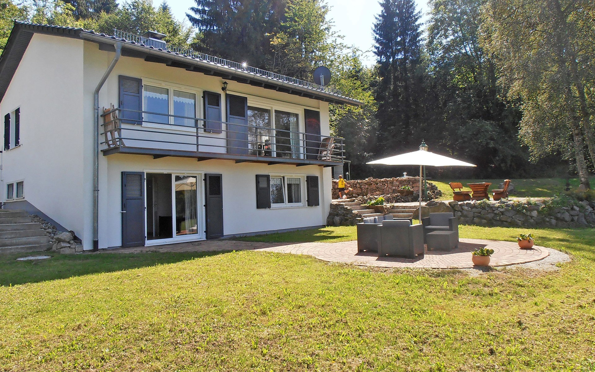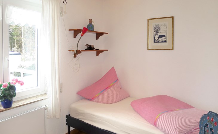 House "Schuler", 720 m a.s.l.. 2 km from the centre of Freiamt-Brettental, 18 km from the centre of Emmendingen, 33 km from the centre of Freiburg im Breisgau, in a quiet, sunny position on a slope, in the countryside. Private: property 2'000 m2 with trees, meadow. Table tennis. 200 m long bumpy, narrow motor access. Parking on the premises. Shop 8 km.