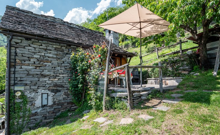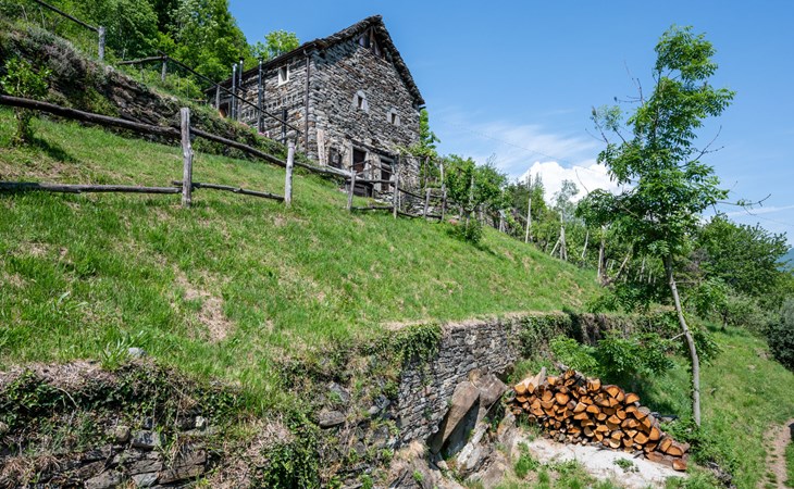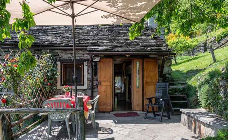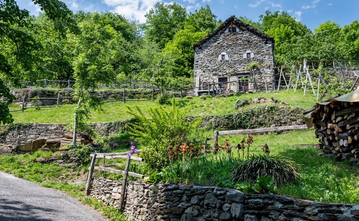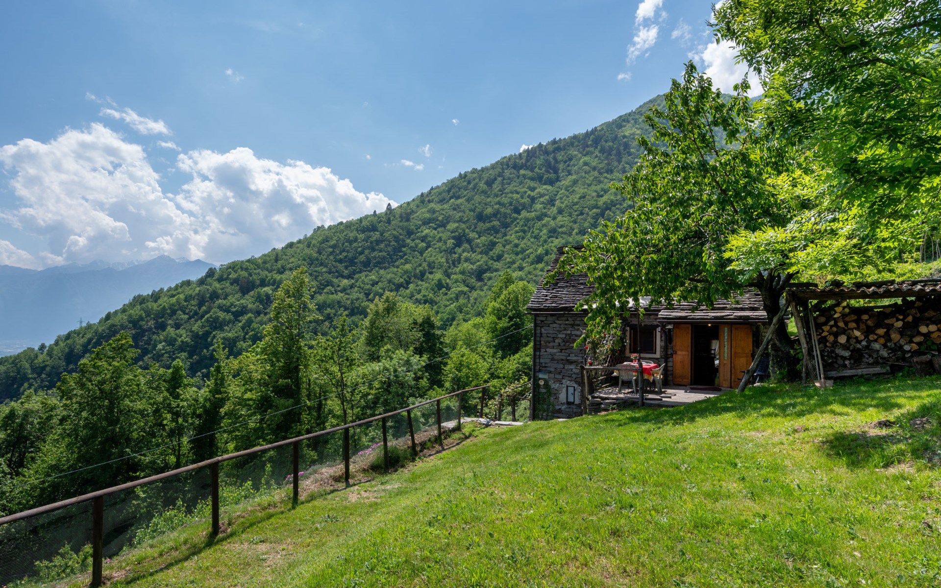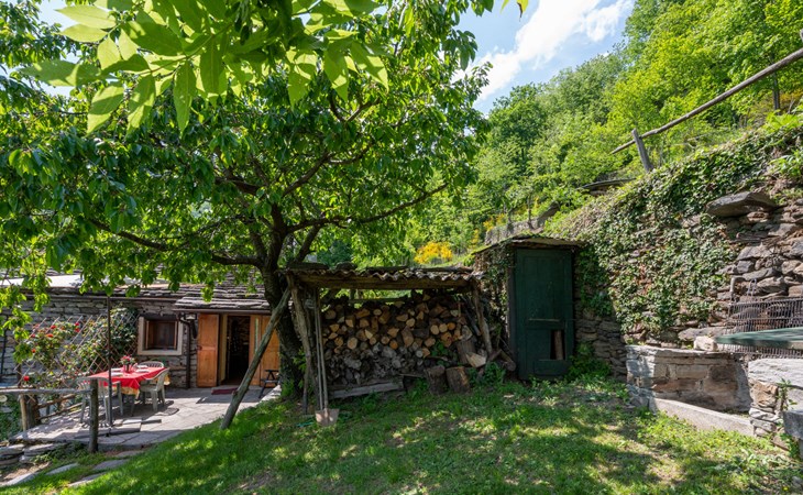 Rustic rustic chalet "Baita Degli Orsi", 550 m a.s.l., from the 16th century. In the hamlet Anunzo 6 km from the centre of Domodossola, 45 km from the centre of Intra/Verbania, 47 km from the centre of Locarno, on a slope, 45 km from the lake. For shared use: natural state property 3'000 m2, garden (not fenced) plants and trees, meadow, orchard. Private: natural state property 225 m2, terraced garden (not fenced), meadow. 150 m long bumpy, narrow motor access to the house (via unmade road). (8 steps). Public parking 80 m. Grocery 3 km, supermarket 6 km, bus stop 6 km, railway station "Domodossola" 6 km, pebble beach 47 km, indoor swimming pool 9 km. Nearby attractions: Domobianca 3 km. Part of the house is closed and unoccupied.