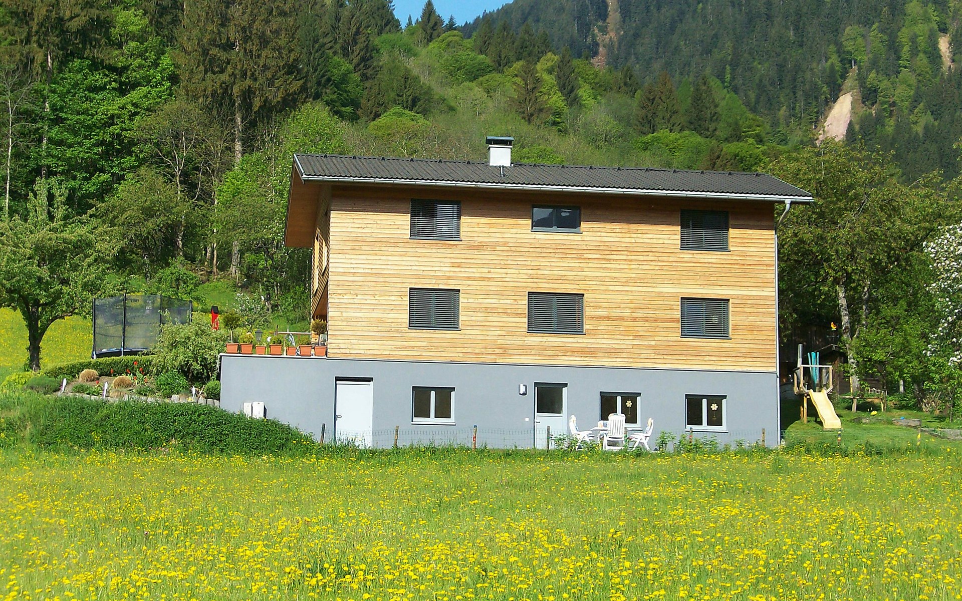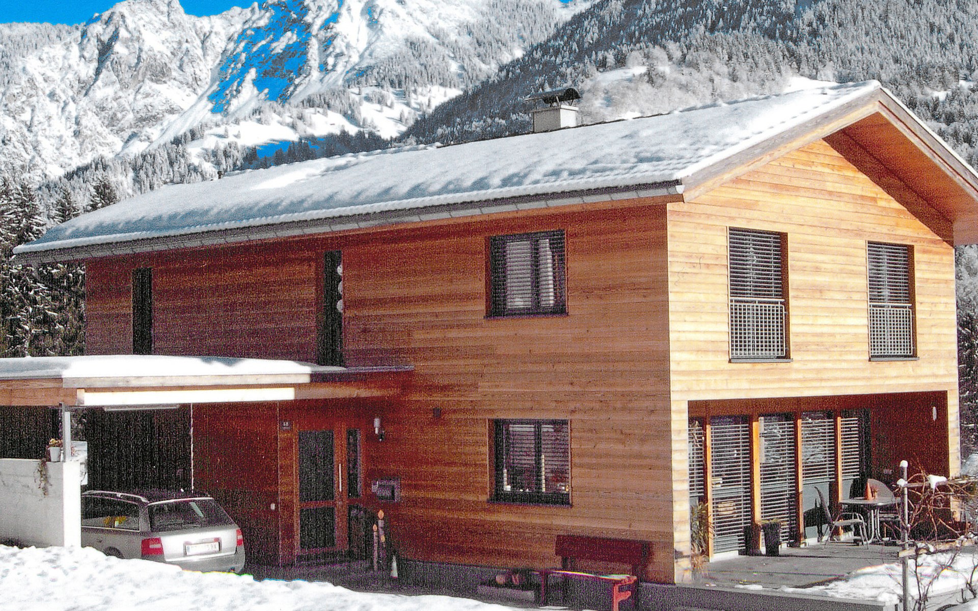 Vandans: Comfortable 2-family house "Corinna", surrounded by trees and meadows. Above Vandans, in a quiet position on a slope, 800 m from the skiing area. For shared use: garden, lawn for sunbathing. Barbecue. In the house: storage room for bicycles, central heating system. Motor access to the house. 10 m footpath to the house. Parking at the house. Grocery 1.2 km, restaurant, bus stop 800 m, outdoor swimming pool 1 km. Tennis 1 km, walking paths from the house 50 m, gondola lift, ski school, sled run, children's playground 800 m. Please note: the owner lives in the same residence. This apartment is a partner in the Montafon Bergeplus program.