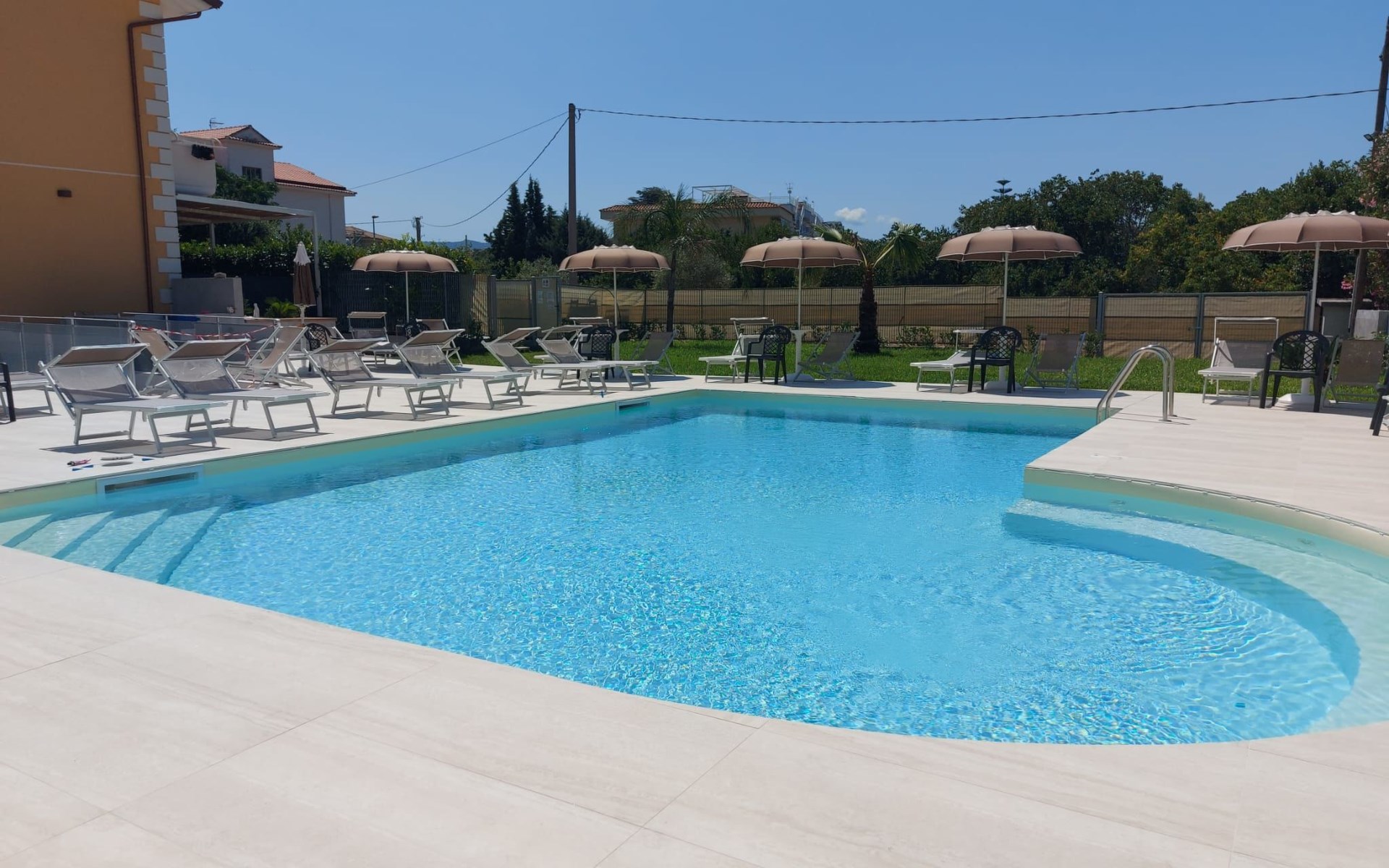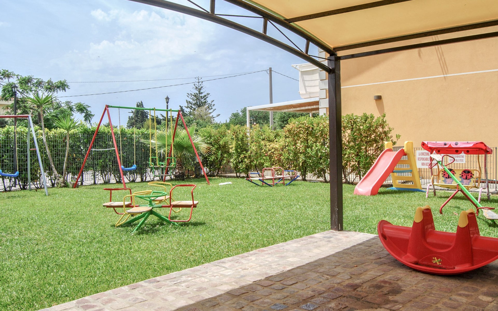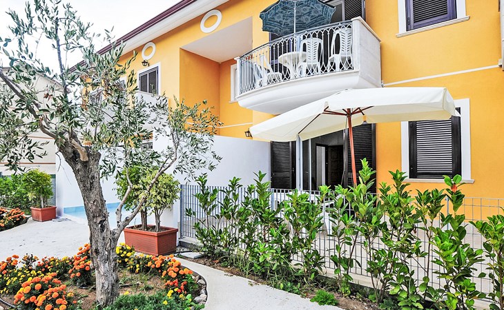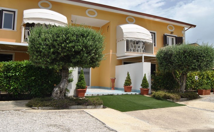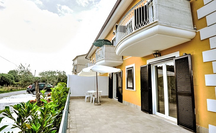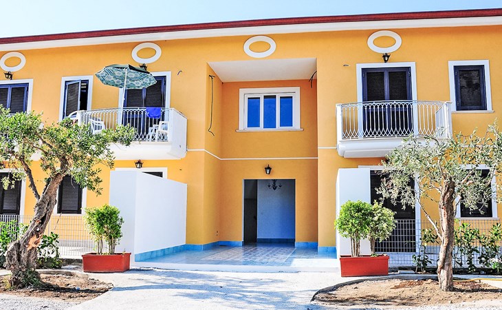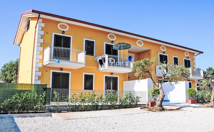 Paestum: Residence "Casale Cilento", 2 storeys, surrounded by trees. 8 apartments in the property. 300 m from the sea, 300 m from the beach. For shared use: garden, swimming pool (5 x 10 m, seasonal availability: 13.Jun. - 12.Sep. pool opening hours: 09:00-13:00 and 16:00-19:00). Garden furniture, children's playground. In the complex: washing machine, tumble dryer (for shared use, extra), heating to be paid on the spot (01.Nov. - 31.Mar.), heating available only from 01.Nov. - 31.Mar., bicycle rental. Airport transfer (extra). Parking. Shop, grocery, supermarket, restaurant 500 m, bar 300 m, bus stop 400 m, railway station "Paestum" 3 km, ferry "Salerno (Amalfi Cruise Terminal)" 39 km, sandy beach 300 m. Nearby attractions: Paestum Parco Archeologico 2 km, Agropoli 7 km, Santa Maria di Castellabate 21 km. Please note: no lift. On request: airport transfer to the holiday accommodation.