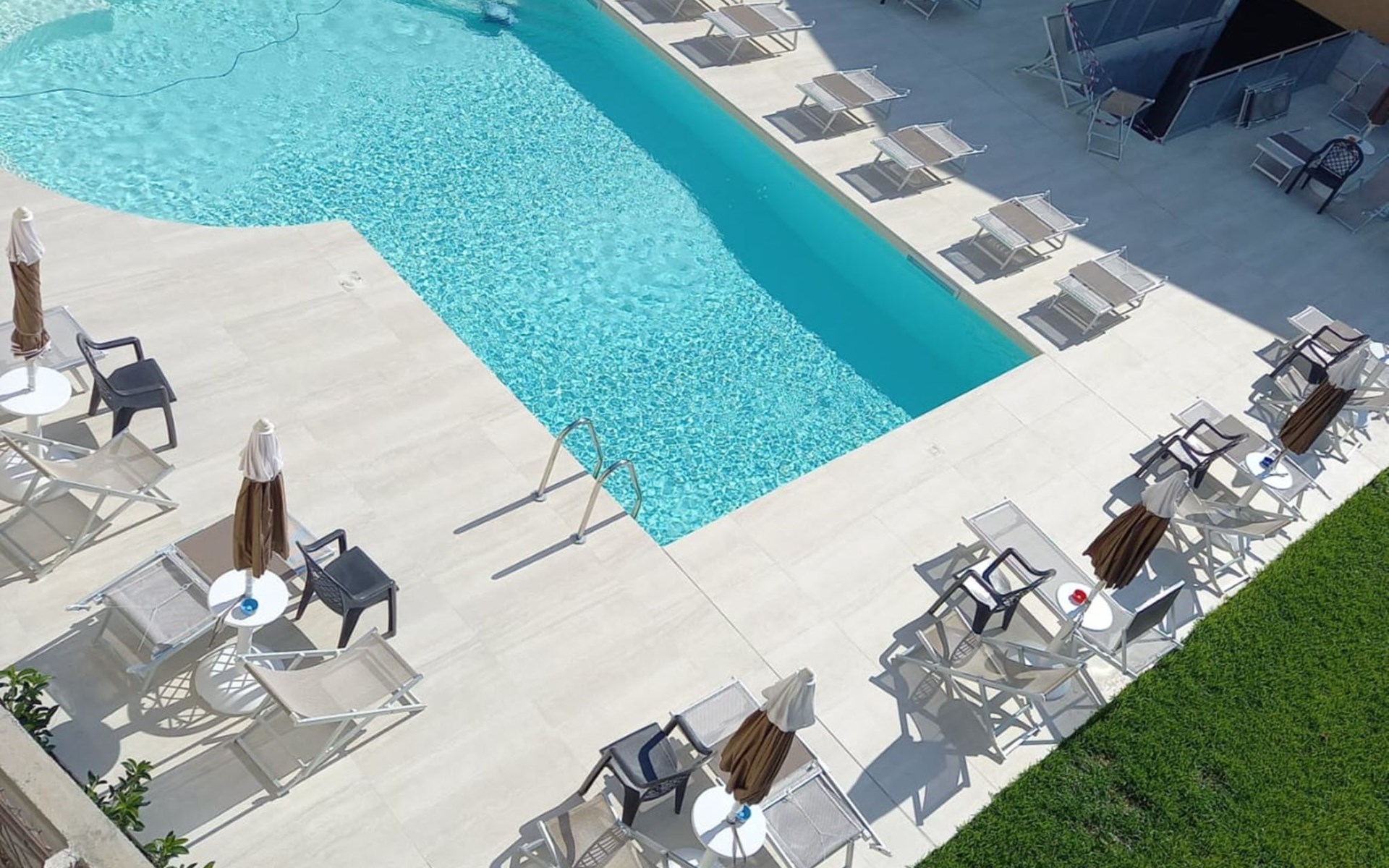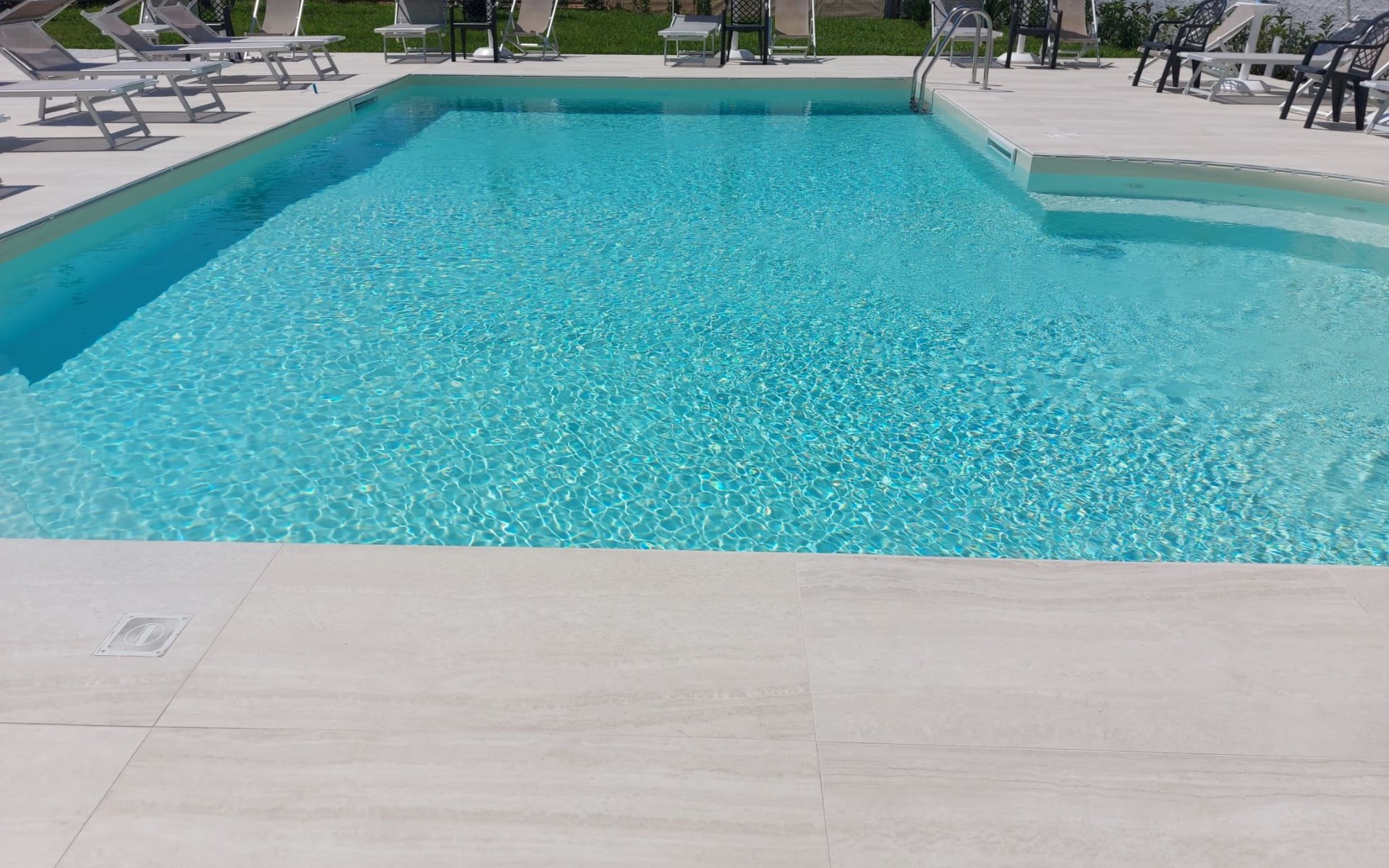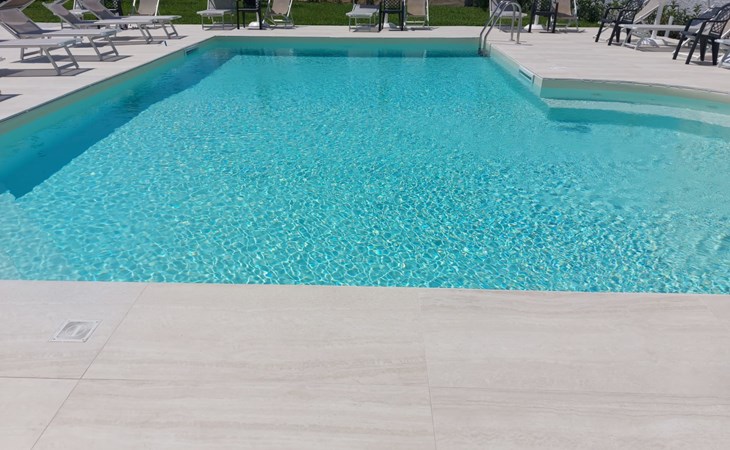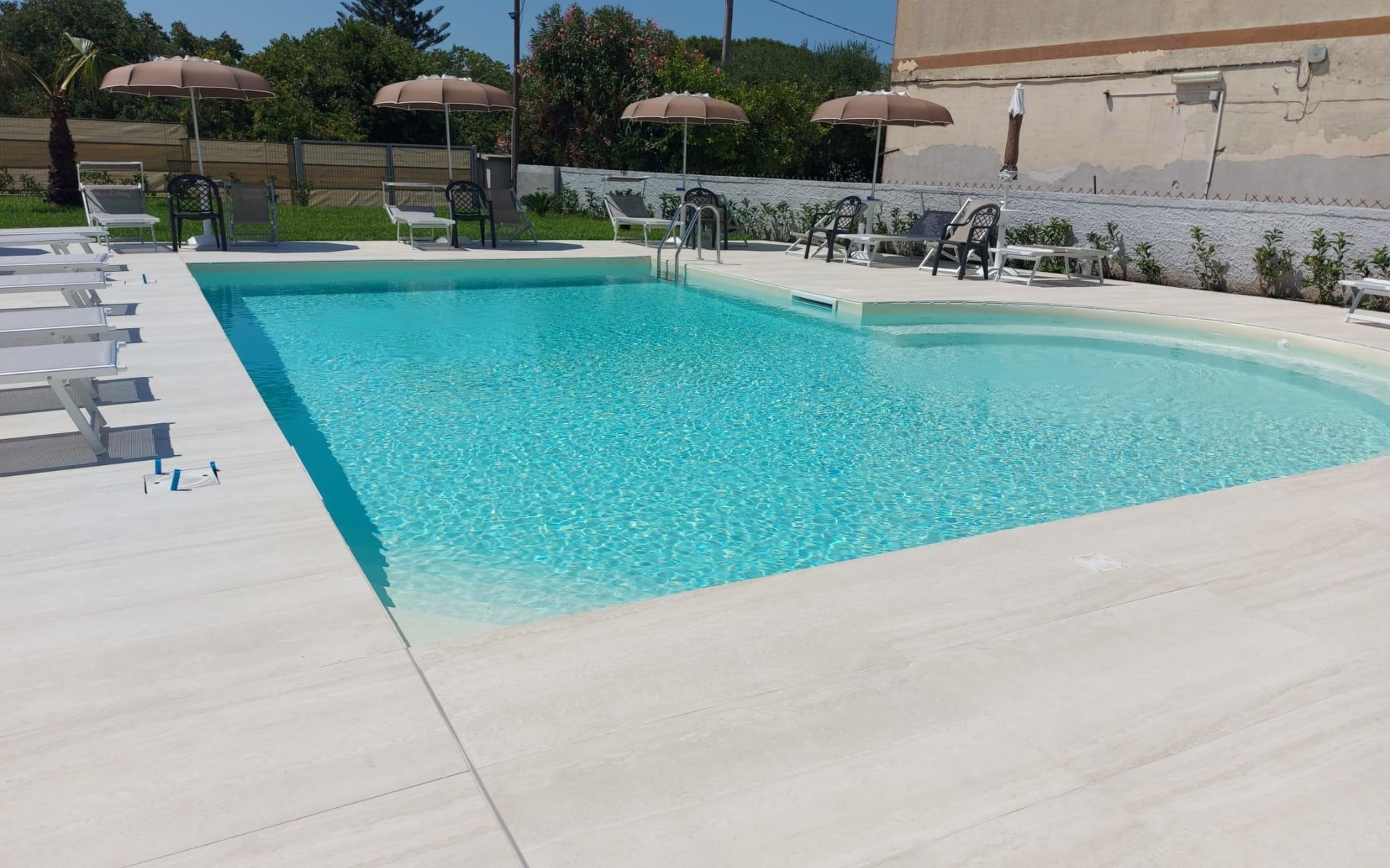 Paestum: Residence "Casale Cilento", 2 storeys, surrounded by trees. 8 apartments in the property. 300 m from the sea, 300 m from the beach. For shared use: garden, swimming pool (5 x 10 m, seasonal availability: 13.Jun. - 12.Sep. pool opening hours: 09:00-13:00 and 16:00-19:00). Garden furniture, children's playground. In the complex: washing machine, tumble dryer (for shared use, extra), heating to be paid on the spot (01.Nov. - 31.Mar.), heating available only from 01.Nov. - 31.Mar., bicycle rental. Airport transfer (extra). Parking. Shop, grocery, supermarket, restaurant 500 m, bar 300 m, bus stop 400 m, railway station "Paestum" 3 km, ferry "Salerno (Amalfi Cruise Terminal)" 39 km, sandy beach 300 m. Nearby attractions: Paestum Parco Archeologico 2 km, Agropoli 7 km, Santa Maria di Castellabate 21 km. Please note: no lift. On request: airport transfer to the holiday accommodation.