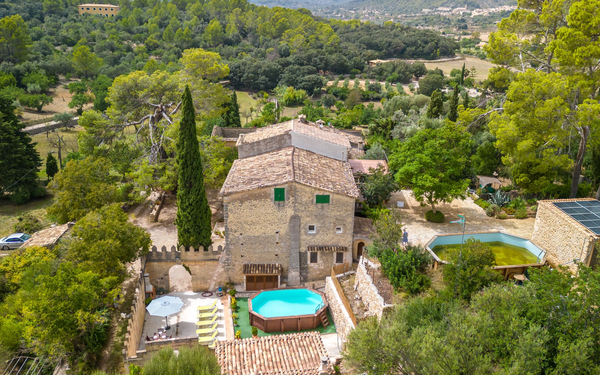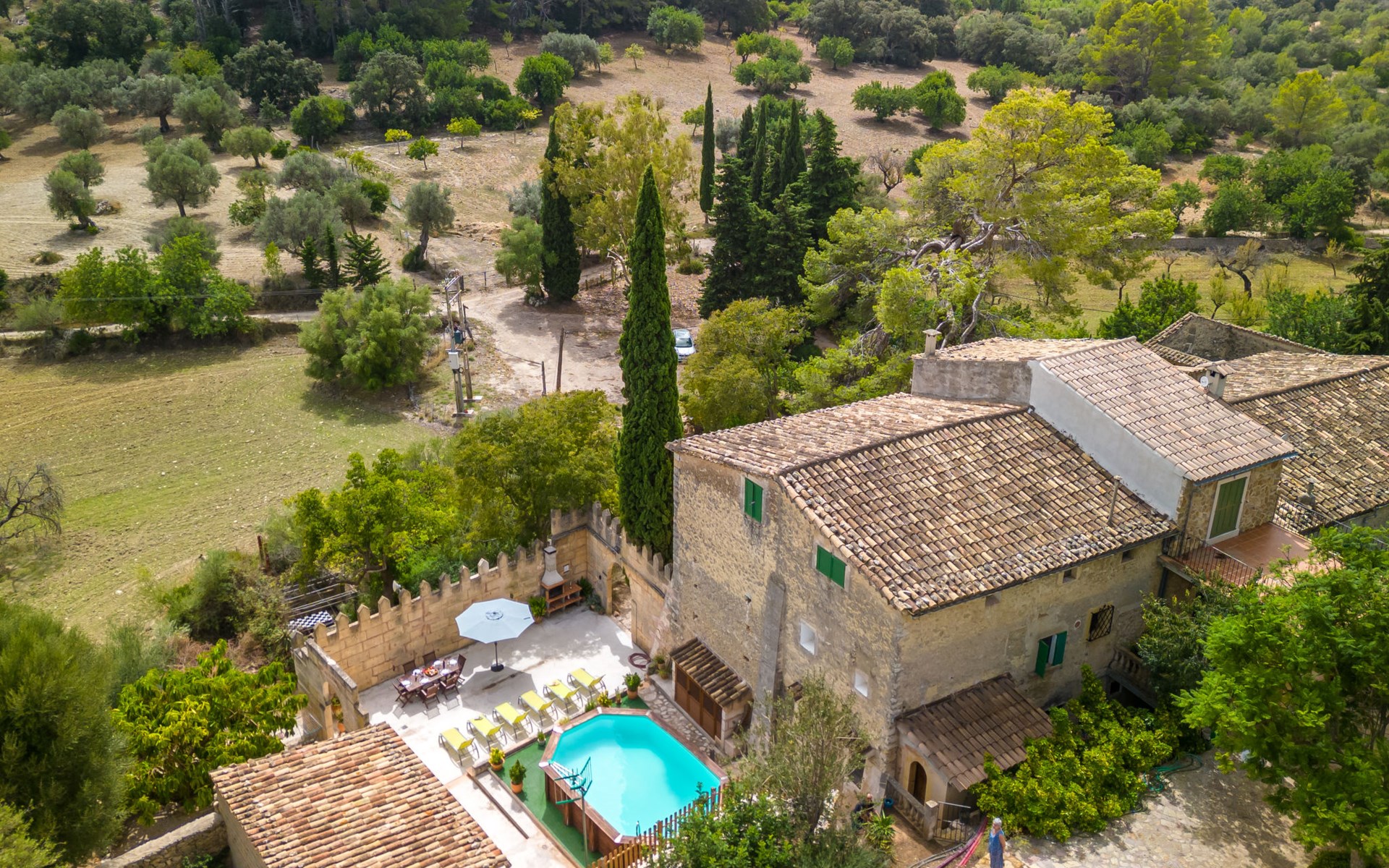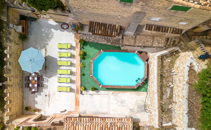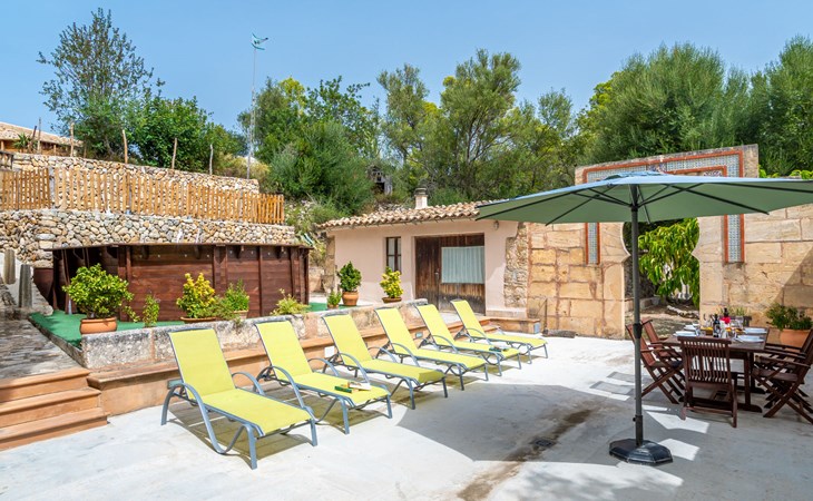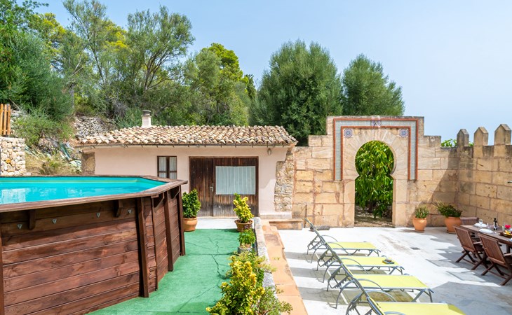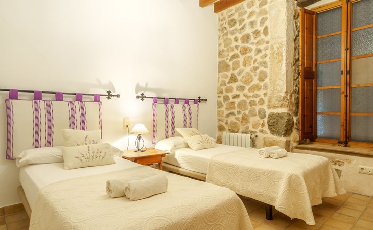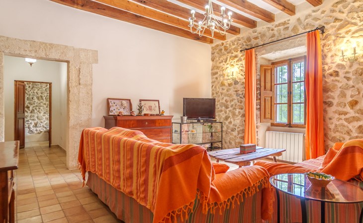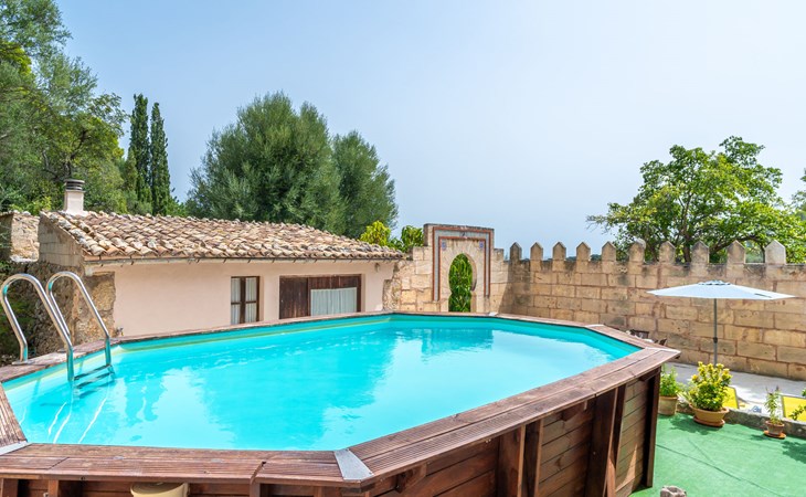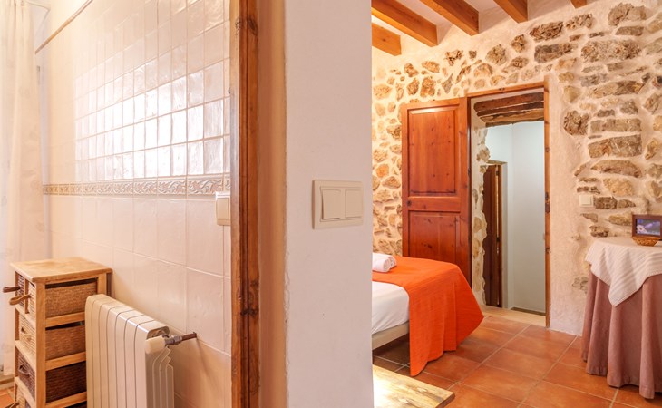 Beautiful, cosy apartment block "Sa Bisbal", renovated, surrounded by trees and fields. Outside the resort, 1.5 km from the centre of Moscari, in a quiet, sunny position, 24 km from the sea, in the countryside. Private: swimming pool (above ground) (6 x 4 m, depth 150 - 150 cm, seasonal availability: 01.Apr. - 25.Nov.). Patio, garden furniture, barbecue, pool maintenance by the owner/gardener. In the house: central heating system, heating to be paid on the spot. 700 m long bumpy, narrow motor access (mountain road). Parking at the house on the premises. Grocery 1.6 km, supermarket 7 km, restaurant 3.8 km, bar 1.5 km, bicycle rental 3.8 km, 21 minute walk to the centre, bus stop 1.6 km, sandy beach "Port d'Alcúdia" 23.4 km. Sports harbour 25 km, golf course (18 hole) 19 km, walking paths from the house 500 m, cycle lane. Nearby attractions: Moscari,Caimari,Selva,Campanet,Pollença, Ciudad de Inca 8 km, Santuari de Lluc 15 km, Port de Pollença 30 km, Palma City 42 km, Mallorca Fashion Outlet & Cinemas 28 km. Hiking paths: Serra de Tramuntana, Santa Magdalena Inca, Puig de Maria Pollença. Please note: car recommended. Object suitable for 6 adults. The owner does not accept any youth groups. Animals in the neighbourhood. Airfield 43 km from the property. Neighbourhood highly sensitive to noise. Quietness and good behaviour expected.