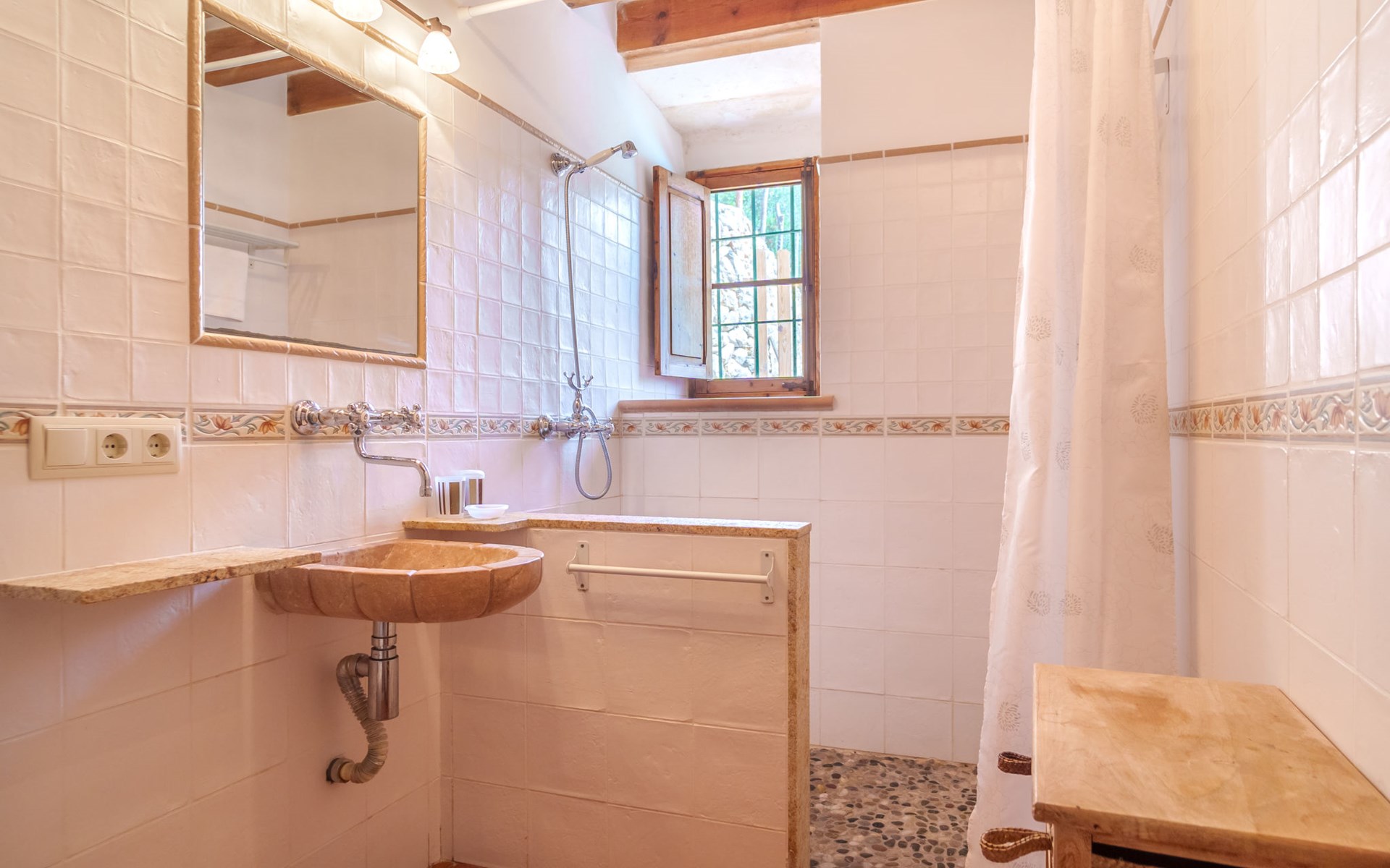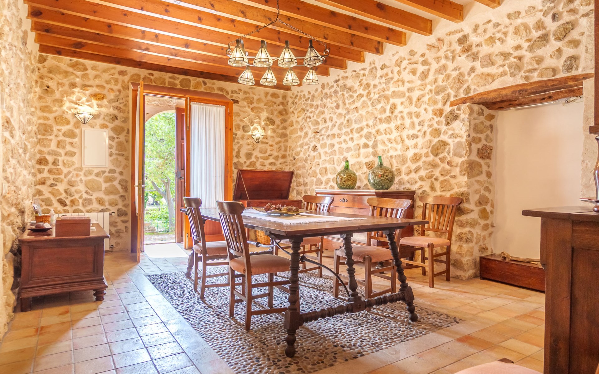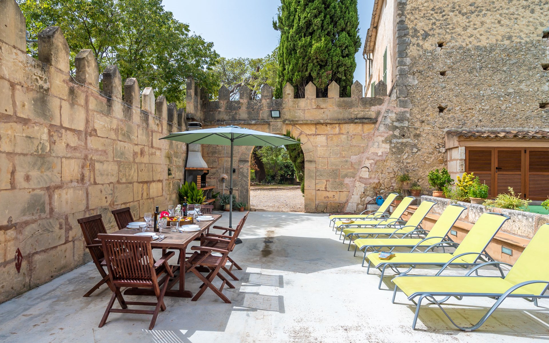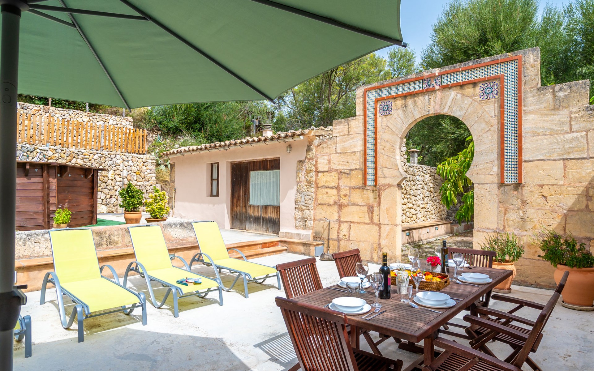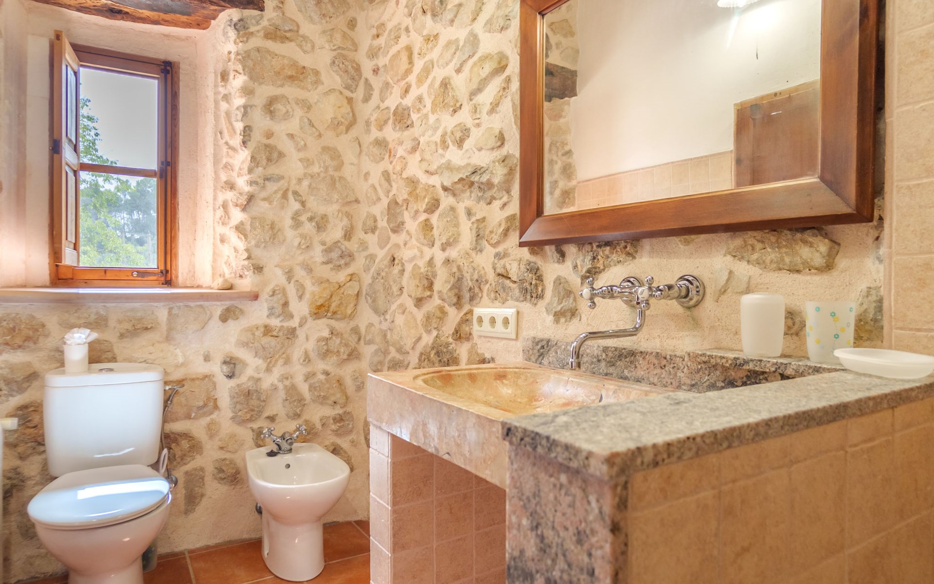Beautiful, cosy apartment block "Sa Bisbal", renovated, surrounded by trees and fields. Outside the resort, 1.5 km from the centre of Moscari, in a quiet, sunny position, 24 km from the sea, in the countryside. Private: swimming pool (above ground) (6 x 4 m, depth 150 - 150 cm, seasonal availability: 01.Apr. - 25.Nov.). Patio, garden furniture, barbecue, pool maintenance by the owner/gardener. In the house: central heating system, heating to be paid on the spot. 700 m long bumpy, narrow motor access (mountain road). Parking at the house on the premises. Grocery 1.6 km, supermarket 7 km, restaurant 3.8 km, bar 1.5 km, bicycle rental 3.8 km, 21 minute walk to the centre, bus stop 1.6 km, sandy beach "Port d'Alcúdia" 23.4 km. Sports harbour 25 km, golf course (18 hole) 19 km, walking paths from the house 500 m, cycle lane. Nearby attractions: Moscari,Caimari,Selva,Campanet,Pollença, Ciudad de Inca 8 km, Santuari de Lluc 15 km, Port de Pollença 30 km, Palma City 42 km, Mallorca Fashion Outlet & Cinemas 28 km. Hiking paths: Serra de Tramuntana, Santa Magdalena Inca, Puig de Maria Pollença. Please note: car recommended. Object suitable for 6 adults. The owner does not accept any youth groups. Animals in the neighbourhood. Airfield 43 km from the property. Neighbourhood highly sensitive to noise. Quietness and good behaviour expected.