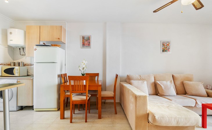 Residence "Residencia del Mar II". In a quiet, sunny position, 700 m from the sea, 700 m from the beach. For shared use: swimming pool (13 x 8 m, depth 150 - 200 cm, seasonal availability: 01.Jan. - 31.Dec. pool opening hours: 10:00-15:00 and 17:00-23:00). Outdoor shower, parking at the house. Supermarket 2 km, restaurant, bar, café 500 m, bus stop 900 m. Sports harbour 2.5 km, golf course (9 hole) 20 km. The owner does not accept any groups.