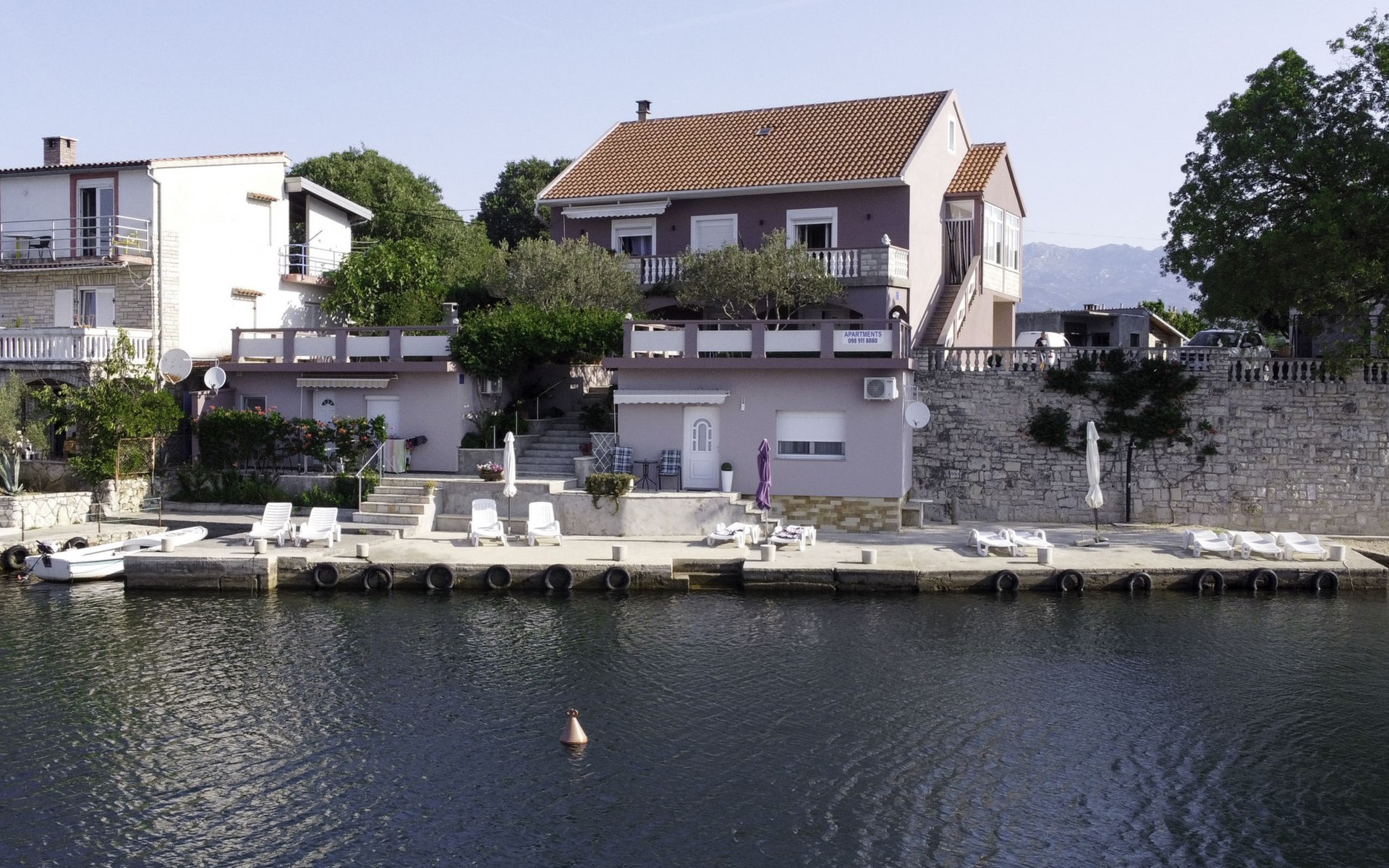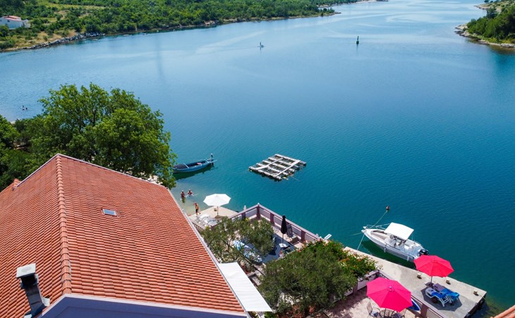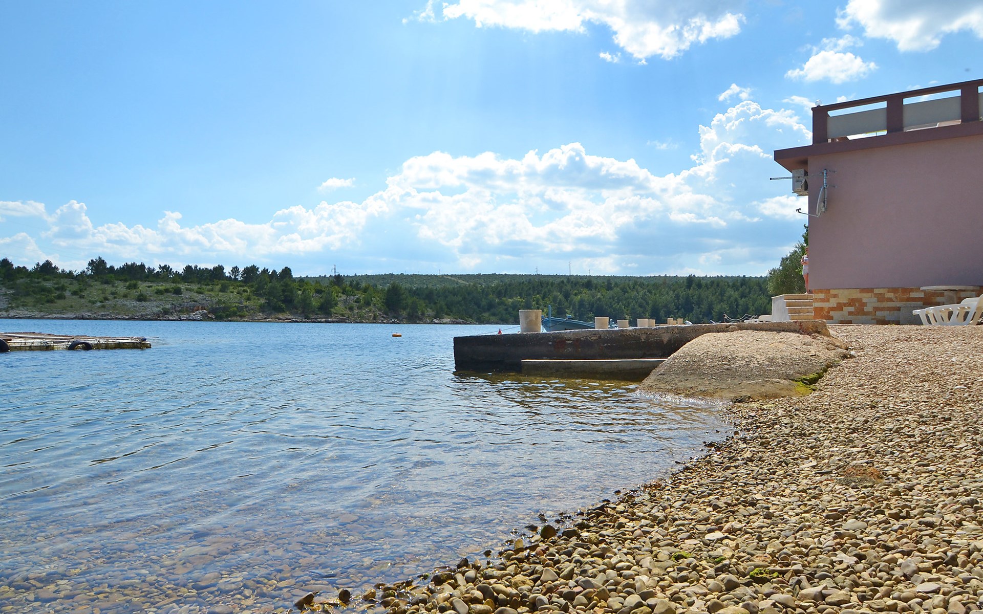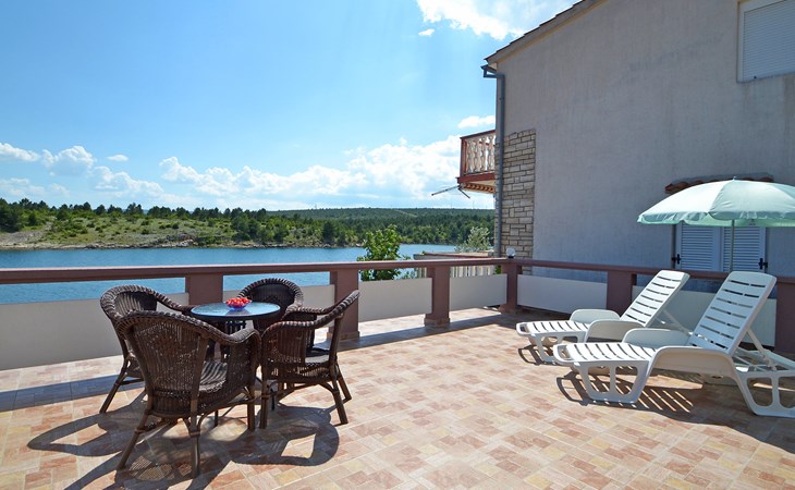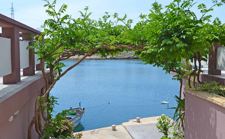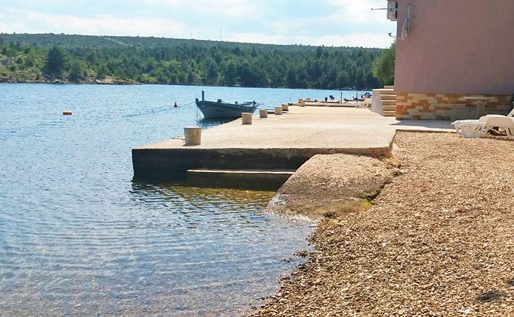 Ribnica 15 km from Novigrad: Apartment house "Ana". 7 km from the centre of Obrovac, in a quiet, sunny position, at the seaside, 20 m from the beach, direct access to the beach. For shared use: property 800 m2. Barbecue house. In the house: internet access, washing machine (for shared use). Parking at the house on the premises. Shop 200 m, restaurant 50 m, bus stop 25.3 km, concrete beach 20 m. Please note: private mooring (extra) on request. Property ref. HR4013.102 is situated on the same property.