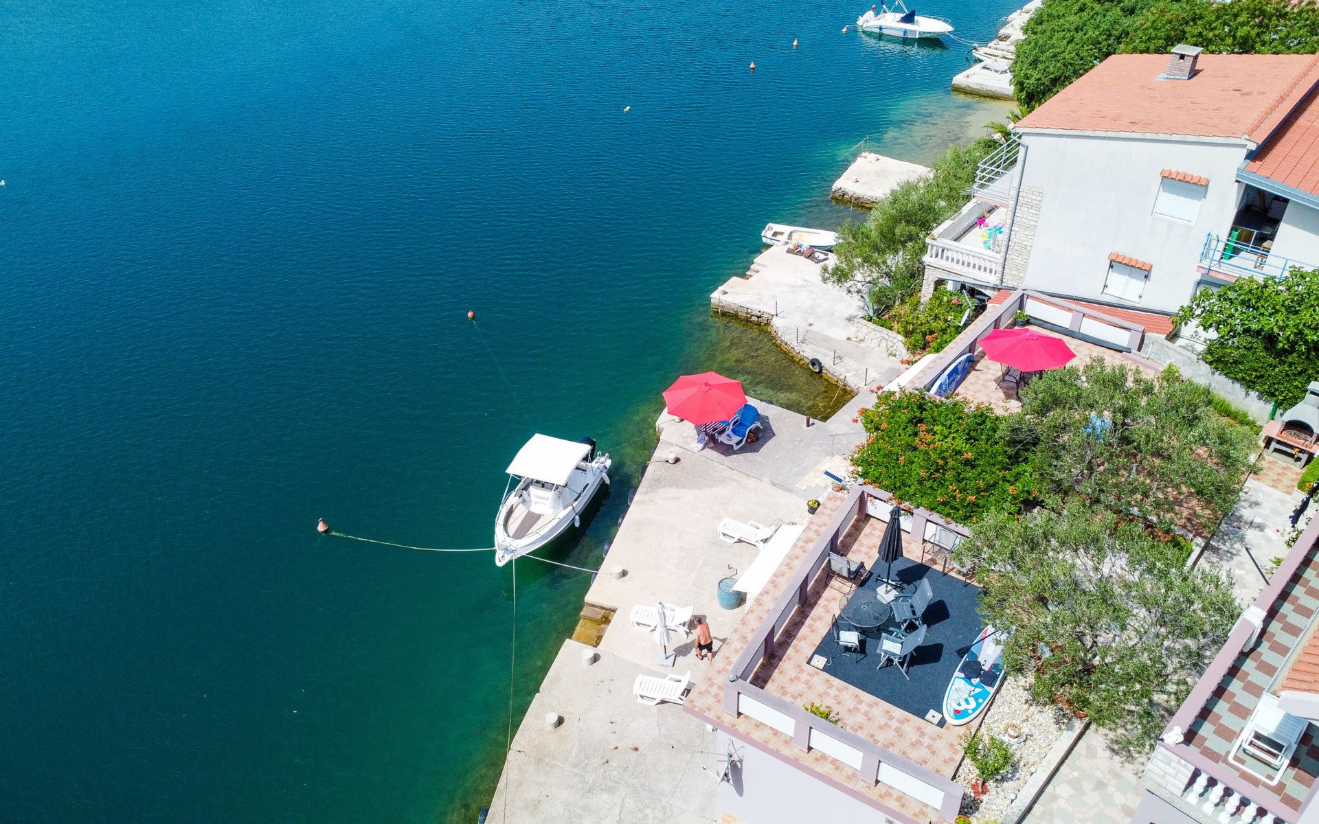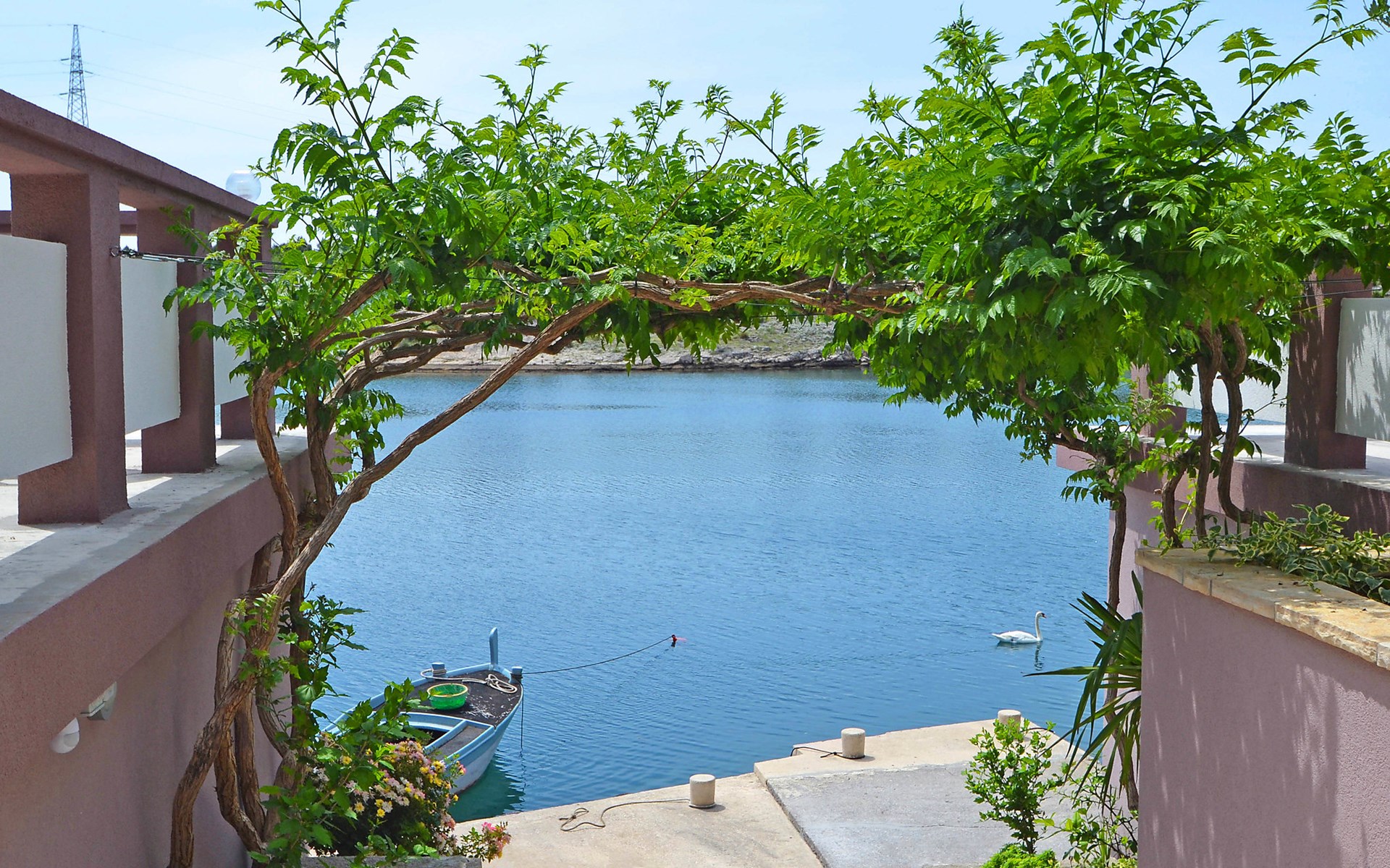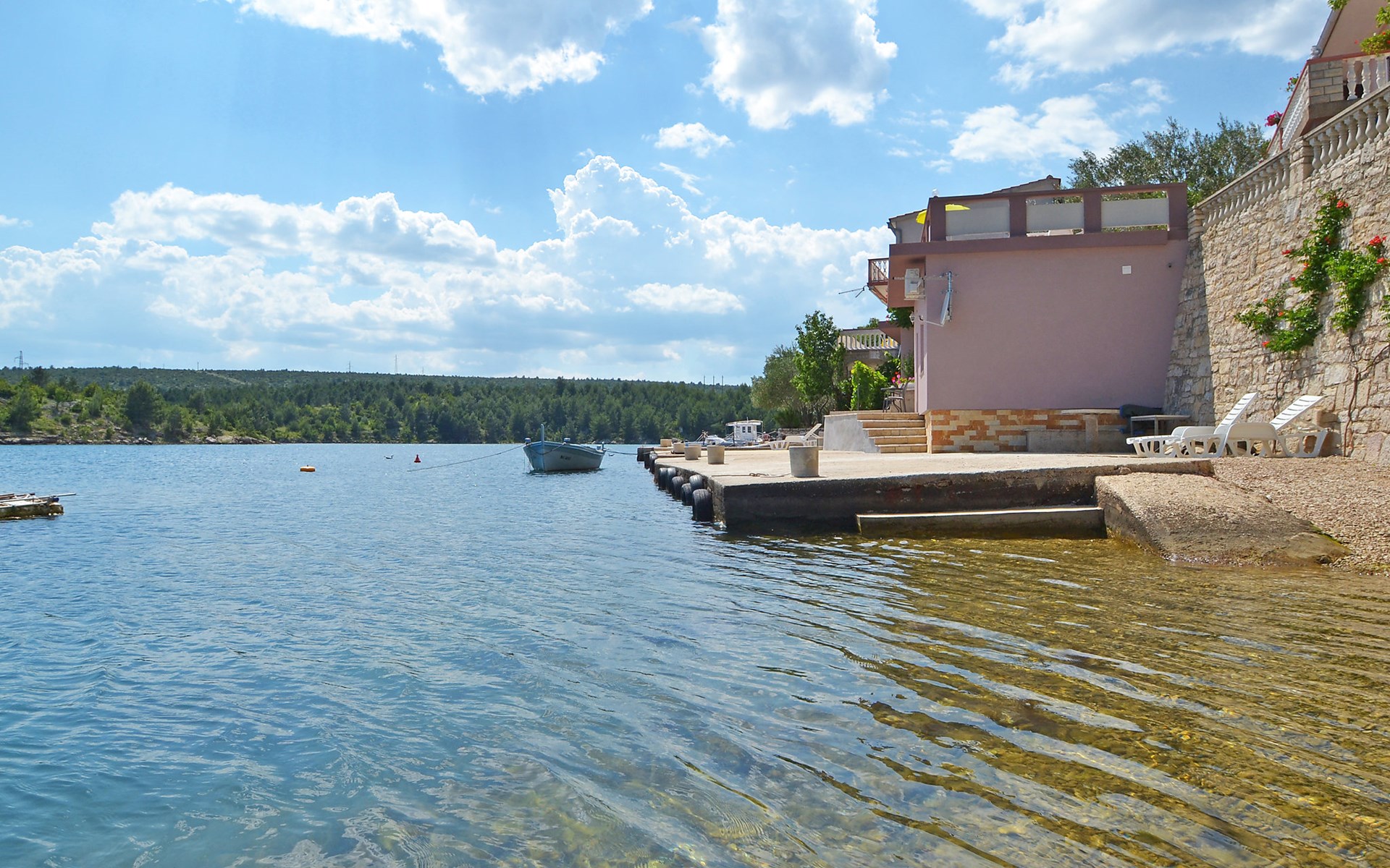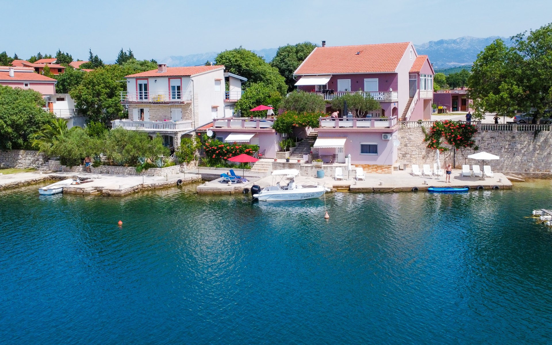 Ribnica 15 km from Novigrad: Apartment house "Ana". 7 km from the centre of Obrovac, in a quiet, sunny position, at the seaside, 20 m from the beach, direct access to the beach. For shared use: property 800 m2. Barbecue house. In the house: internet access, washing machine (for shared use). Parking at the house on the premises. Shop 200 m, restaurant 50 m, bus stop 25.3 km, concrete beach 20 m. Please note: private mooring (extra) on request. Property ref. HR4013.102 is situated on the same property.
