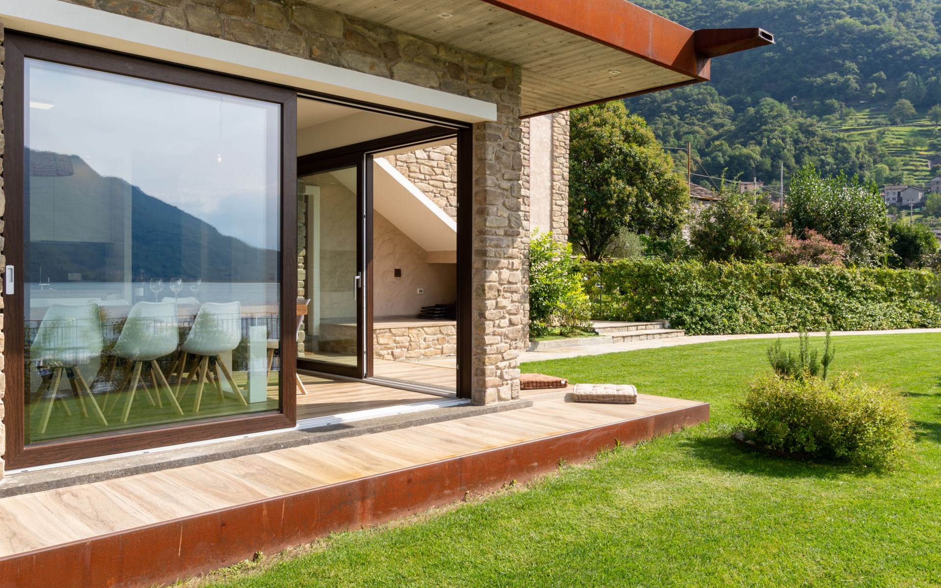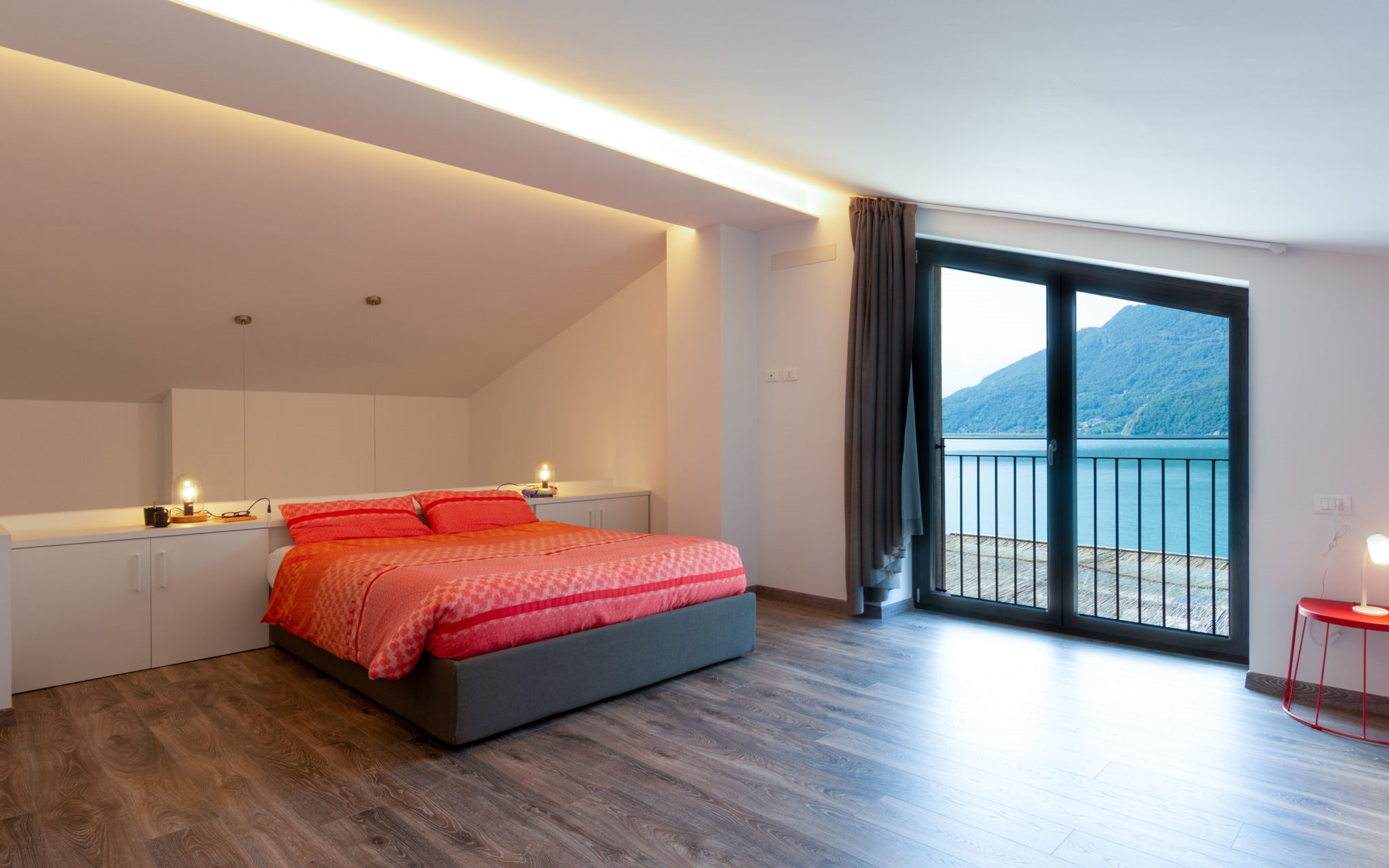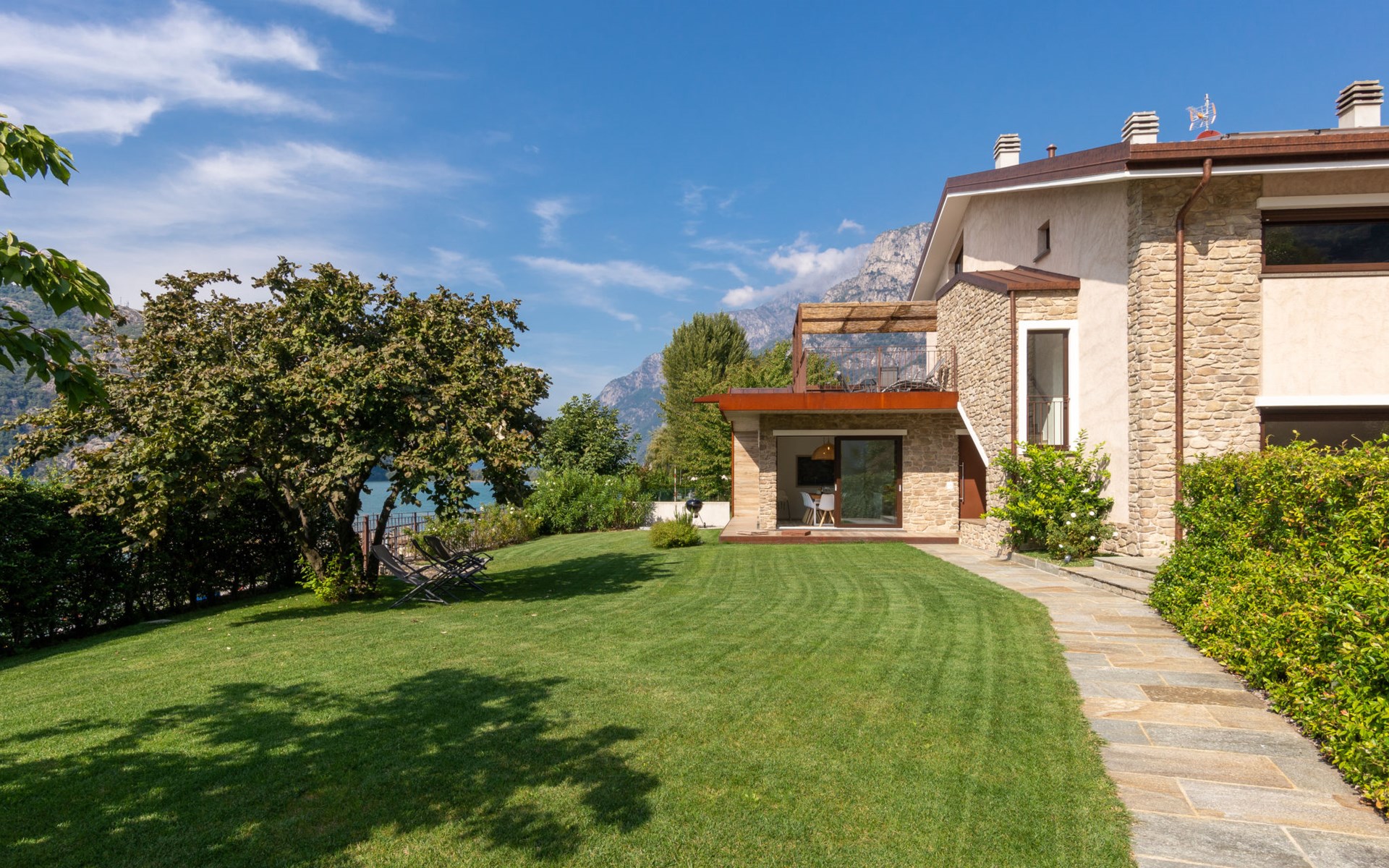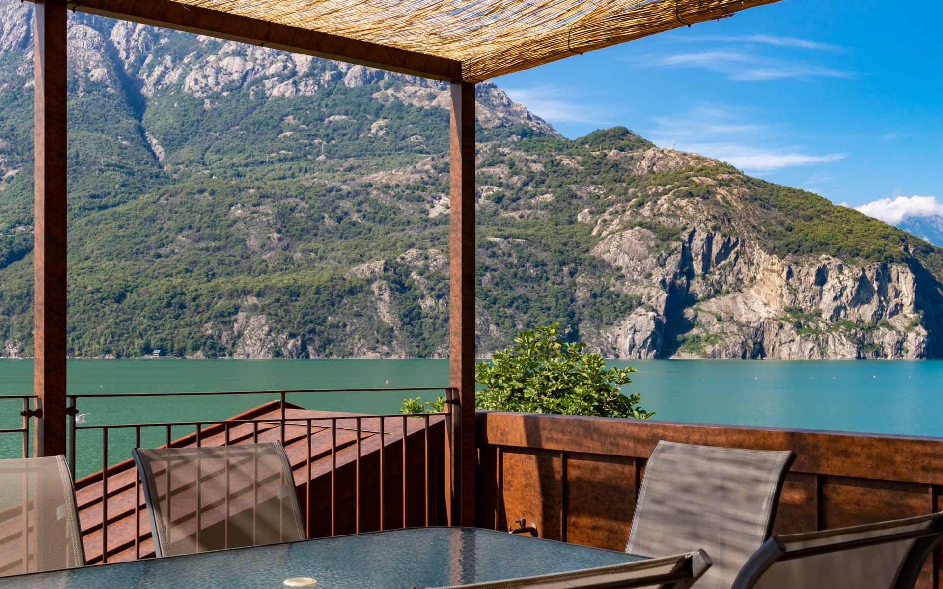 Modern house "Brezza di Lago", semi-detached. 2 apartments in the property. 200 m from the centre of Verceia, 16 km from the centre of Chiavenna, 67 km from the centre of Como, in the residential district, 5 m from the lake, in a cul-de-sac. Shop 450 m, supermarket 3 km, bus stop 40 m, railway station "Verceia" 1 km, sandy beach "Lago di Como: Spiaggia 'La Punta'" 9 km pebble beach "Verceia" 150 m, outdoor swimming pool 12 km, indoor swimming pool 16 km. Marina 5 m, golf course (18 hole) 42 km. Nearby attractions: Museo Etnografico Valle Codera, Tempieto di San Fedele, Parochiale della Santissima Trinitá. Well-known ski regions can easily be reached: Skiarea Valchiavenna. Hiking paths: Sentiero Roma, Sentiero Italia, Pian di Spagna. Please note: main road 20 m from the property. Railway line 20 m from the property.