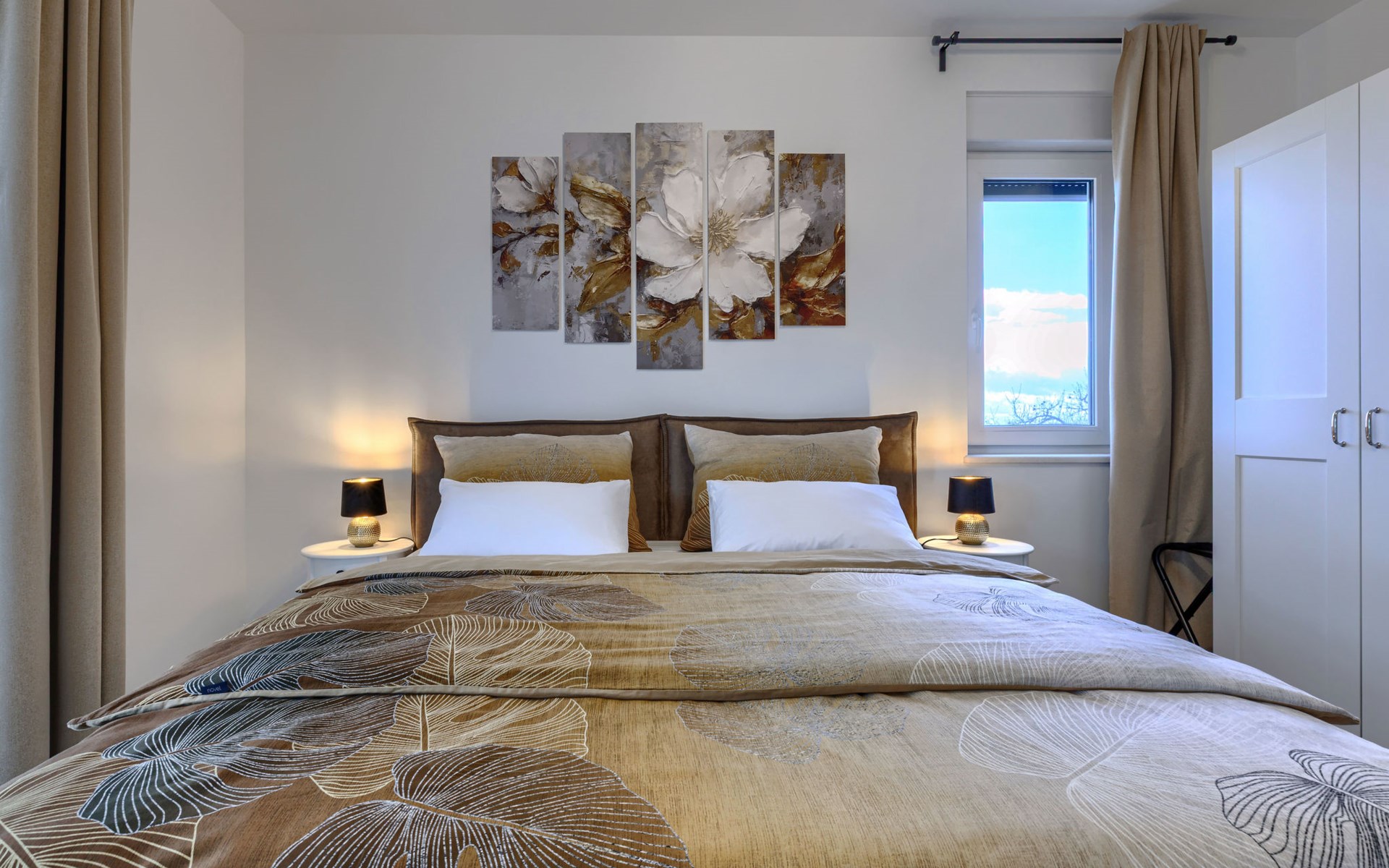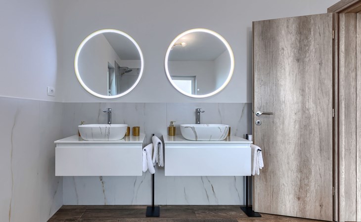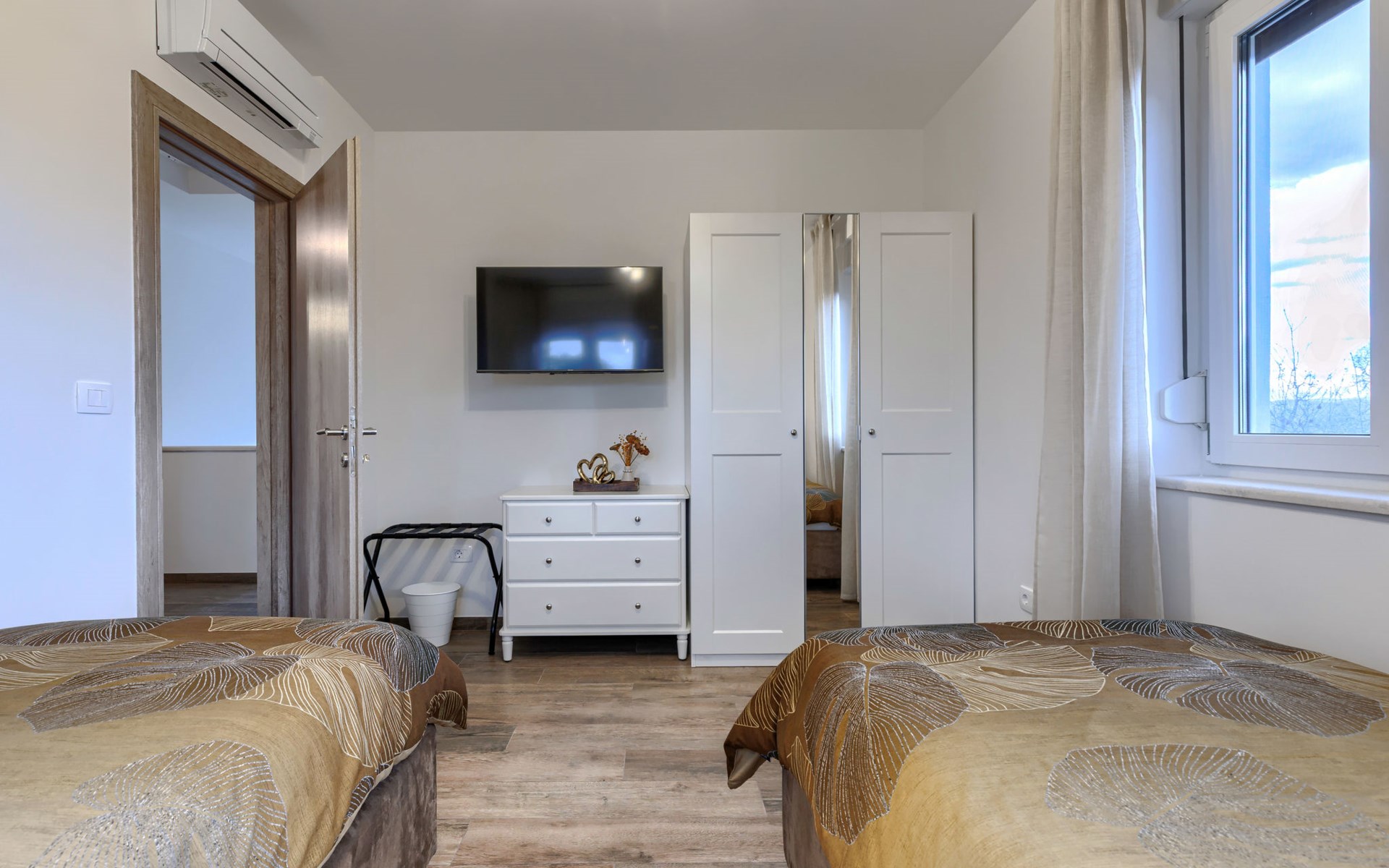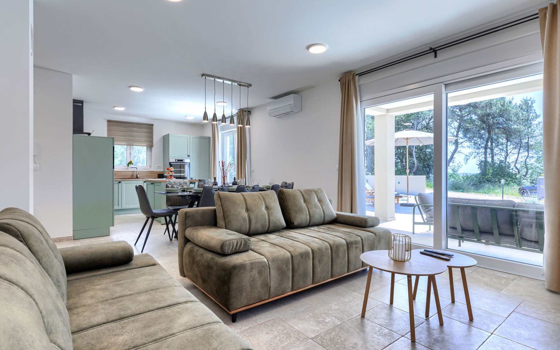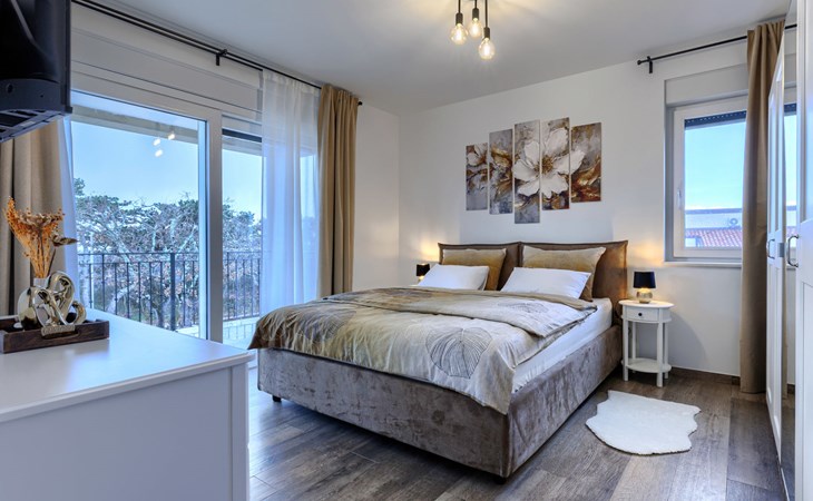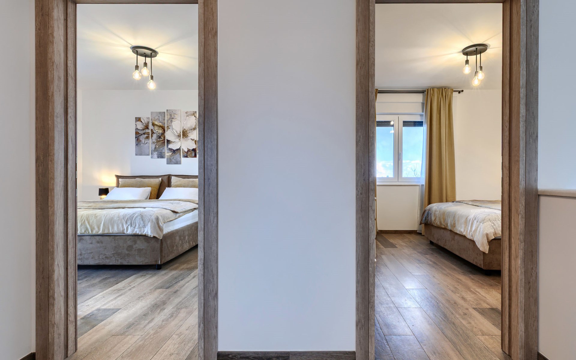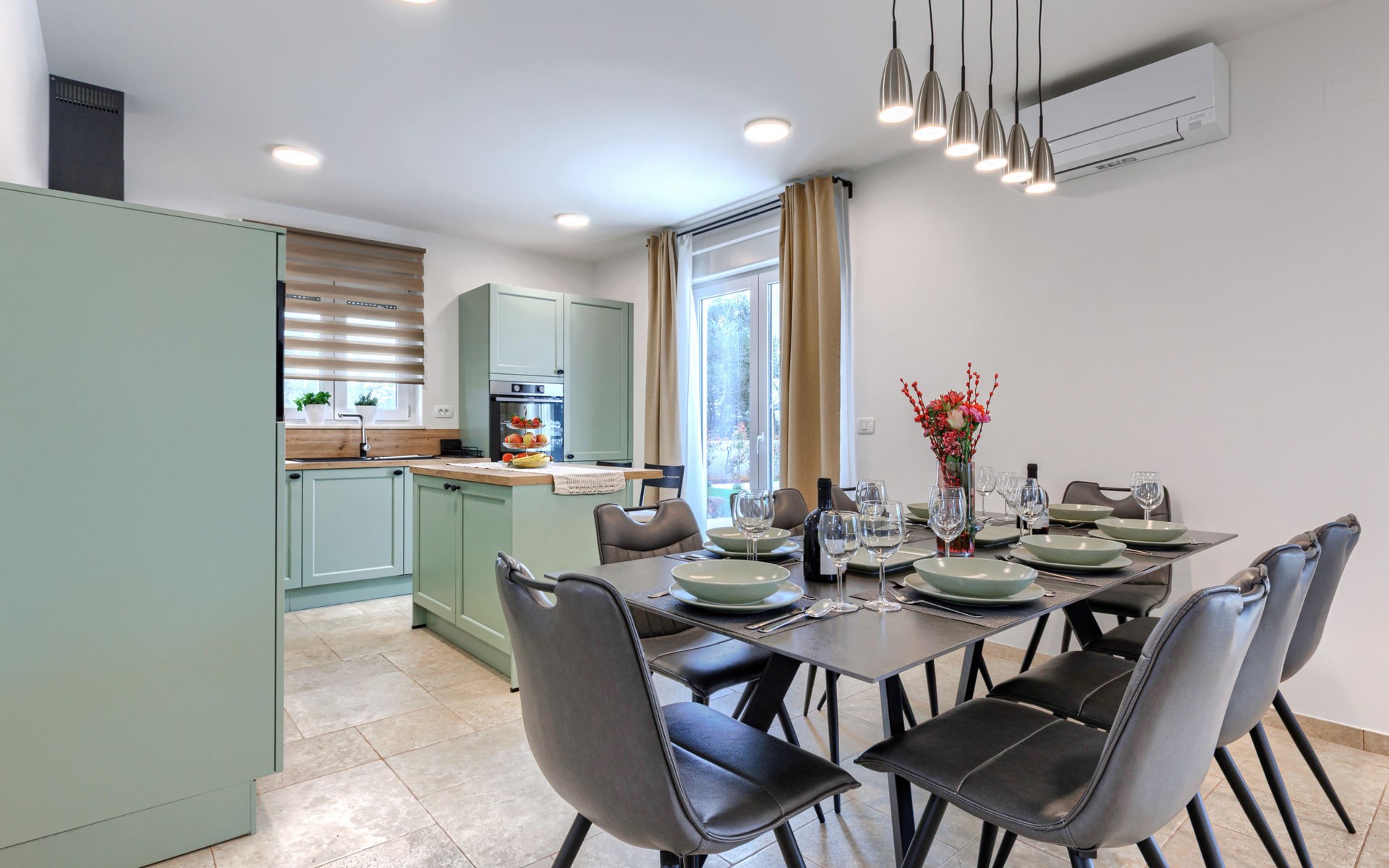 Modern, beautiful villa "Tramonto", 2 storeys. In the hamlet Gamboci 4 km from the centre of Buje, 12.5 km from the centre of Umag, 16.5 km from the centre of Novigrad, in a quiet position, 12 km from the sea, in a cul-de-sac. Private: property 1'200 m2 (fenced) with wildlife garden, swimming pool angular, heated (8 x 4 m, depth 150 cm, seasonal availability: 01.Apr. - 01.Nov.) with internal staircase. Outdoor shower, terrace (10 m2), garden furniture, barbecue. In the house: internet access, washing machine. Motor access (300 m via unmade road). Parking (for 2 cars) at the house on the premises. Shop 3.5 km, supermarket 3.5 km, restaurant 2.5 km, café 4 km, bus stop 4.5 km. Tennis 4.5 km, walking paths from the house 50 m, cycle lane 100 m. Nearby attractions: Winery 10 km. Please note: airfield 17 km from the property. Swimming pool heated (extra). It is necessary to announce 7 days in advance if the pool heating is required.