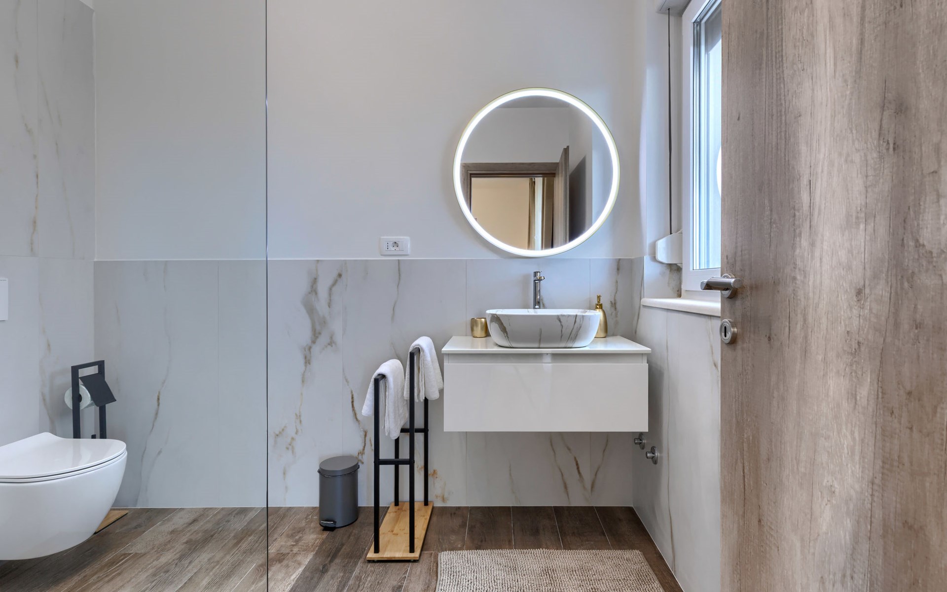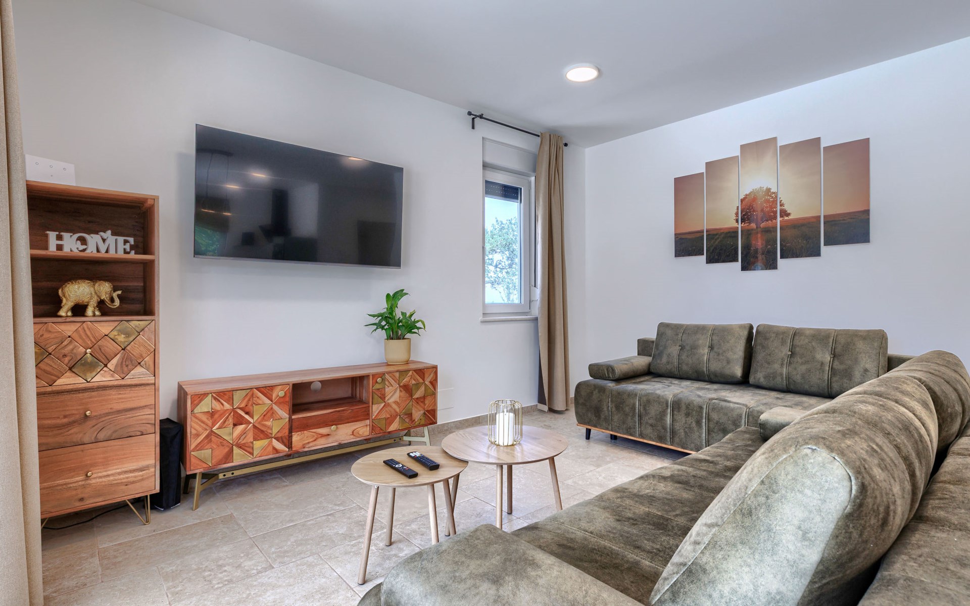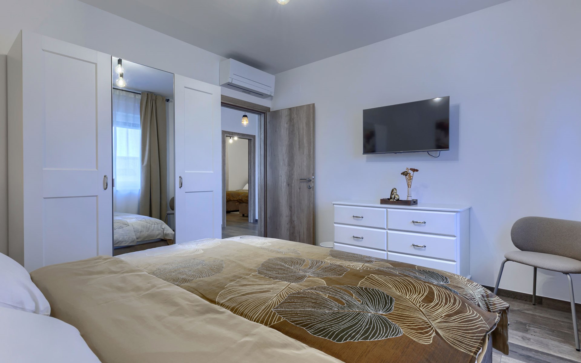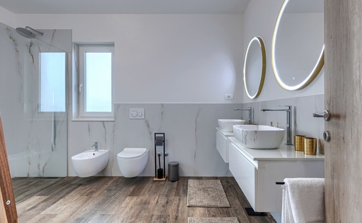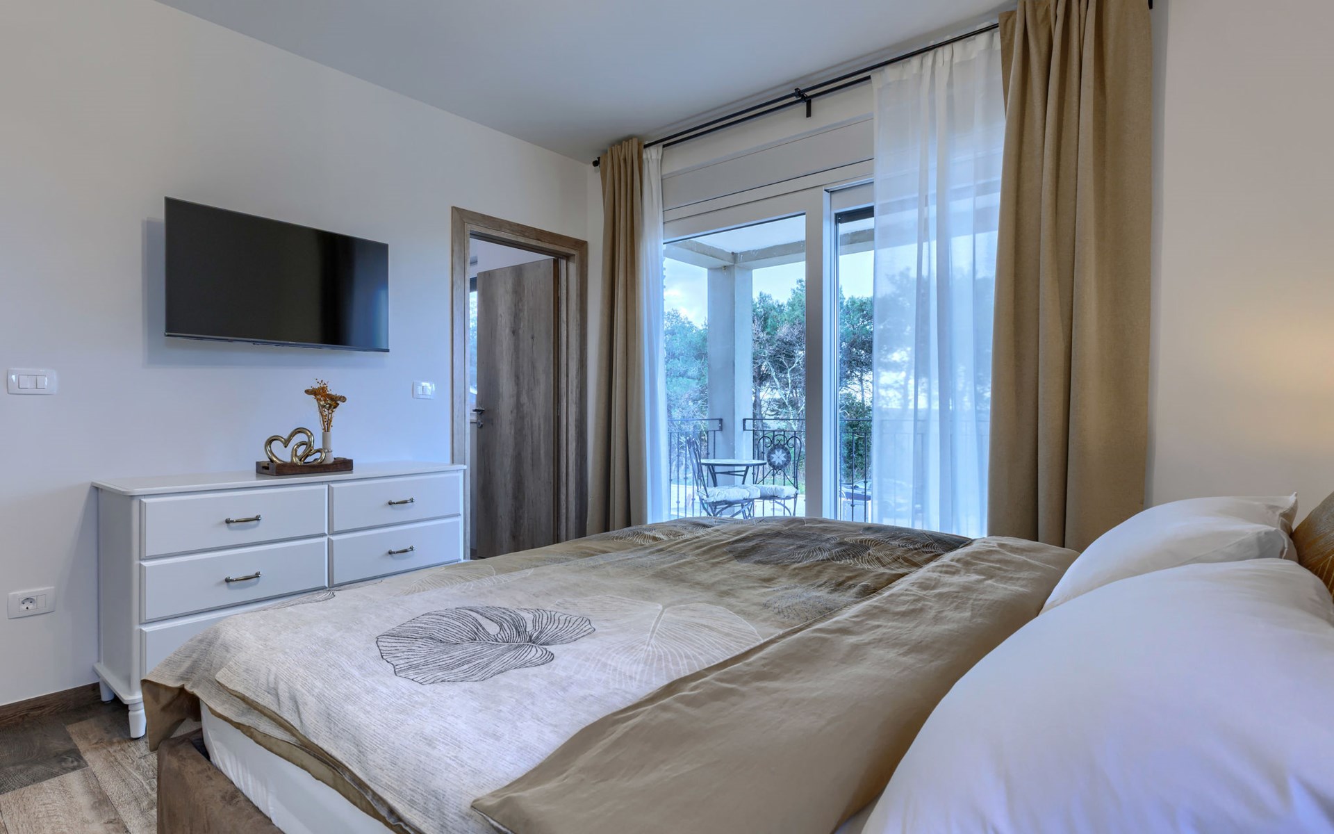 Modern, beautiful villa "Tramonto", 2 storeys. In the hamlet Gamboci 4 km from the centre of Buje, 12.5 km from the centre of Umag, 16.5 km from the centre of Novigrad, in a quiet position, 12 km from the sea, in a cul-de-sac. Private: property 1'200 m2 (fenced) with wildlife garden, swimming pool angular, heated (8 x 4 m, depth 150 cm, seasonal availability: 01.Apr. - 01.Nov.) with internal staircase. Outdoor shower, terrace (10 m2), garden furniture, barbecue. In the house: internet access, washing machine. Motor access (300 m via unmade road). Parking (for 2 cars) at the house on the premises. Shop 3.5 km, supermarket 3.5 km, restaurant 2.5 km, café 4 km, bus stop 4.5 km. Tennis 4.5 km, walking paths from the house 50 m, cycle lane 100 m. Nearby attractions: Winery 10 km. Please note: airfield 17 km from the property. Swimming pool heated (extra). It is necessary to announce 7 days in advance if the pool heating is required.