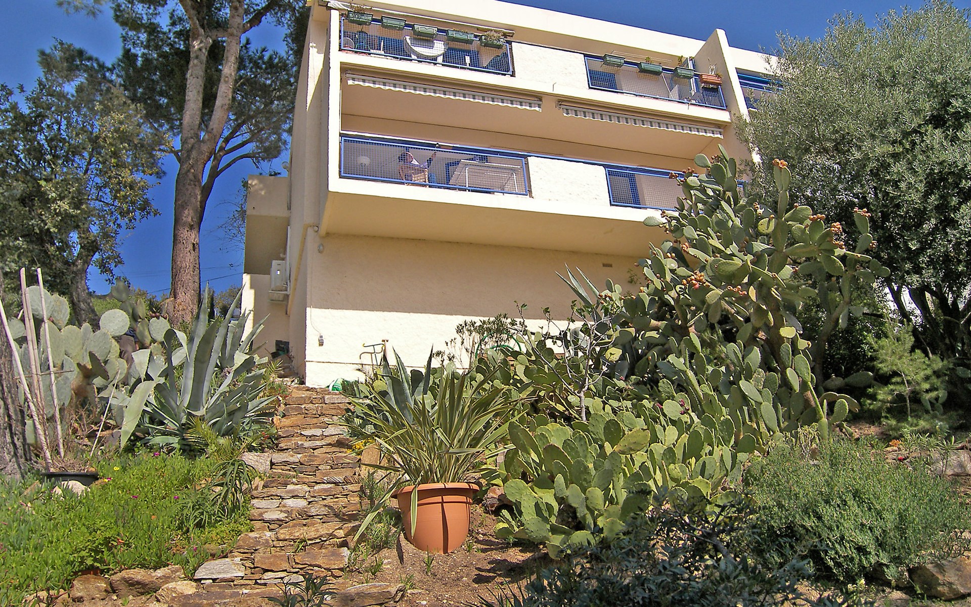Le Lavandou: Beautiful residence "Les Alizées", 2 storeys. On the outskirts, on a slope, 1 km from the sea, 1 km from the beach, in a cul-de-sac. For shared use: garden (fenced), parking on the premises. Shop 1 km, grocery 1 km, restaurant 1 km, bakery 1 km, café 1 km, bicycle rental 1.5 km, bus stop "Lavandou Gare routière" 600 m, railway station "Hyères" 22 km, sandy beach "Lavandou" 1 km. Sports harbour 2 km, golf course (18 hole) 16 km, sailing school 2.5 km, tennis 2 km, minigolf 2 km, children's playground 2 km. Nearby attractions: Magic world 25 km. Hiking paths: Sentier du littoral 3 km. Please note: car recommended, no lift. The keys‘ handover takes place by the agency Interhome in Le Lavandou. access to the residence is via a steep road.