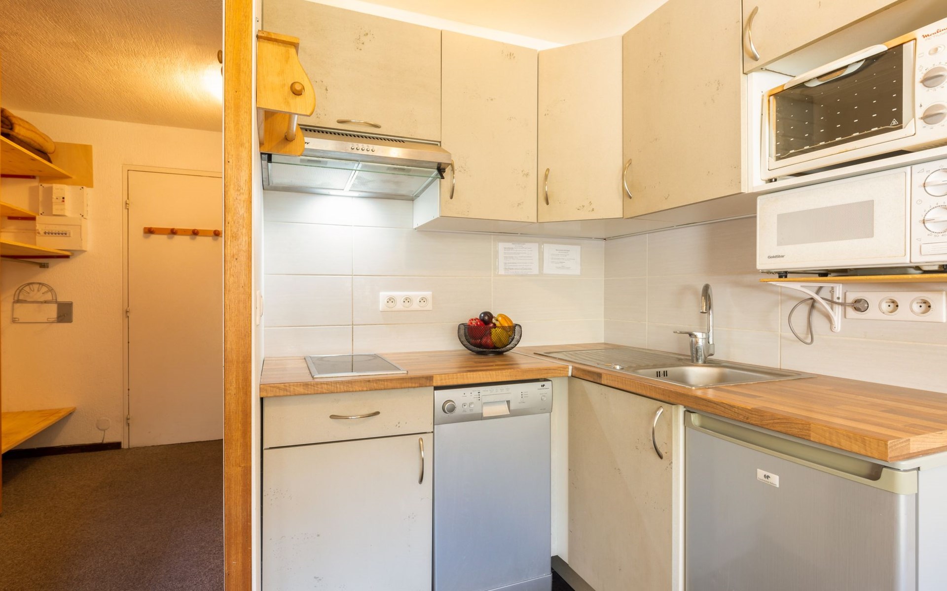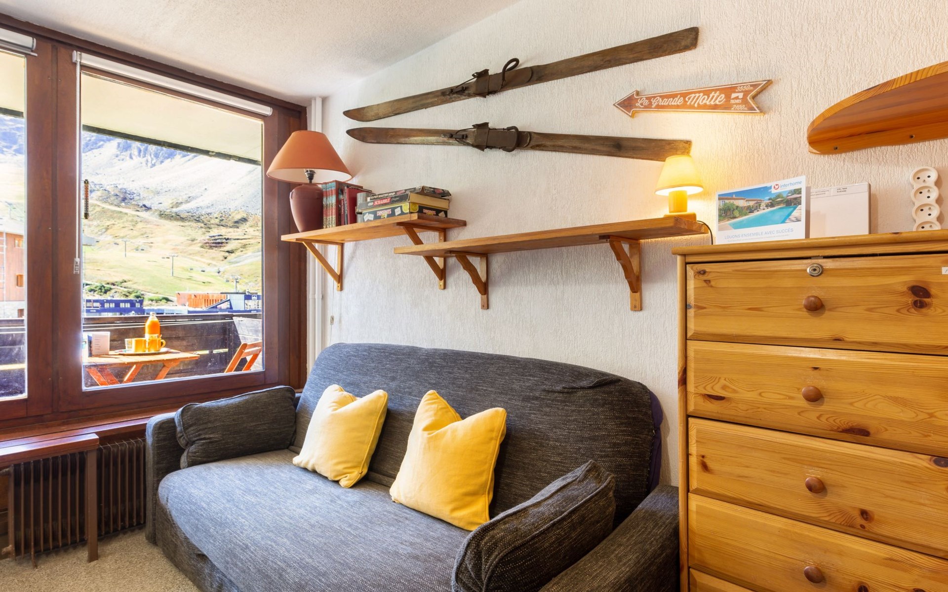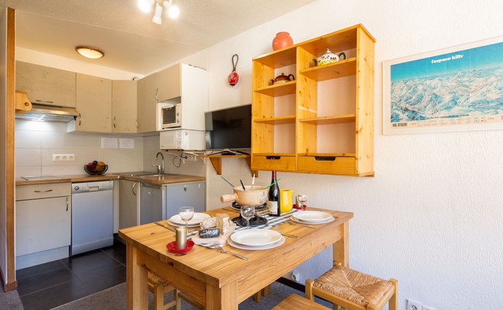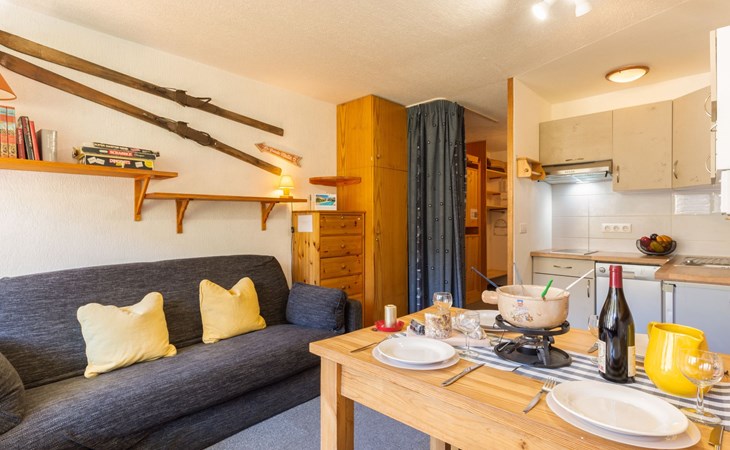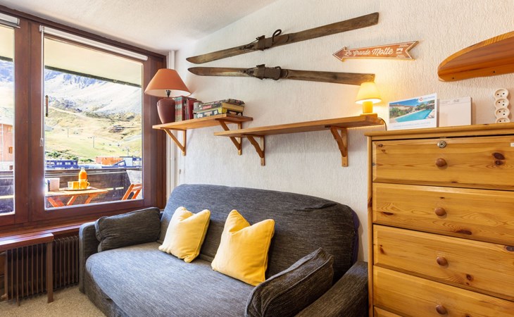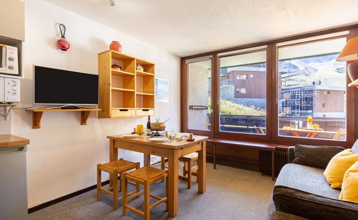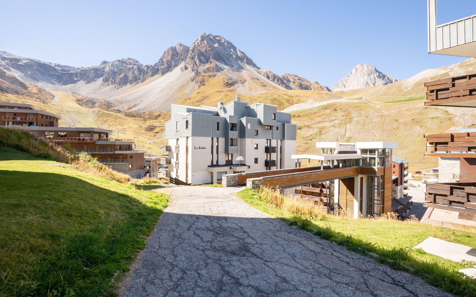 Tignes Val Claret: Residence "Le Bollin (Val Claret)", 6 storeys. Directly by the skiing area, situated at the foot of a mountain. In the complex: lift, storage room for skis, central heating system. Shop 200 m, supermarket 500 m, shopping centre 200 m, restaurant 100 m, bakery, bus stop 200 m, indoor swimming pool 2 km. Sports centre 2 km, skisport facilities 5 m, ski rental 100 m, ski bus stop 300 m, ski school 50 m, sled run, cross country ski track 2 km, ice rink 2 km. Well-known ski regions can easily be reached: TIGNES VAL D'ISERE 5 m. Please note: ski bus (free of charge).