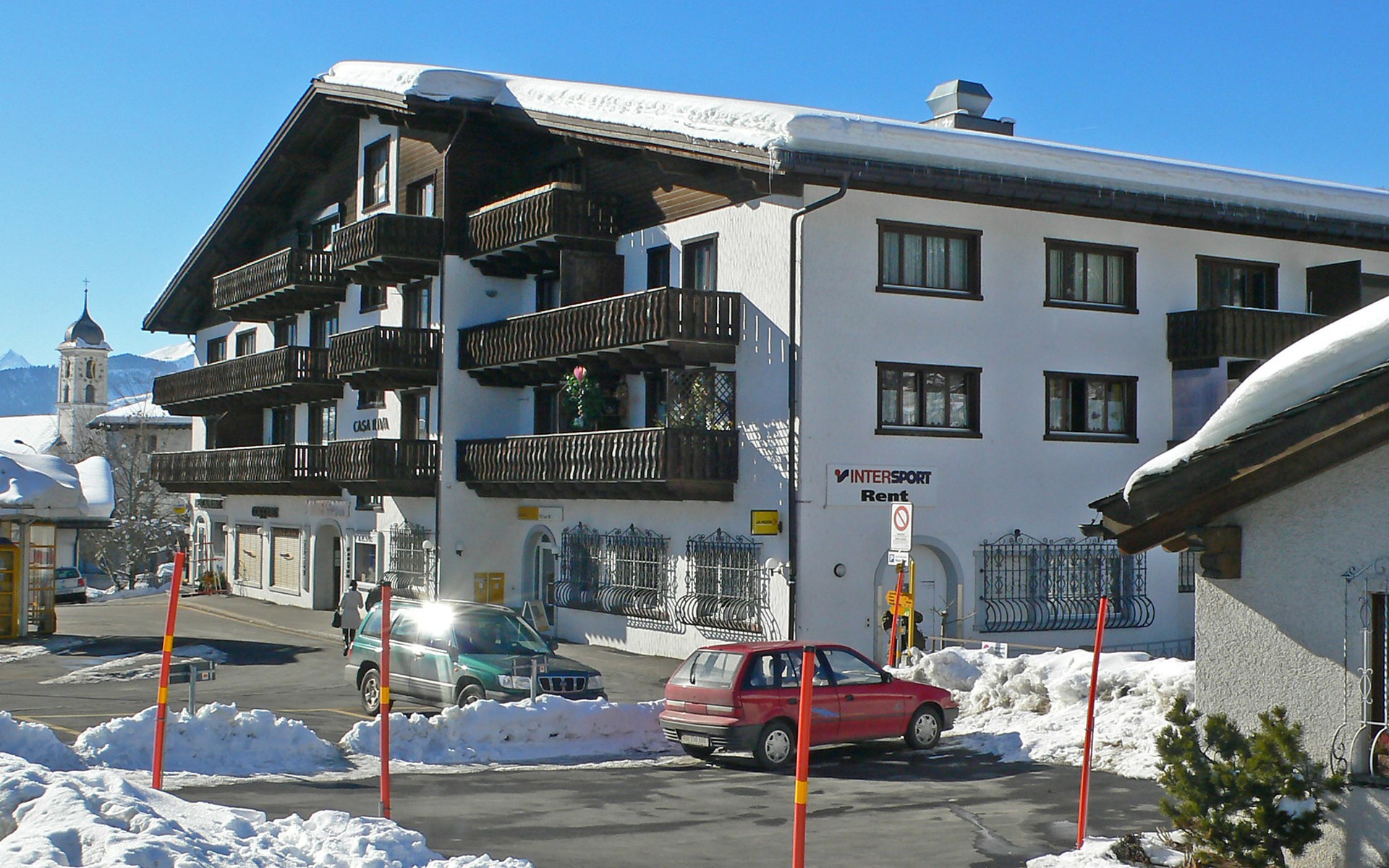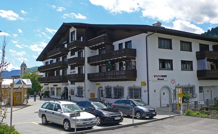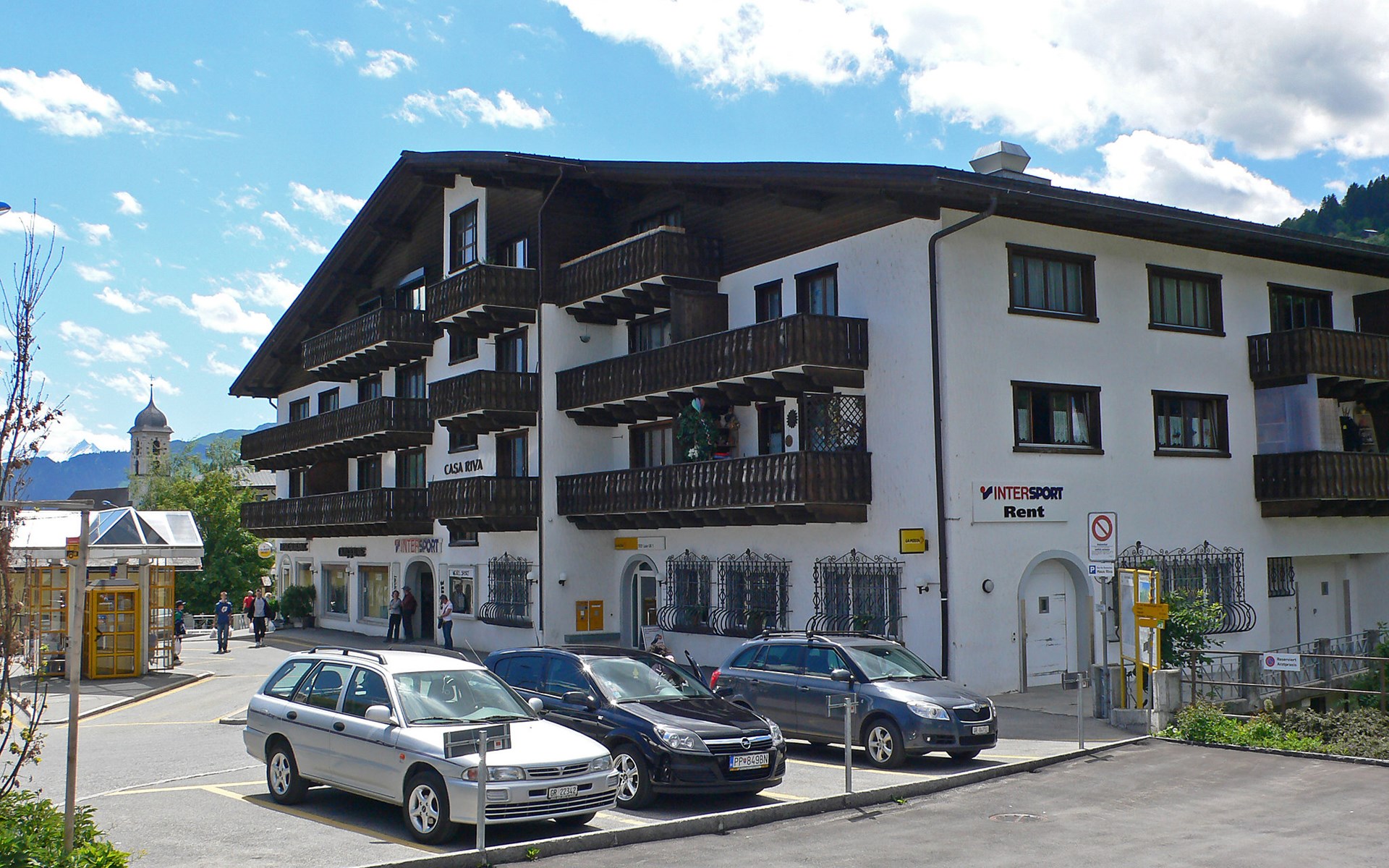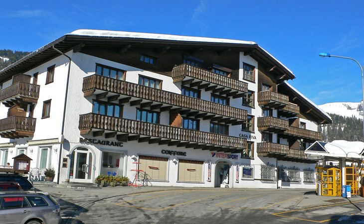 Laax Dorf: Apartment house "La Riva", 1'050 m a.s.l., 3 storeys. In the centre of Laax, in a central, sunny position, 50 m from the lake, 1.5 km from the skiing area. In the house: lift, storage room for skis, central heating system, washing machine, tumble dryer (for shared use, extra). Motor access to the house. Communal covered parking. Shop 200 m, grocery 200 m, restaurant 500 m, bus stop 10 m, indoor swimming pool 350 m, lake Caumasee 4.5 km. Golf course (18 hole) 5 km, cable car 1.5 km, ski lift 350 m, skisport facilities 1.5 km, ski rental 1.5 km, ski bus stop 10 m, ski school 1.5 km, children's ski school 350 m, sled run 1.5 km, cross country ski track 500 m, ice rink 350 m, children's playground 50 m. Nearby attractions: Rheinschlucht 5 km. Well-known lakes can easily be reached: Caumasee 4.5 km, Crestasee 10 km. Children's drag lift 350 m. Skiing "Alpenarena" in Flims 4.5 km, Falera 1.5 km, Laax-Murschteg 1.6 km. Centre of Flims with other shops, entertainment and lake "Caumasee" 4.5 km. This building is located near the lake "Laaxer-See". Childrens playground nearby.