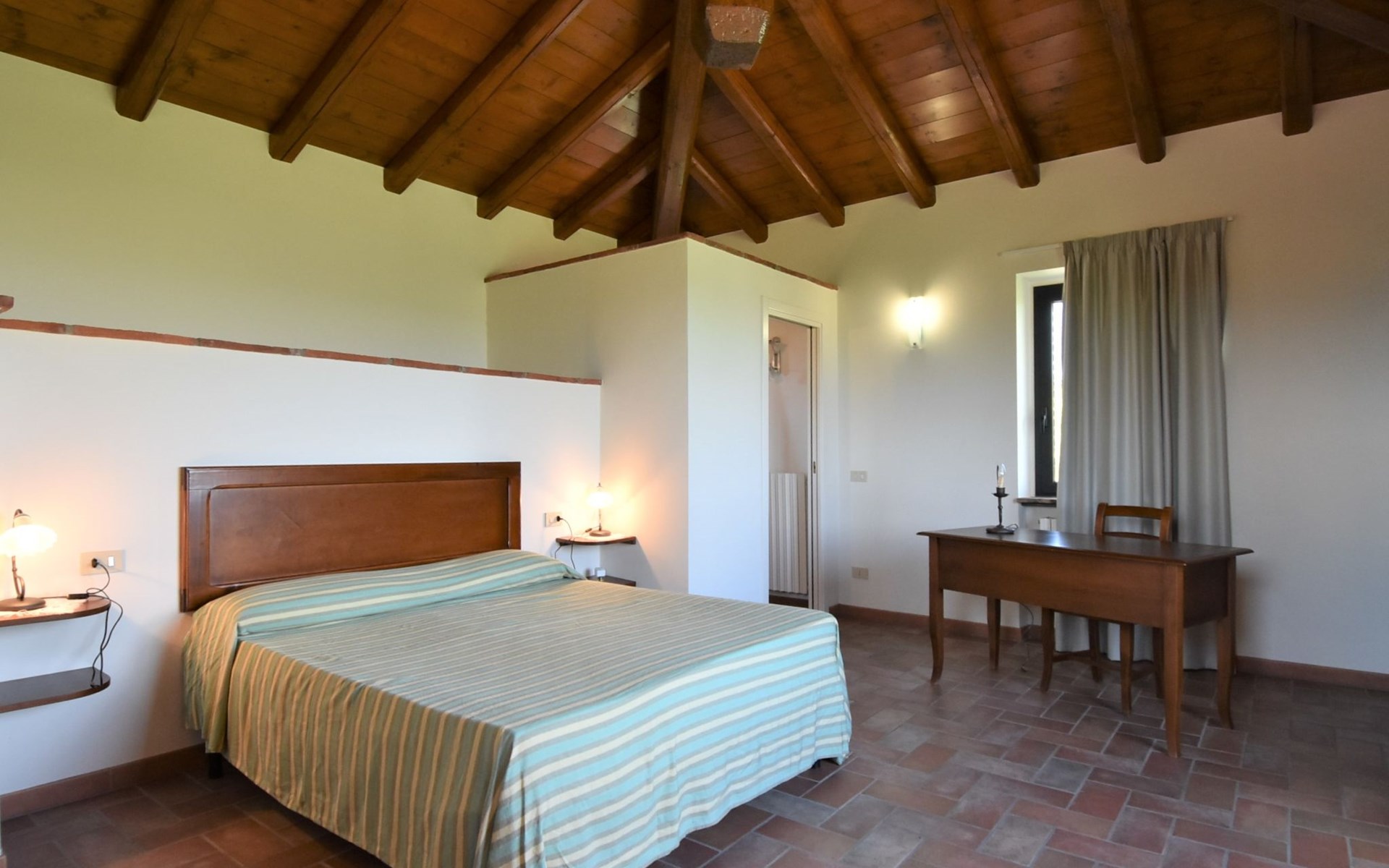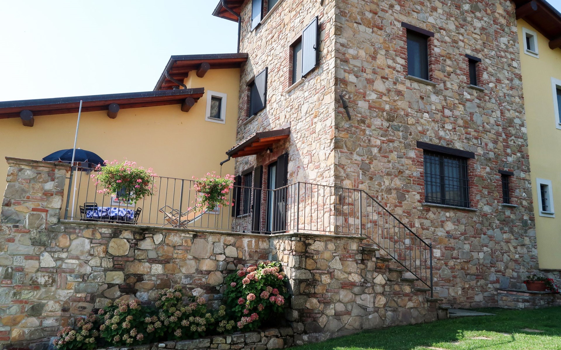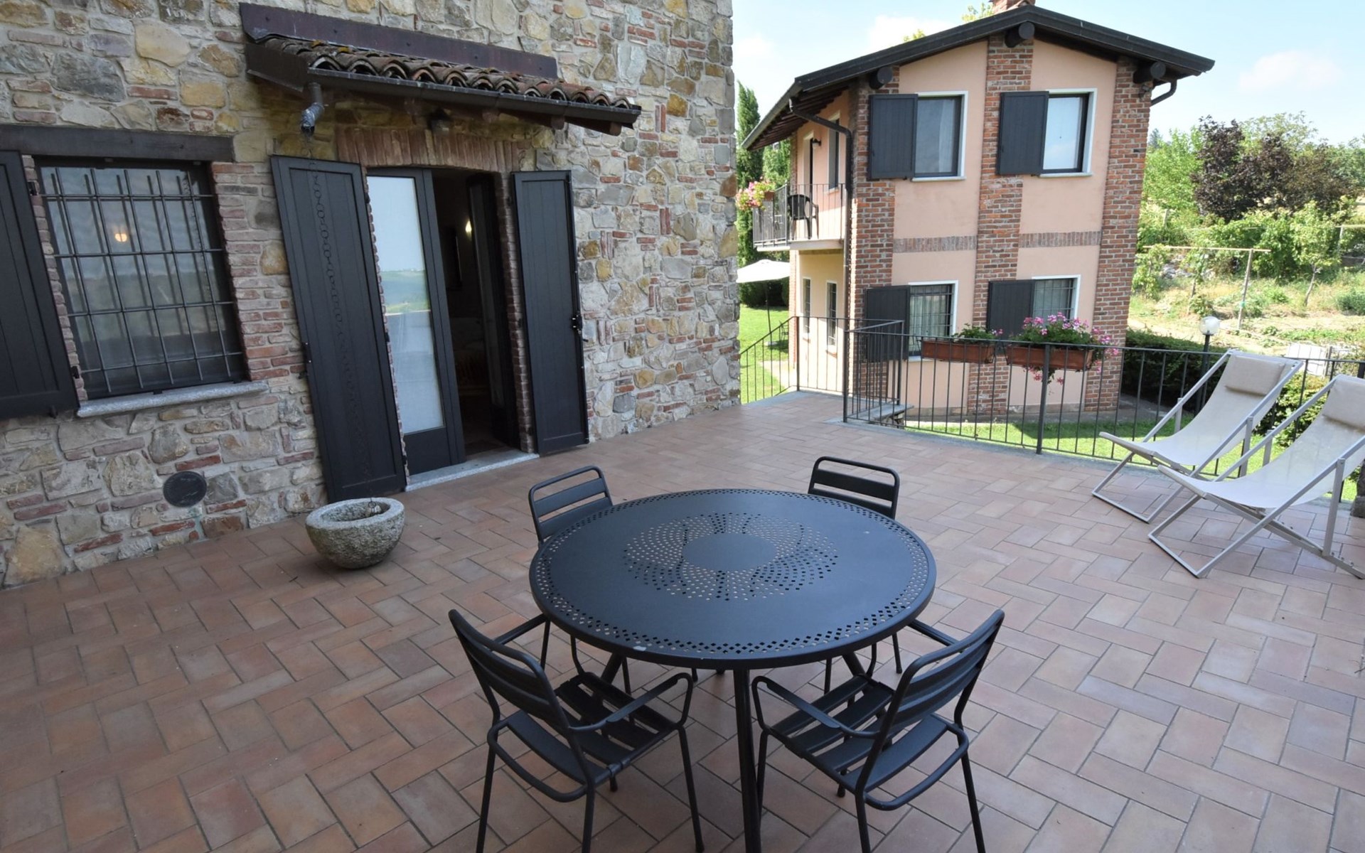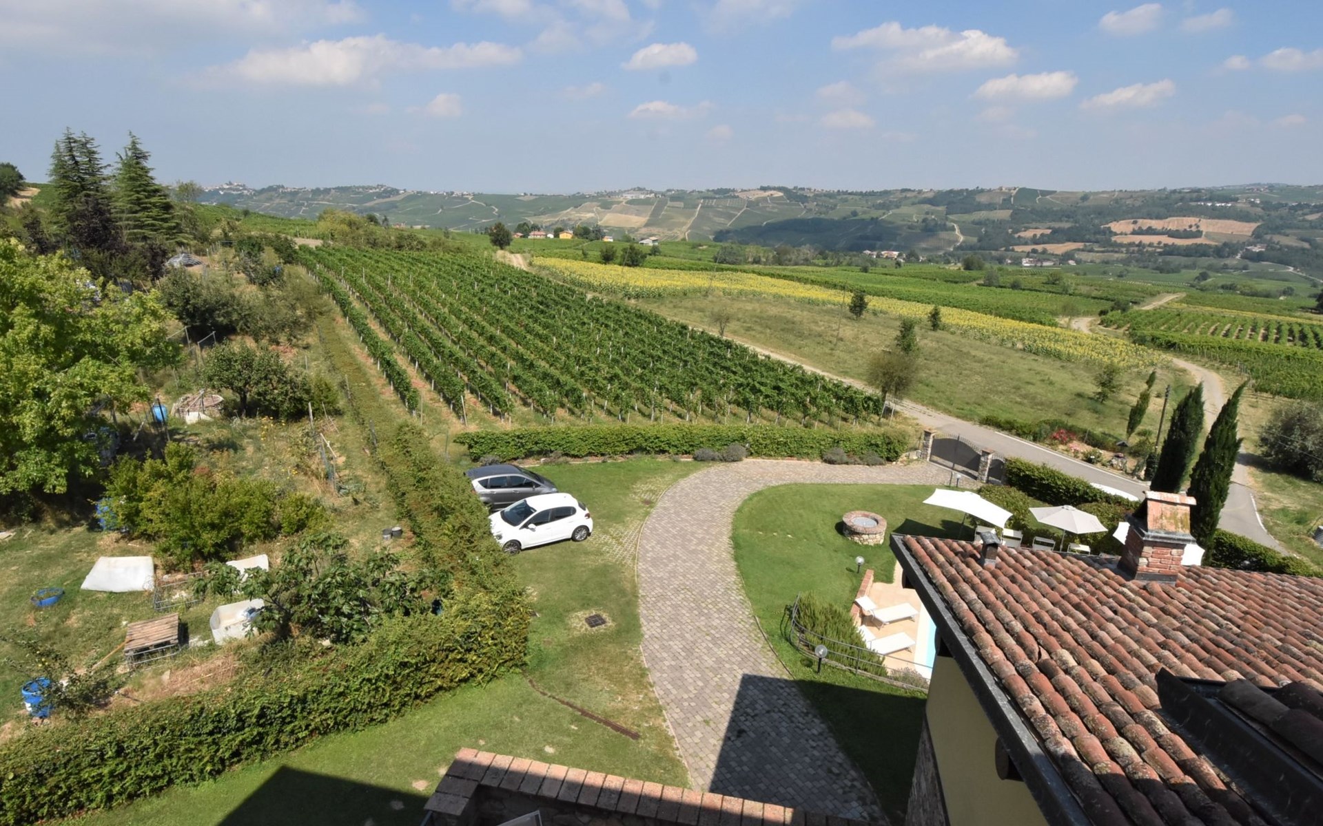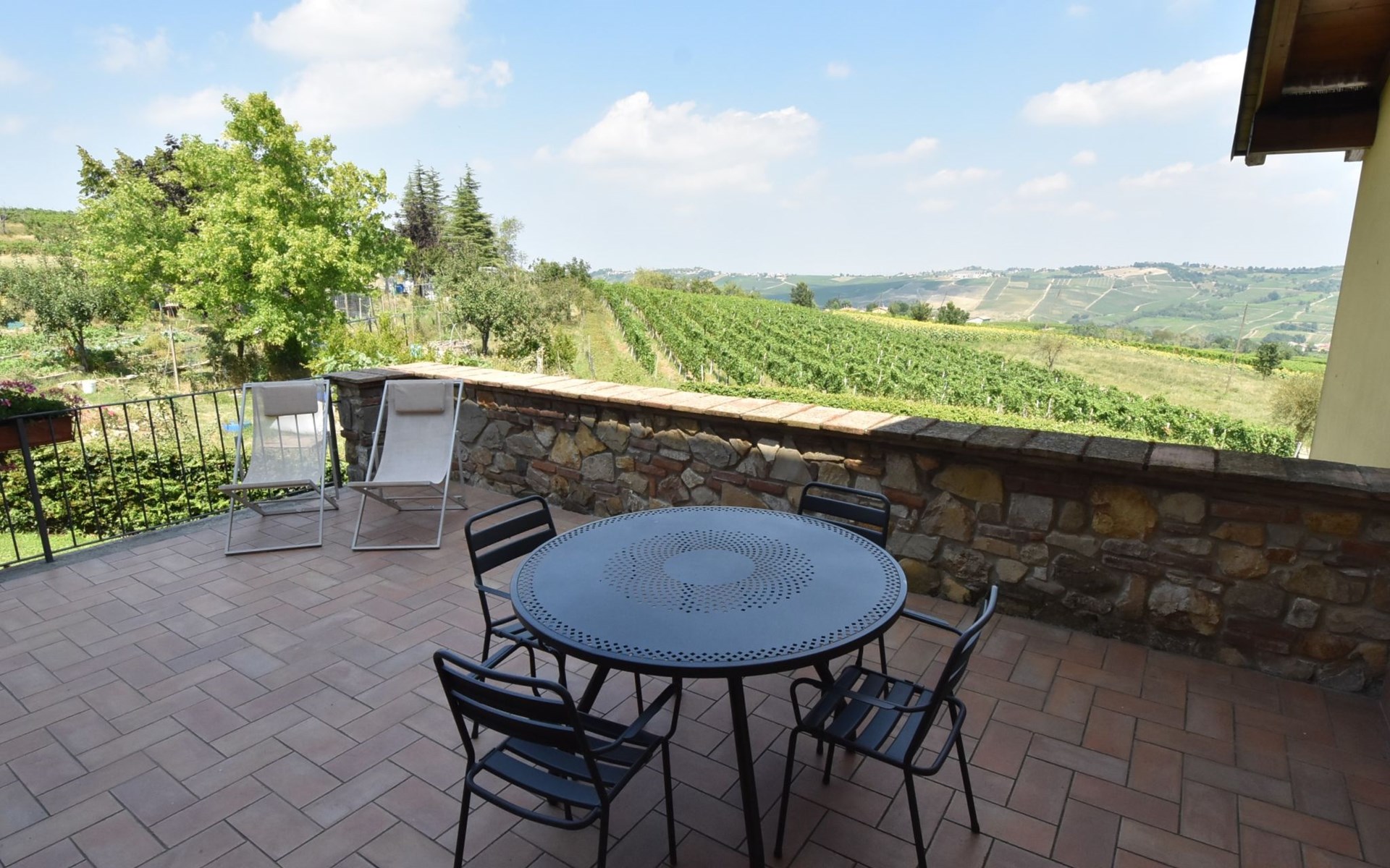 Beautiful residence 300 m a.s.l., surrounded by fields and vineyards. 6 apartments in the residence. In the hamlet Cristina 2.2 km from the centre of Castana, on the outskirts, 28 km from the centre of Pavia, 84 km from the centre of Milano, on top of a hill. For shared use: property 2'300 m2 (fenced), terraced garden with lawn and trees, swimming pool (10 x 5 m, depth 130 cm, seasonal availability: 01.May. - 15.Oct.). Outdoor shower, terrace, garden furniture, barbecue, pool maintenance by the owner/gardener. In the complex: storage room for bicycles. Parking on the premises. Shop 1.5 km, supermarket 3 km. Golf course 30 km. Please note: the owner lives on the same property. Please note: possibility of e-bike rental. Half day or full day e-bike tour, with lunch in a characteristic restaurant (extra).