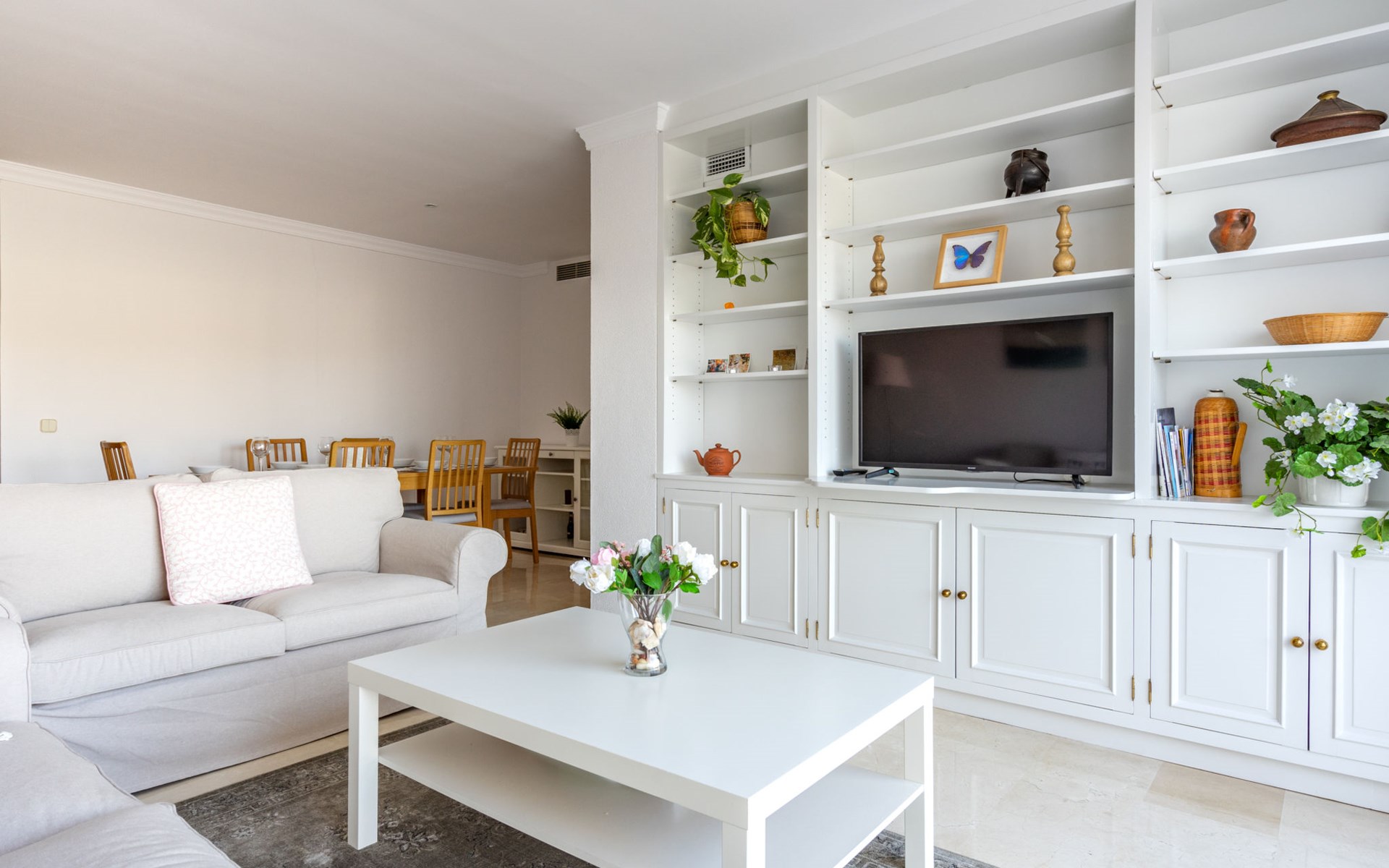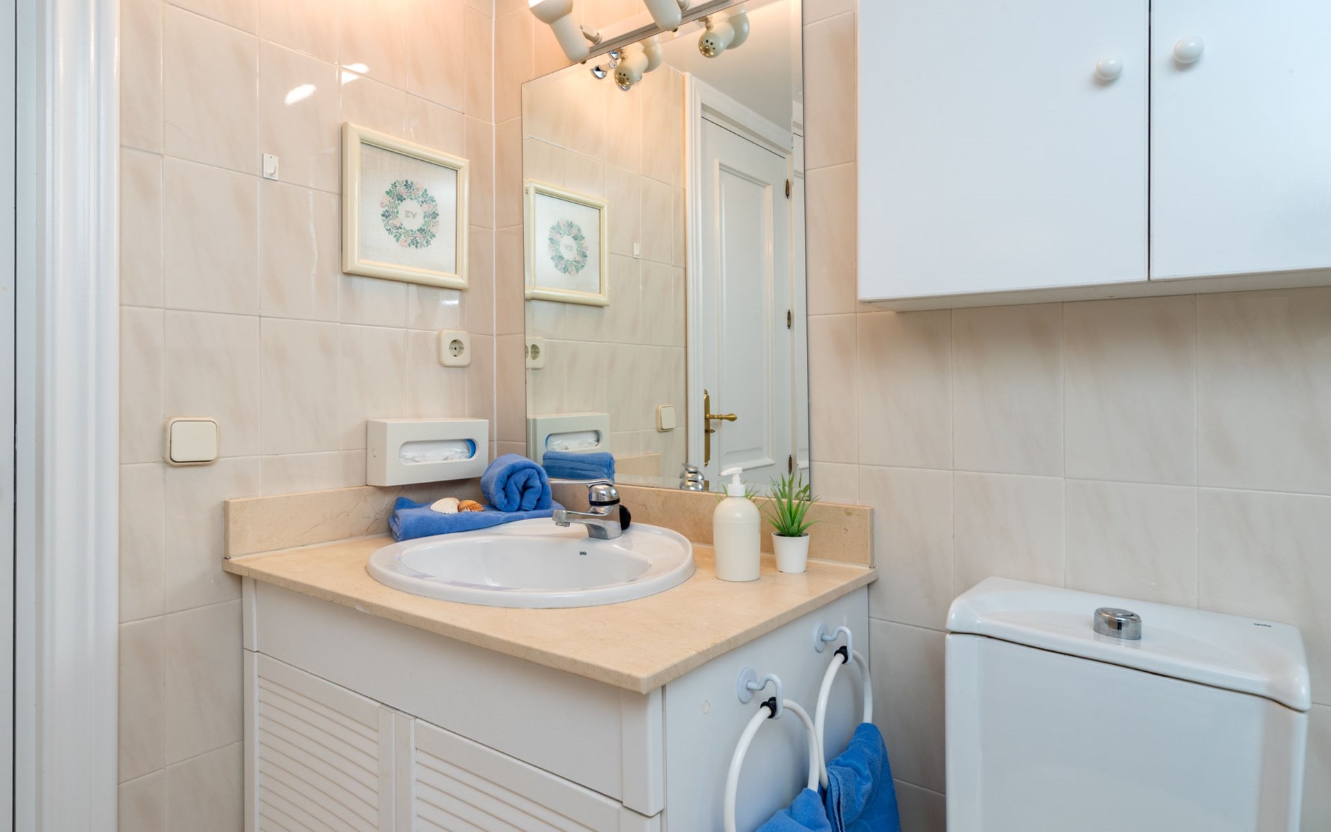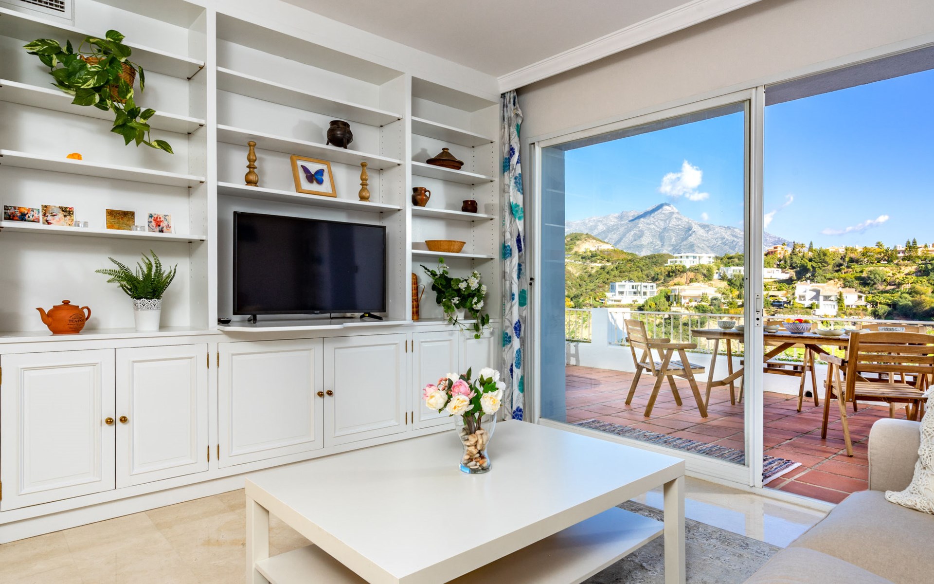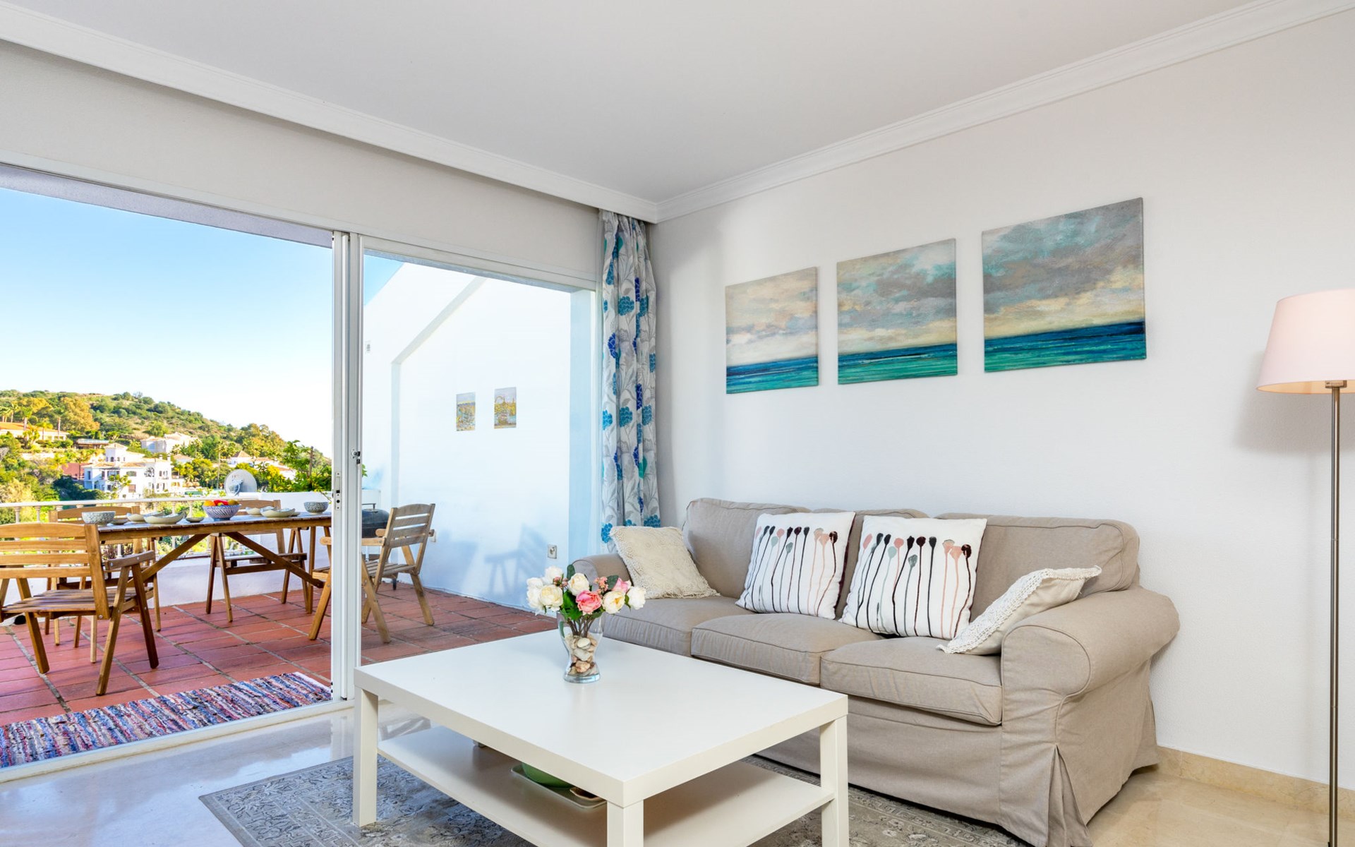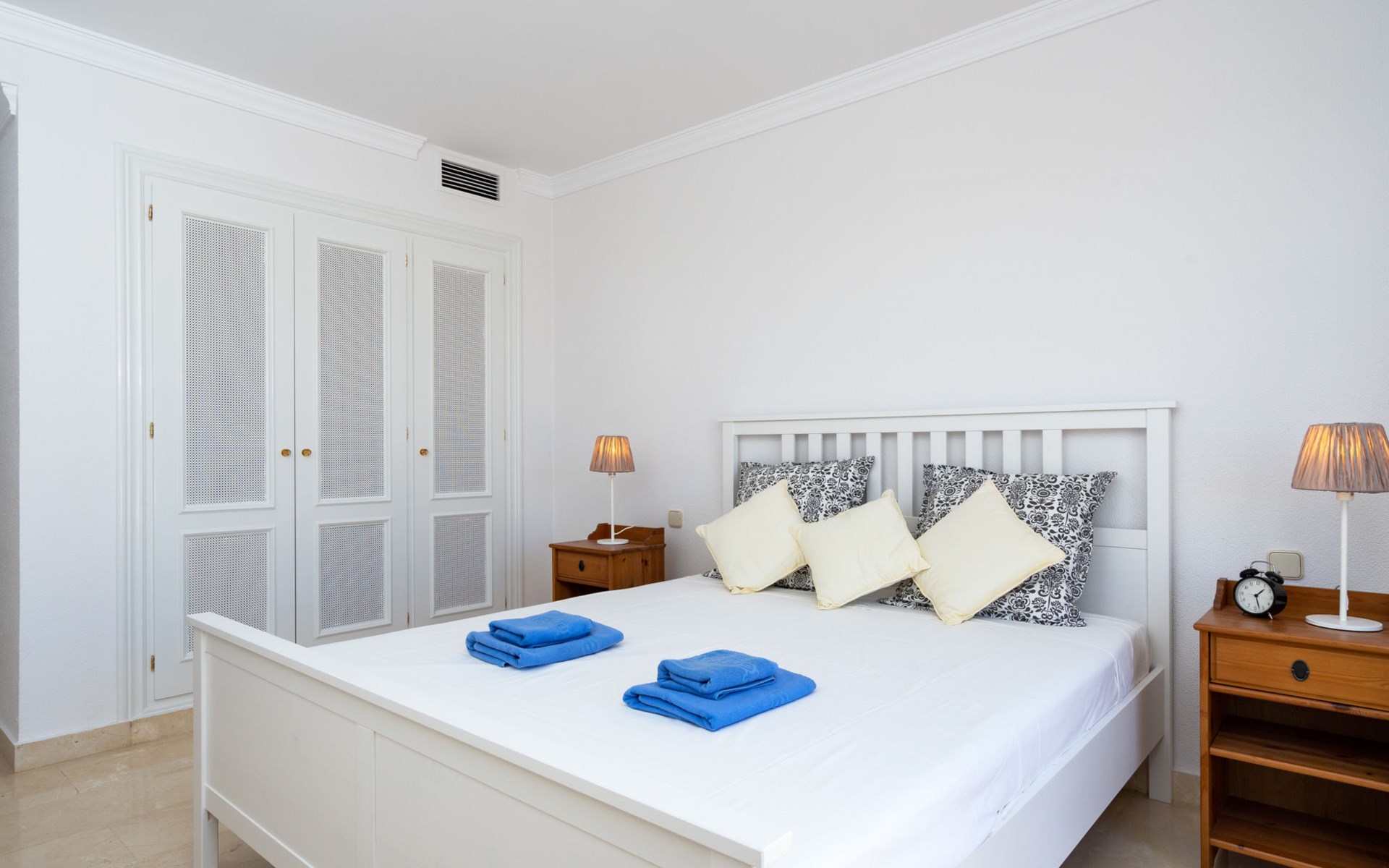 Apartment block "Mirador". 15 km from the centre of Marbella, outside the resort, 7 km from the centre of Puerto BanĂºs, 6 km from the sea, on the golf course, east facing position. For shared use: garden with lawn, swimming pool (depth 80 - 210 cm, seasonal availability: 01.May. - 31.Oct.). In the house: central heating system, air conditioning, washing machine. Parking. Supermarket 4 km, restaurant 5 km, bus stop "El Salto" 2.1 km, sandy beach 6 km. Golf course (18 hole) 1 km. Please note: car recommended. Neighbourhood highly sensitive to noise. Quietness and good behaviour expected.