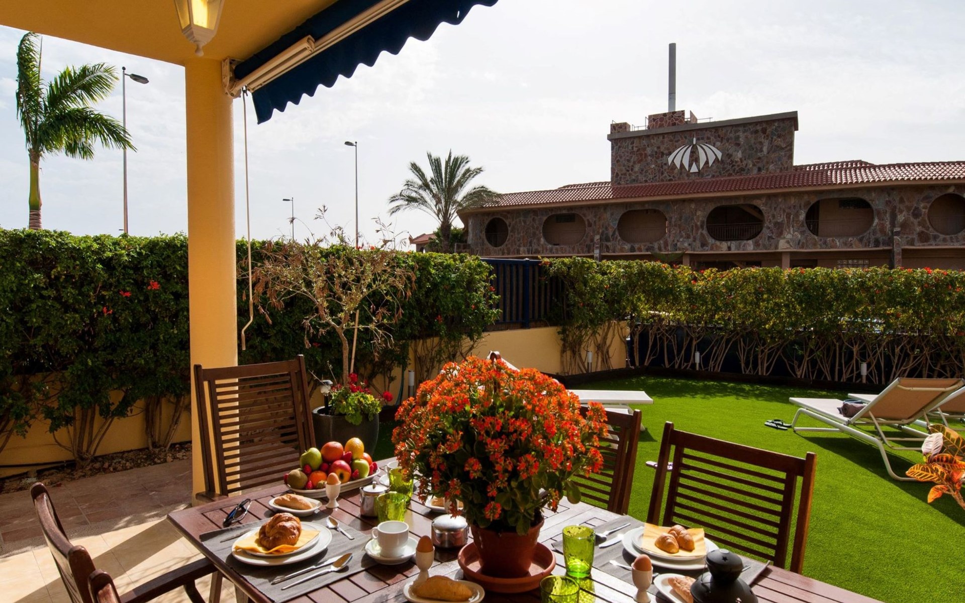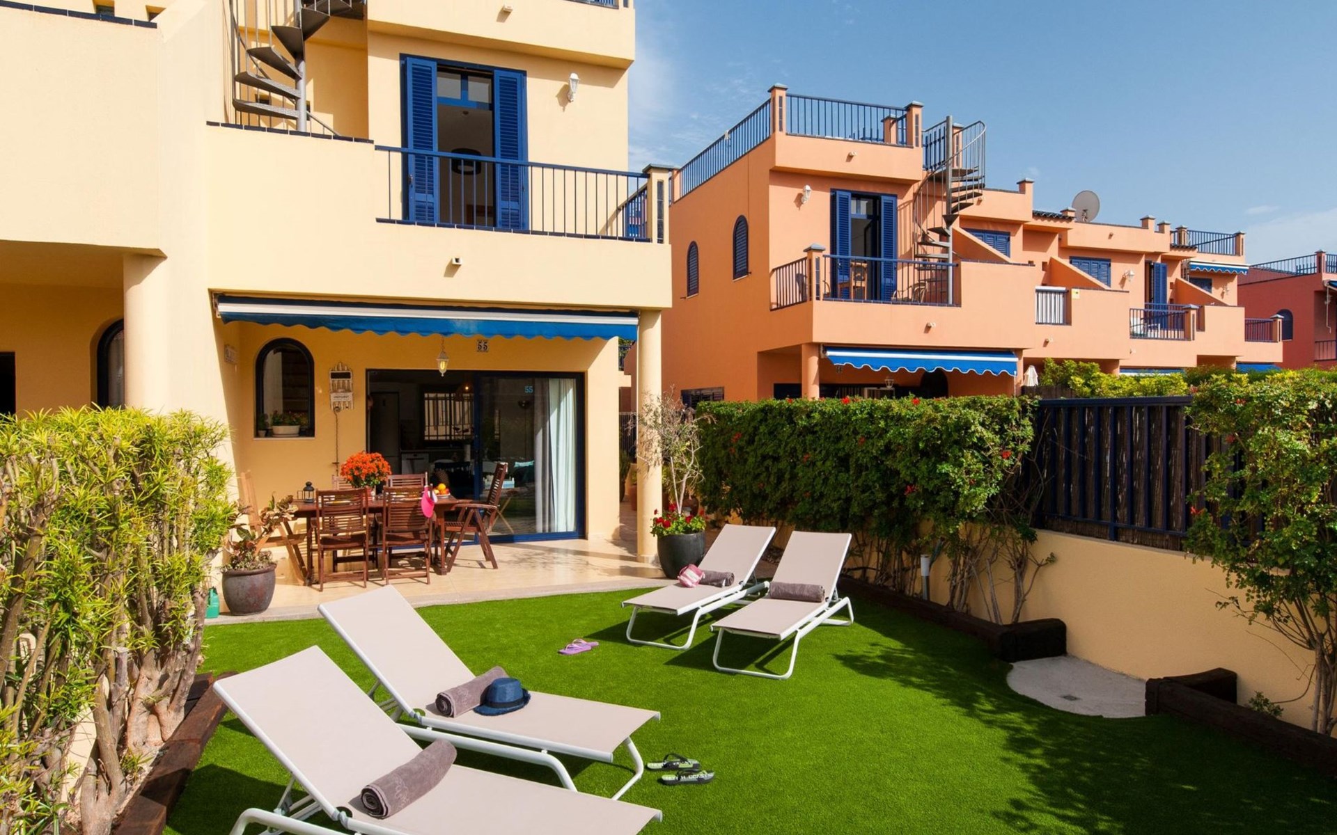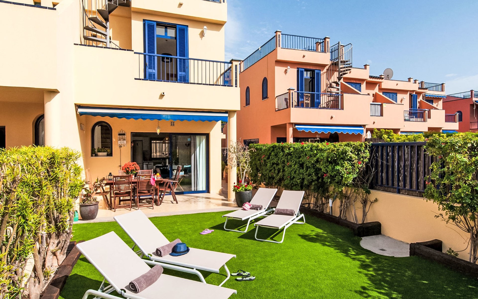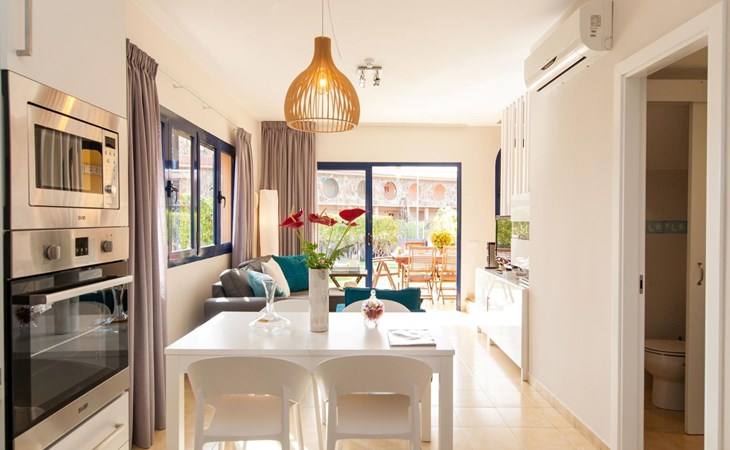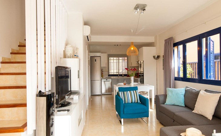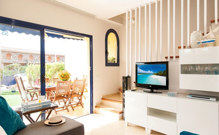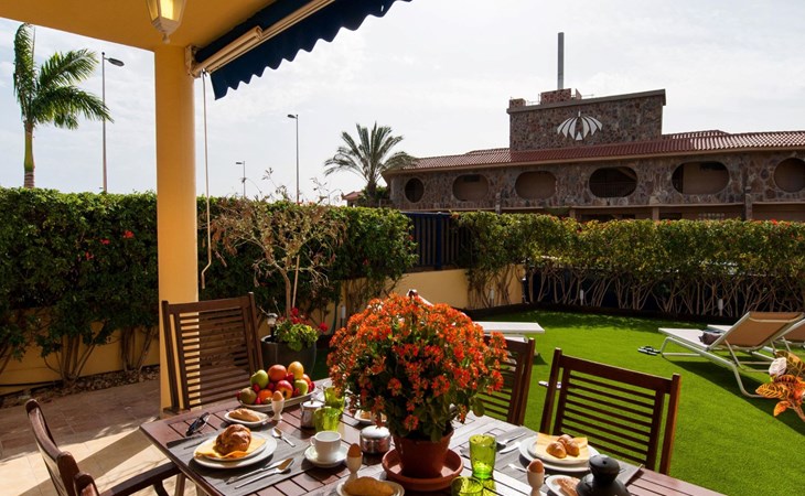 Very beautiful, comfortable villa "Meloneras Bahía HH55". In the centre of Meloneras, excellent location: right in the centre but still quiet. For shared use: swimming pool angular (seasonal availability: 01.Jan. - 31.Dec.). Outdoor shower. In the house: internet access, WiFi, air conditioning, washing machine, tumble dryer. Public parking on the road. Bus stop "Hospital Meloneras" 800 m. Object suitable for 4 adults. The owner does not accept any youth groups. Neighbourhood highly sensitive to noise. Quietness and good behaviour expected.
