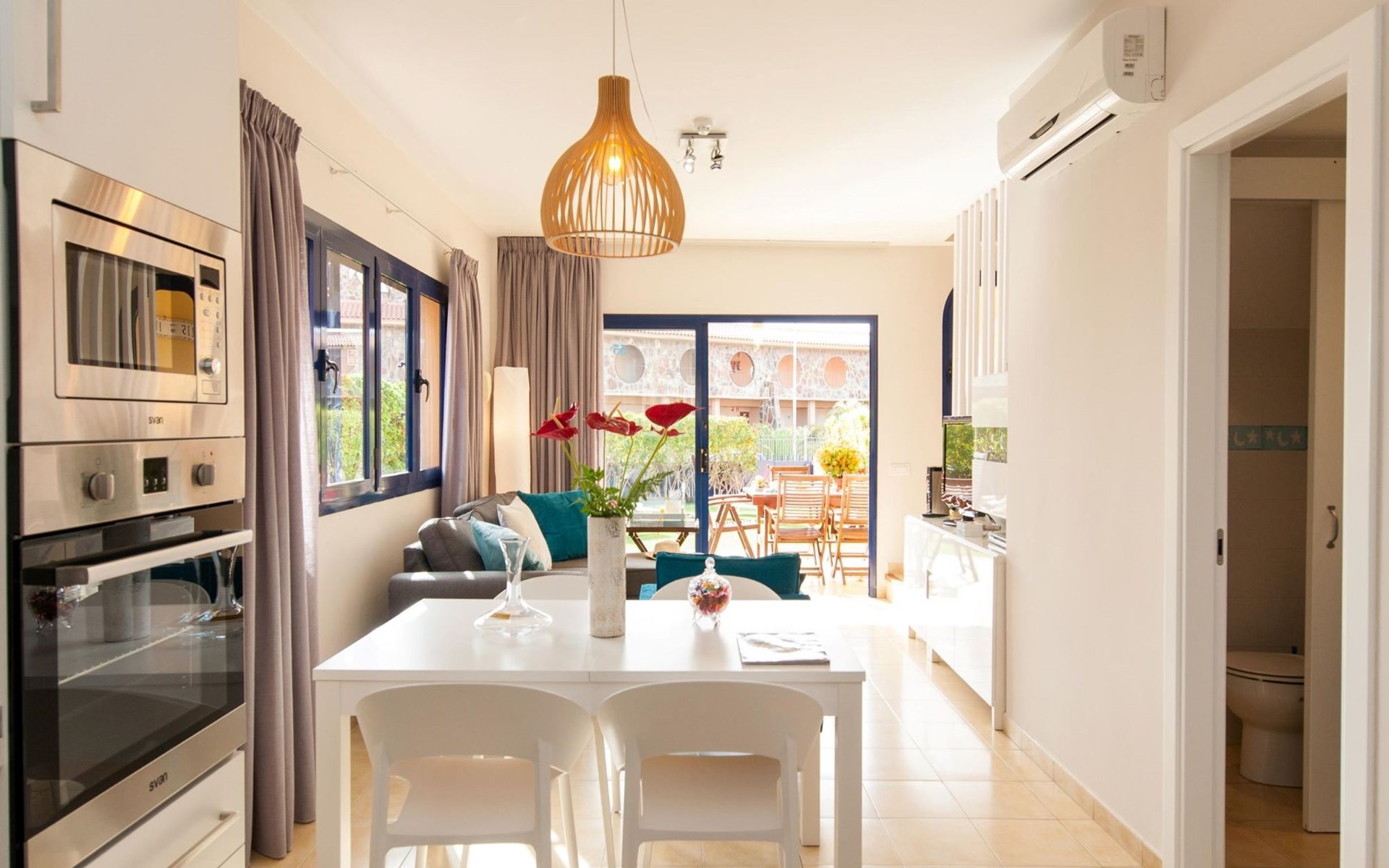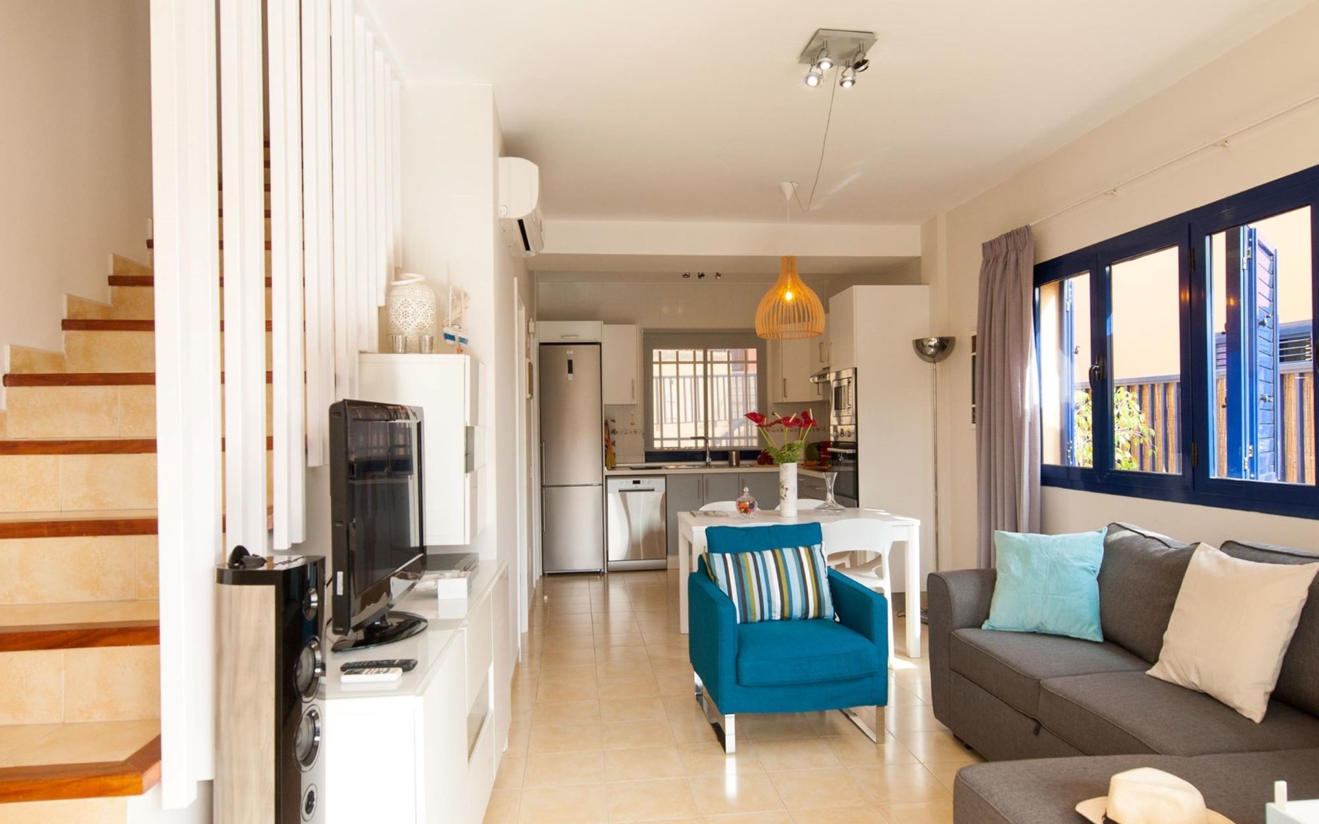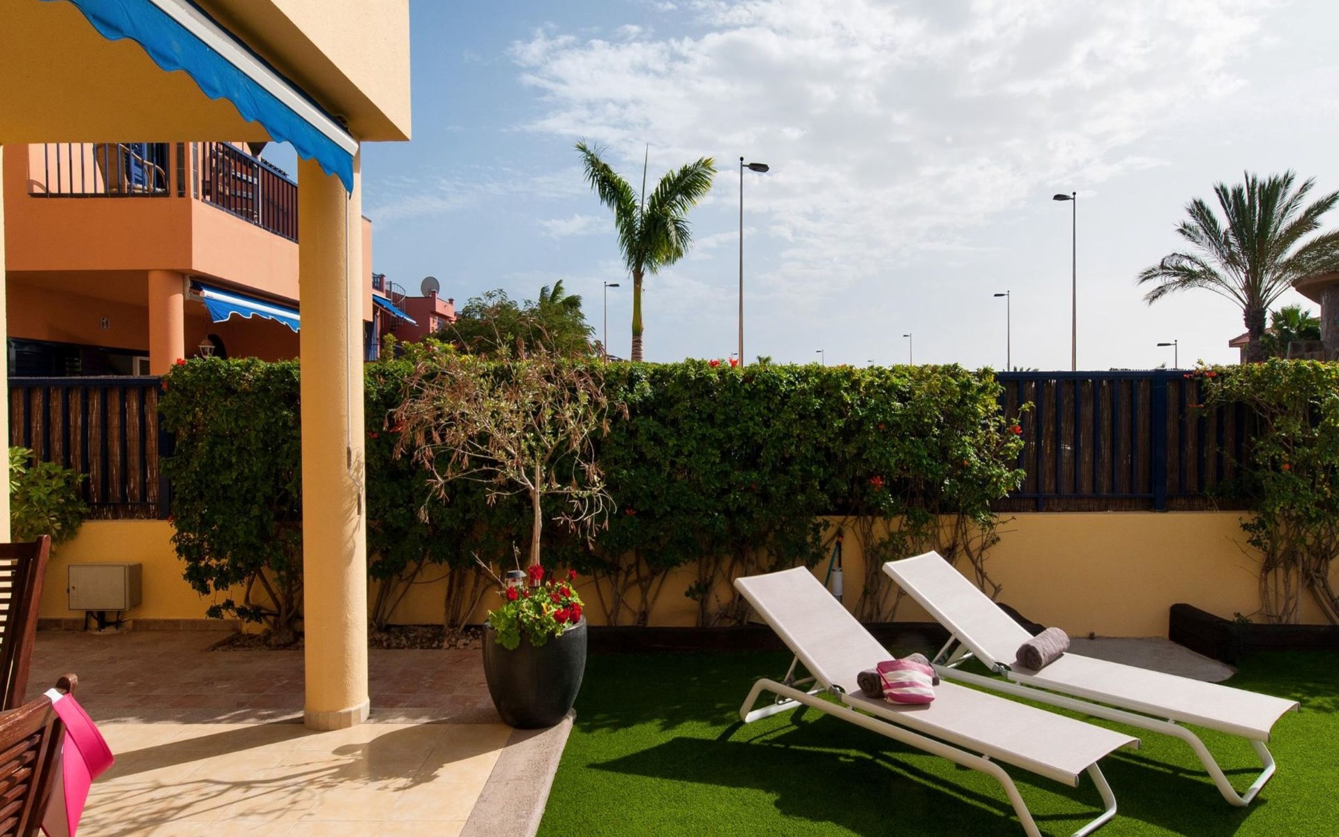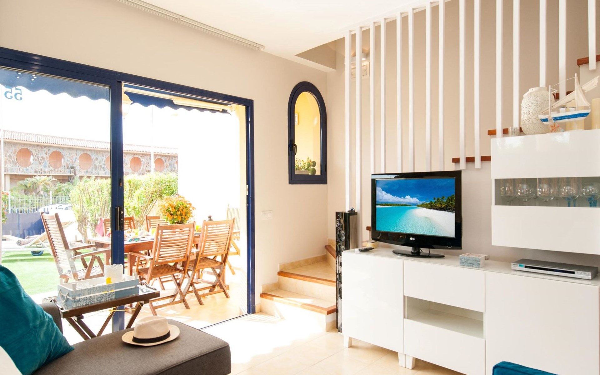 Very beautiful, comfortable villa "Meloneras Bahía HH55". In the centre of Meloneras, excellent location: right in the centre but still quiet. For shared use: swimming pool angular (seasonal availability: 01.Jan. - 31.Dec.). Outdoor shower. In the house: internet access, WiFi, air conditioning, washing machine, tumble dryer. Public parking on the road. Bus stop "Hospital Meloneras" 800 m. Object suitable for 4 adults. The owner does not accept any youth groups. Neighbourhood highly sensitive to noise. Quietness and good behaviour expected.