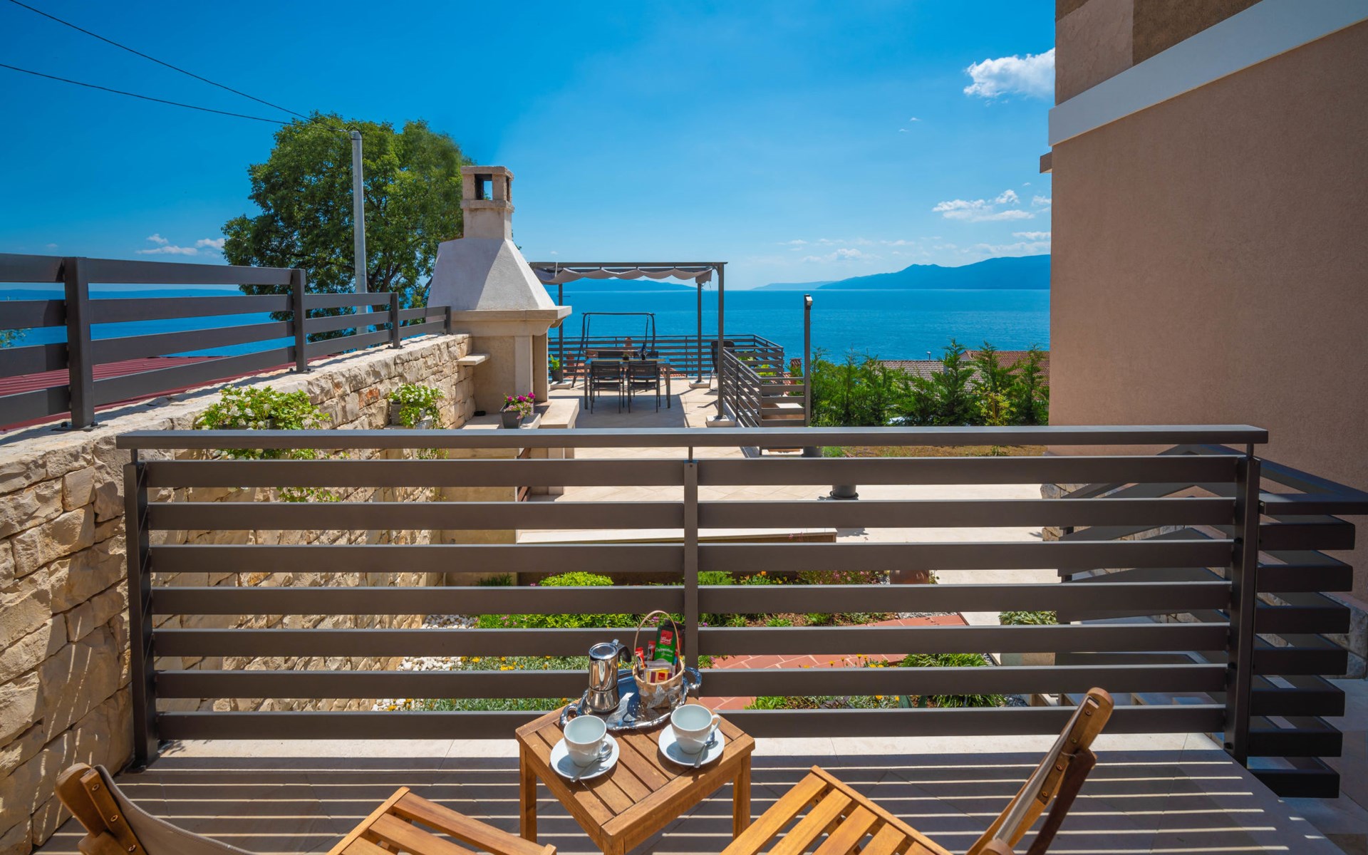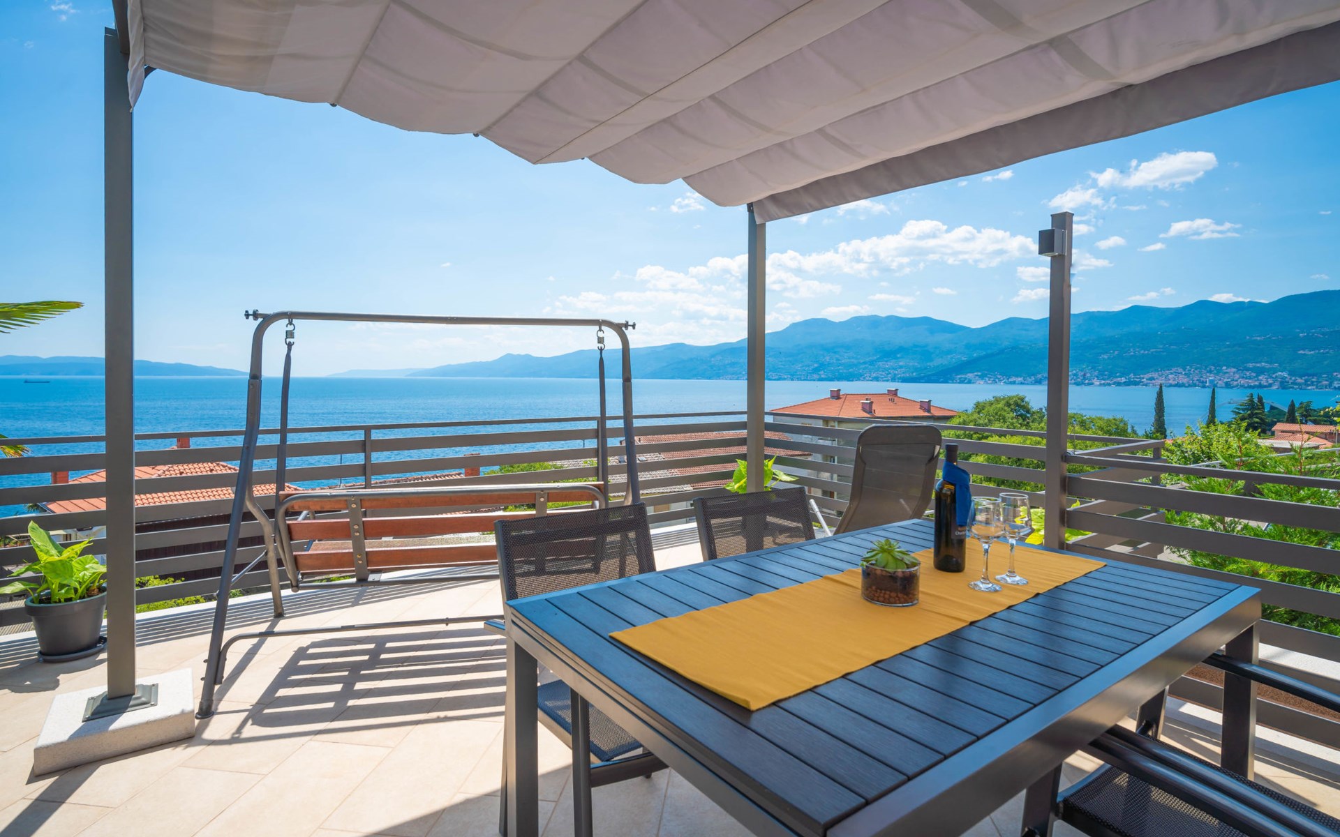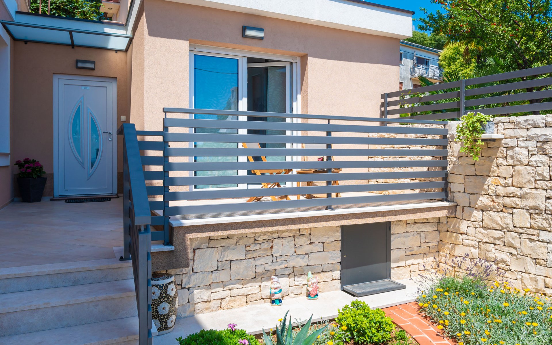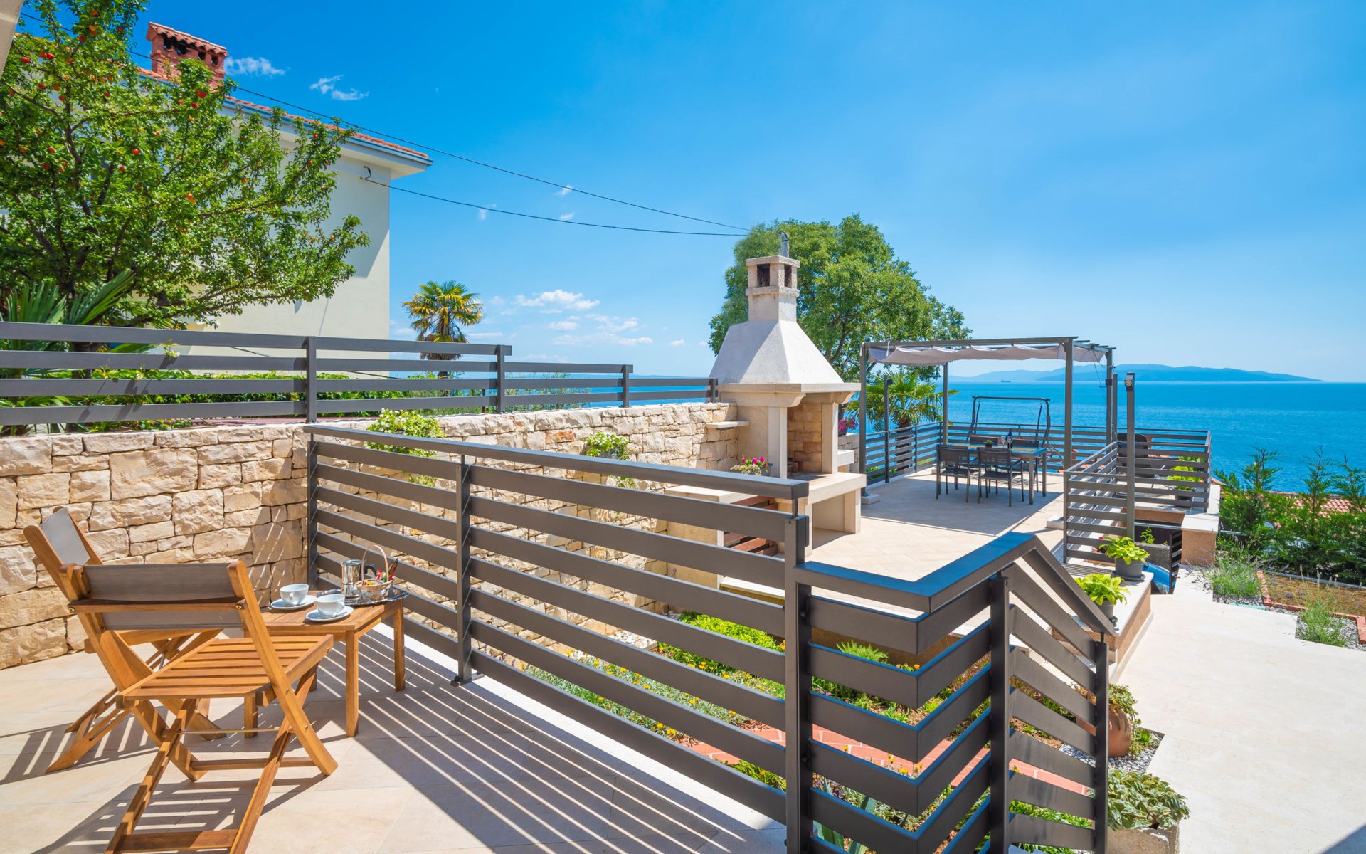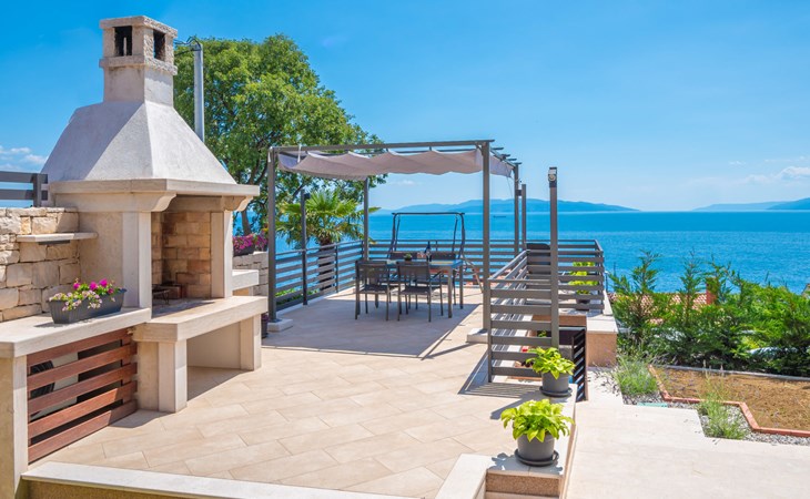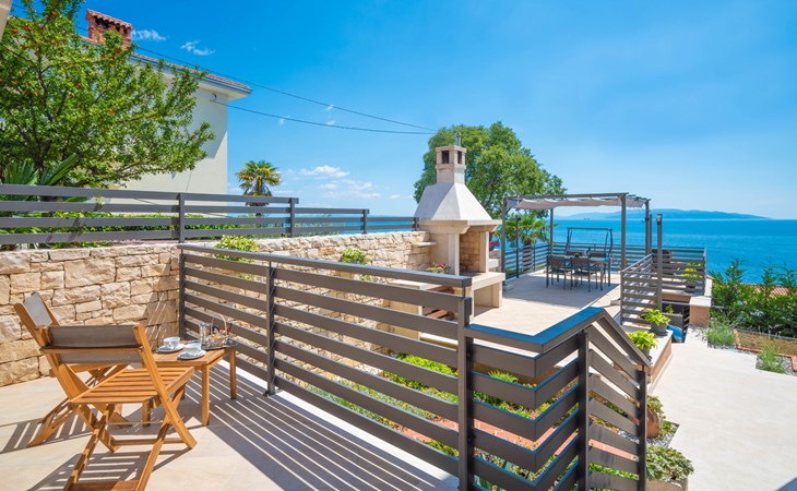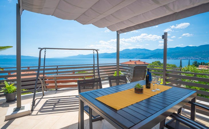 Small single-family house "Matea". In the district of Kantrida 6 km from the centre of Rijeka, 7.5 km from the centre of Opatija, in a sunny, elevated position, 400 m from the sea, 400 m from the beach. Private: terrace (50 m2), garden furniture, barbecue. In the house: internet access. Parking at the house. Shop 230 m, restaurant 400 m, bus stop 350 m, pebble beach, public bathing area 400 m.