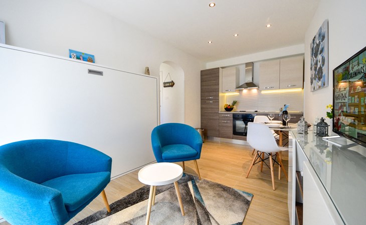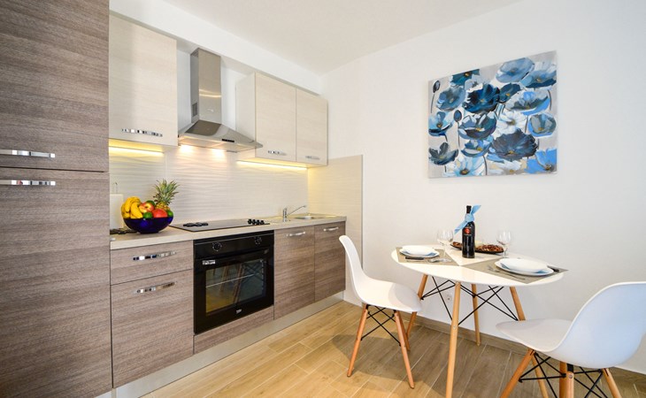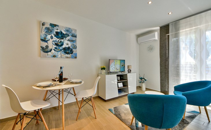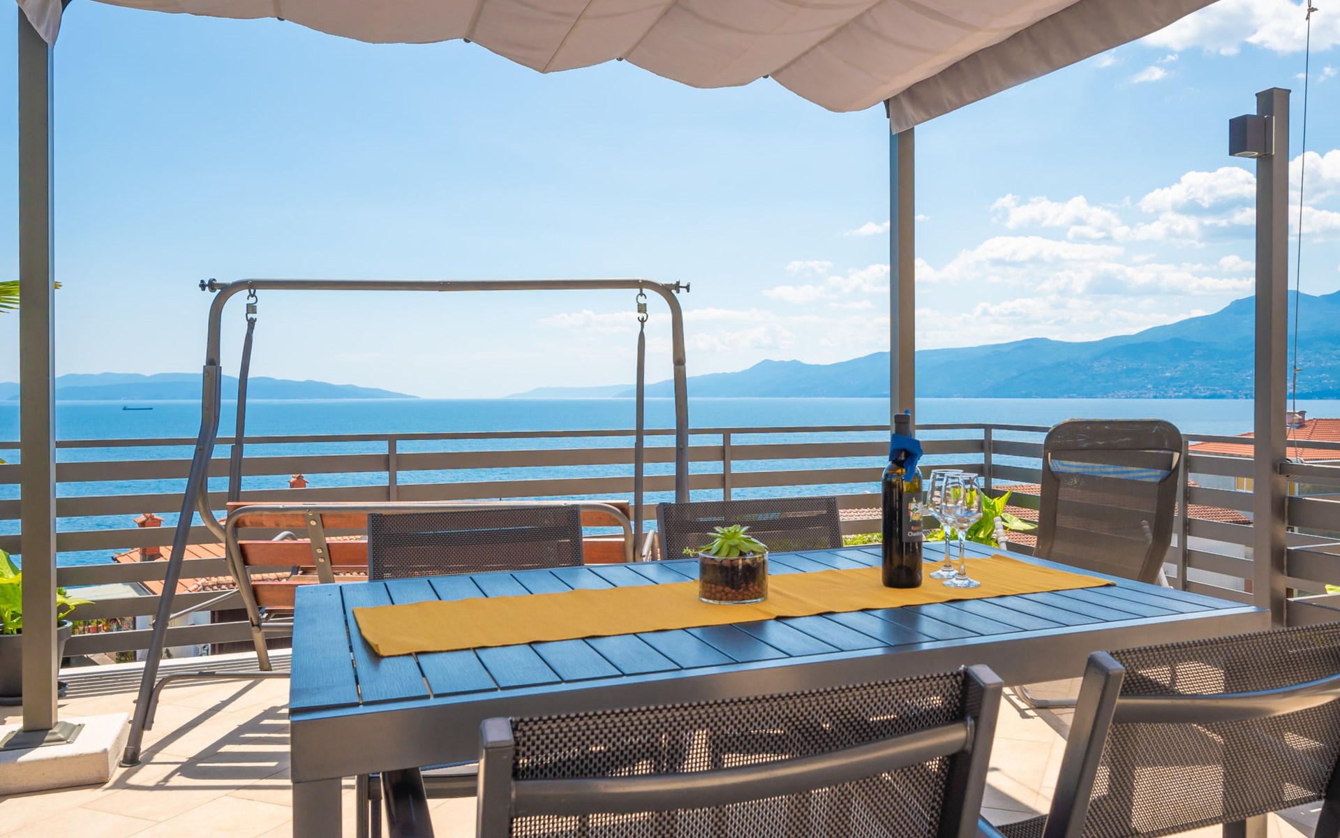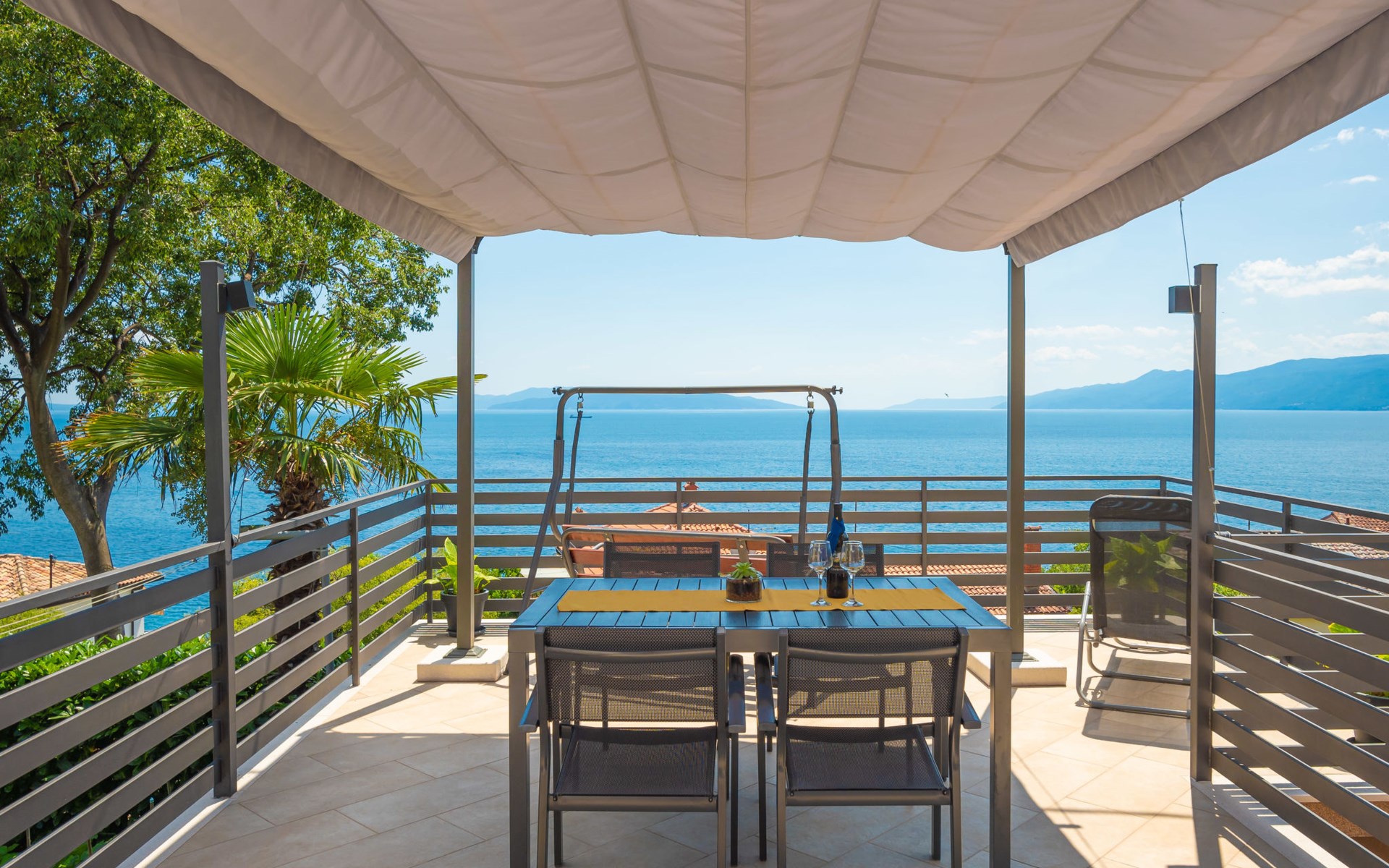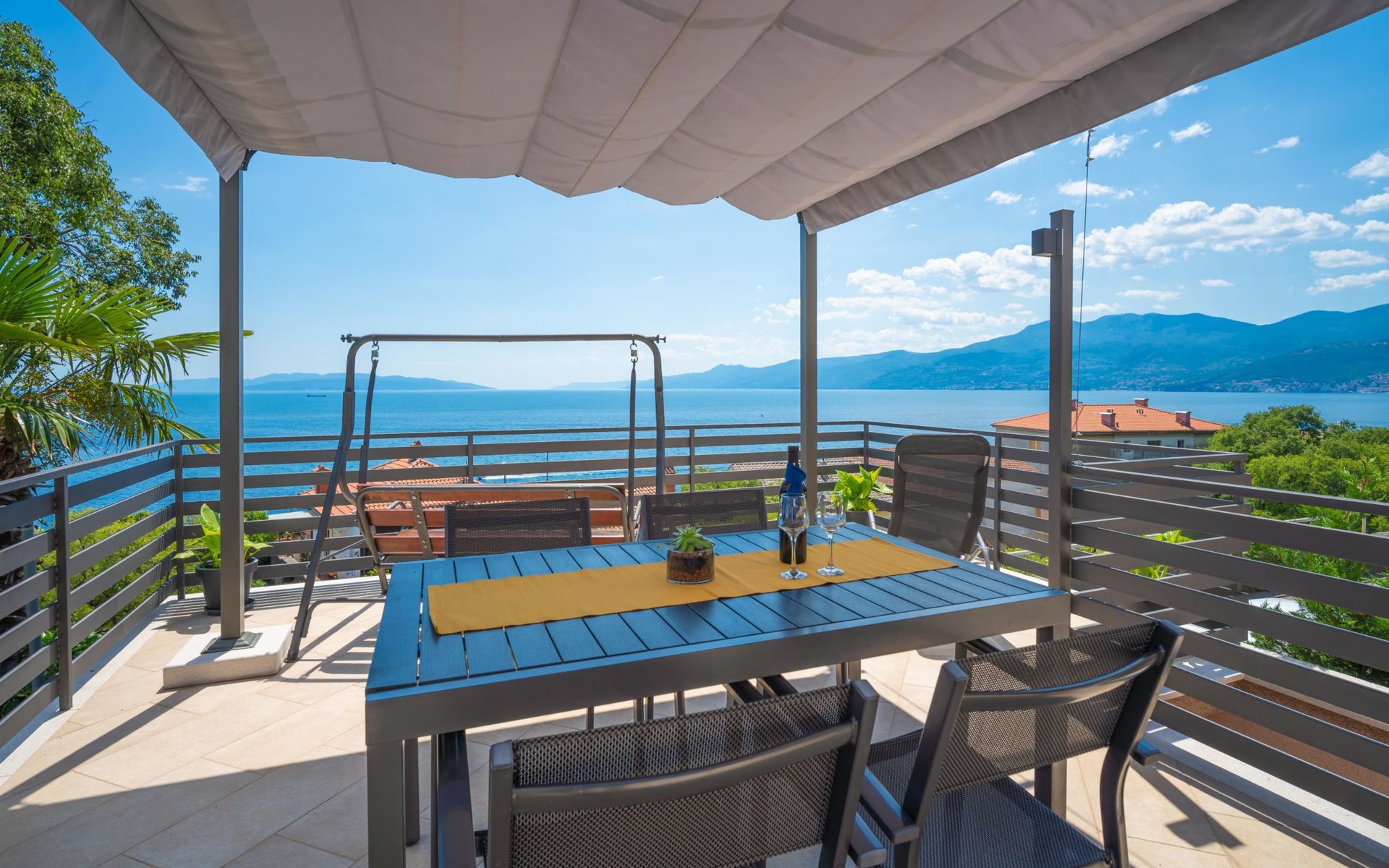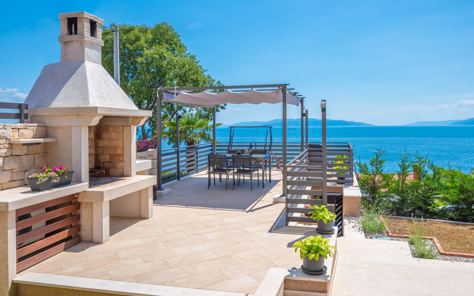Small single-family house "Matea". In the district of Kantrida 6 km from the centre of Rijeka, 7.5 km from the centre of Opatija, in a sunny, elevated position, 400 m from the sea, 400 m from the beach. Private: terrace (50 m2), garden furniture, barbecue. In the house: internet access. Parking at the house. Shop 230 m, restaurant 400 m, bus stop 350 m, pebble beach, public bathing area 400 m.