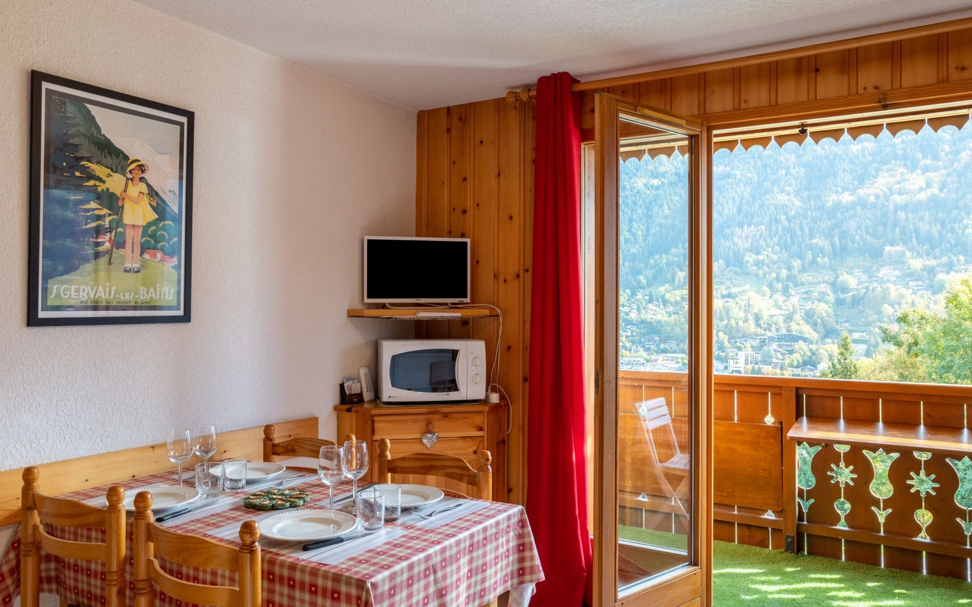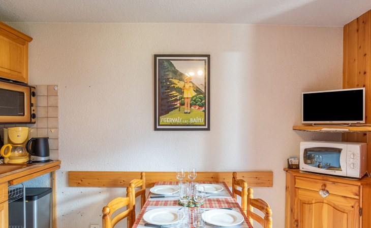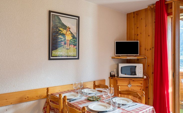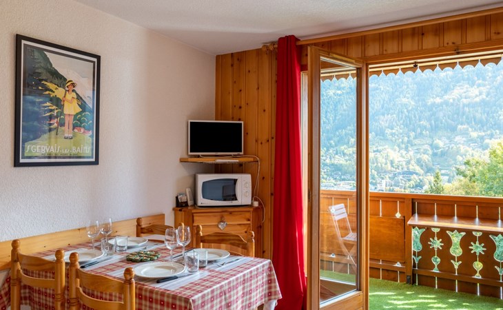 Residence "Les Aiguilles du Midi", 3 storeys. Outside the resort, 1 km from the centre of St Gervais, 6.6 km from the skiing area. In the complex: storage room for skis. In Winter: please take snow chains. Parking. Grocery 900 m, restaurant, bakery 900 m, outdoor swimming pool 1.5 km, thermal baths "Thermes de Saint Gervais" 6.8 km. Tennis 1.9 km, minigolf 1.9 km, skisport facilities 1 km, ski bus stop 150 m, ice rink 1.2 km. Well-known ski regions can easily be reached: Evasion Mont Blanc. Please note: car recommended, no lift. Ski bus (free of charge). In case of good snow conditions, the house is accessible on skis.
